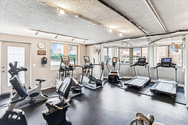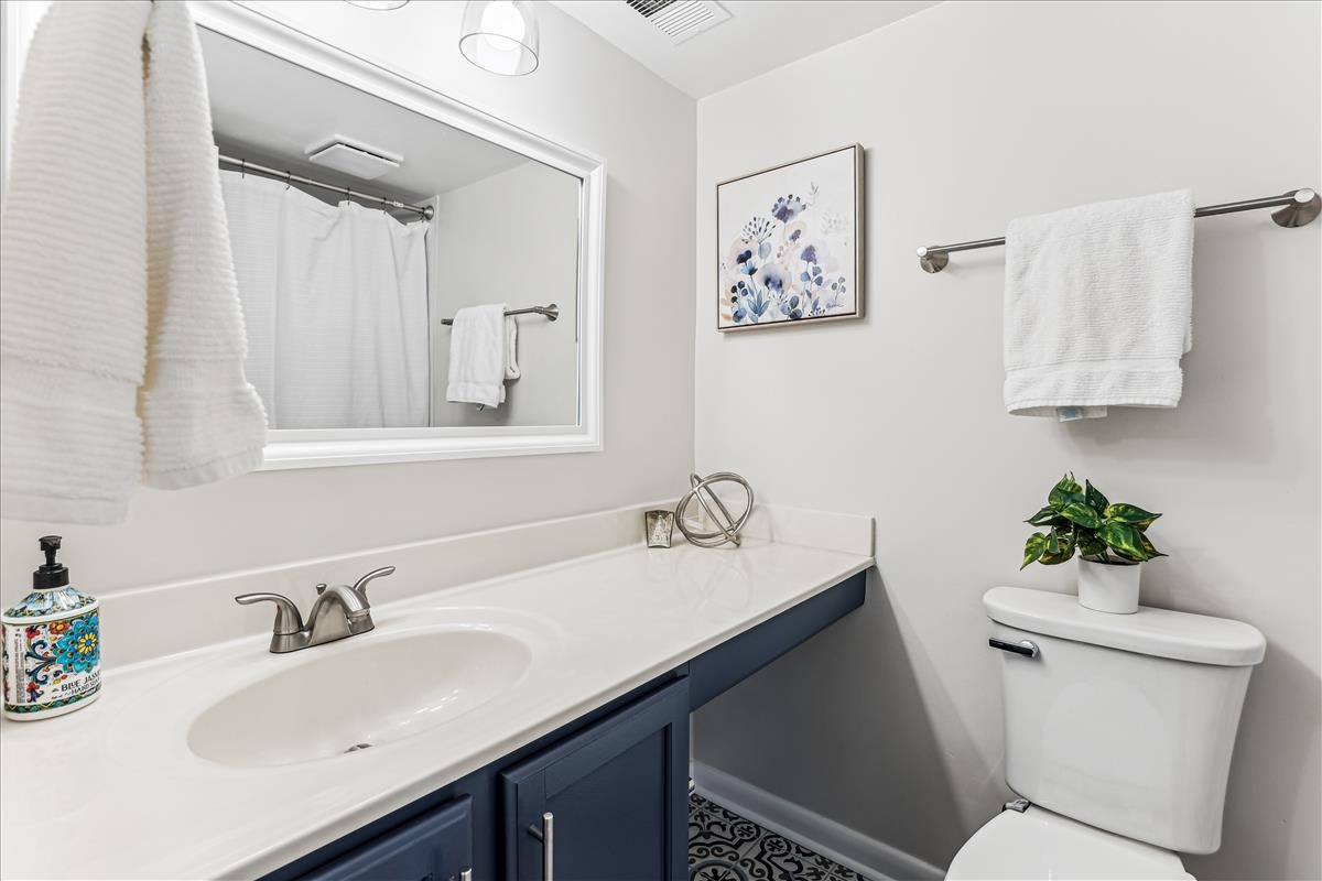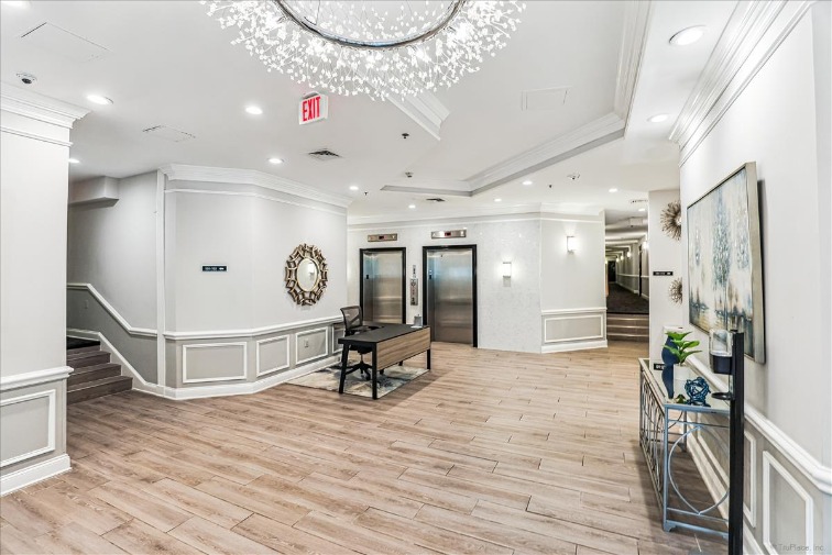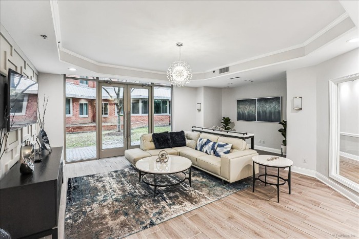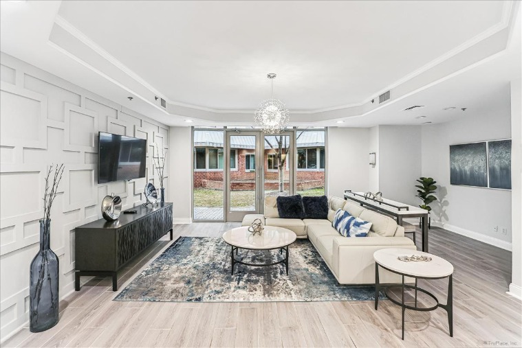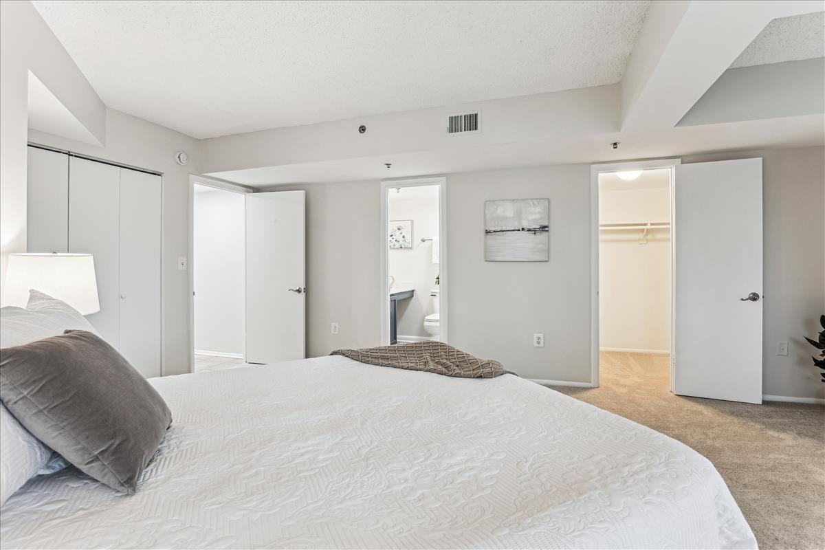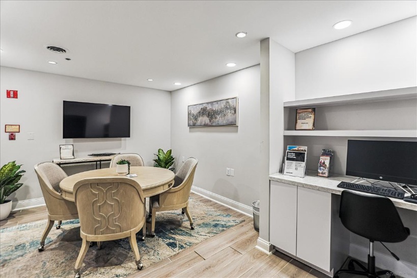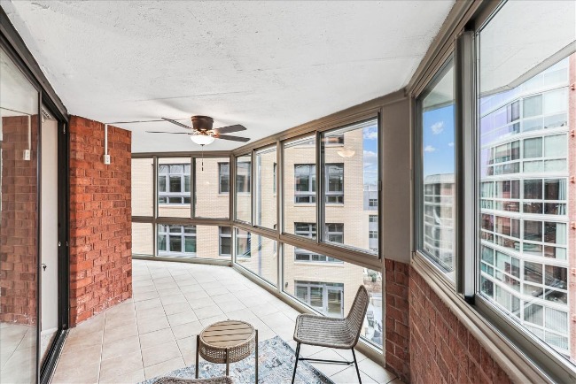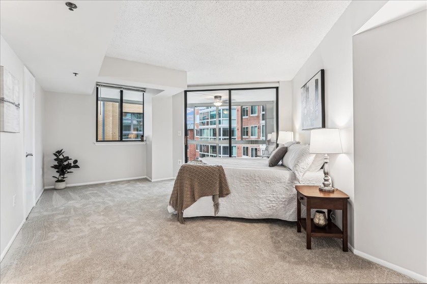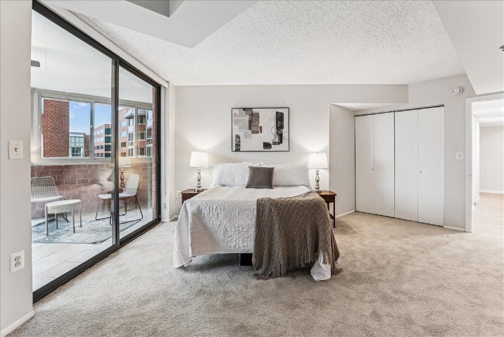 Down the hall, the primary suite is impressively large, with plush new carpeting, two closets including a walk-in closet with built-in shelving, and sliding glass doors to its very own sunroom with a ceiling fan. The en-suite bathroom has been beautifully renovated with a navy vanity with new faucet, updated hardware, new lighting and mirror, plus a sparkling white tiled shower with a brand-new tub and modern accent tile flooring. The second bedroom also features new carpeting and a full wall of mirrored closet space. The second bathroom has been fully updated with a gray vanity with a new faucet, marble-inspired tile flooring, new lighting, mirror, medicine cabinet, & hardware, and a white tiled shower with oversized niche shelving. This unit includes one assigned garage parking space (#2044). Westview at Ballston Metro offers fantastic amenities, including a rooftop pool, rooftop barbecues, indoor lounging space, a gym, a business center, and bike storage. Plus, the location couldn’t be better – just steps to the Metro and a short walk to Ballston Quarter, where you’ll find amazing restaurants, bars, and shopping.