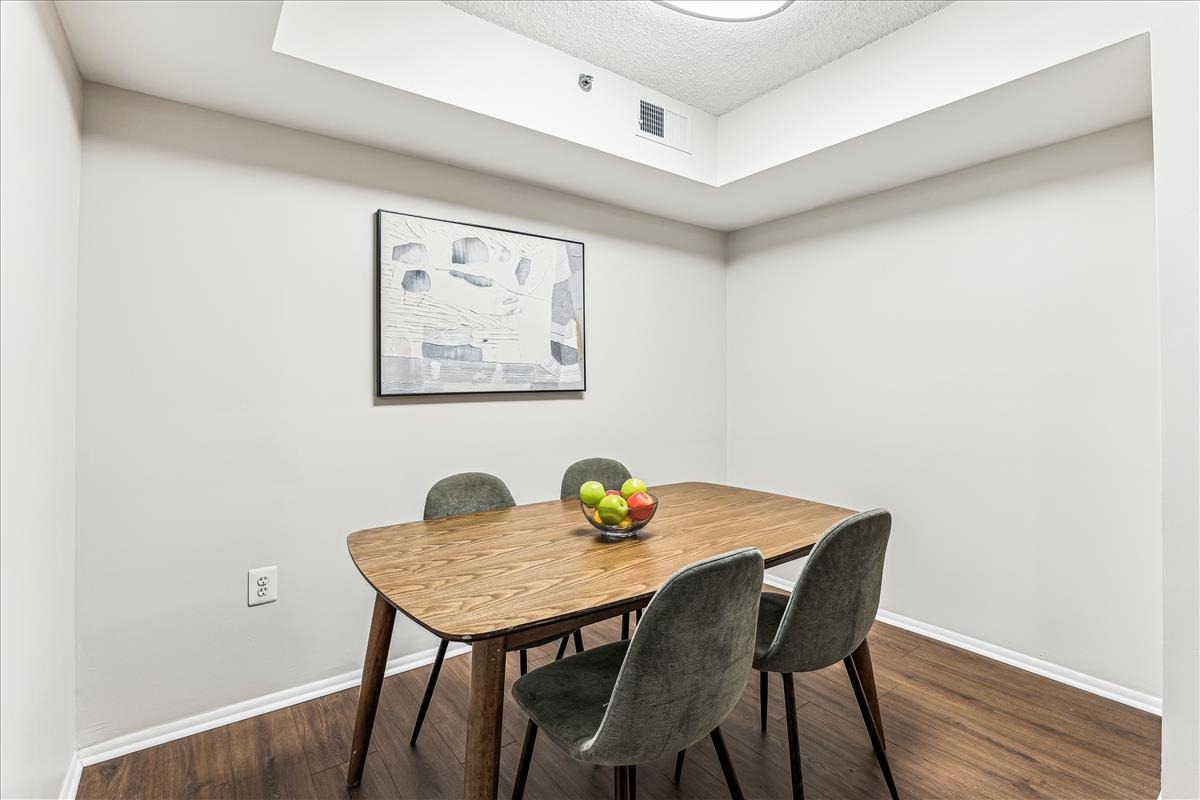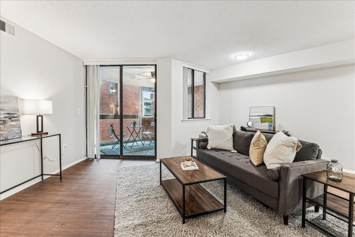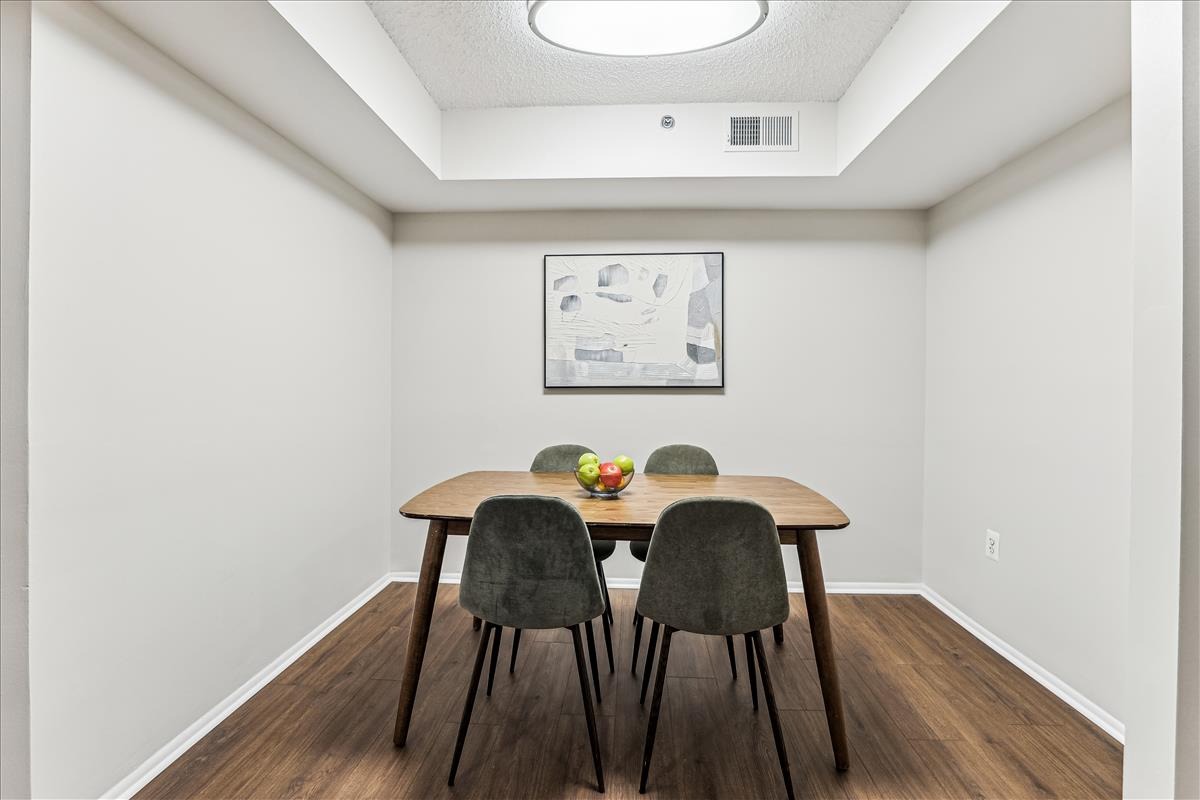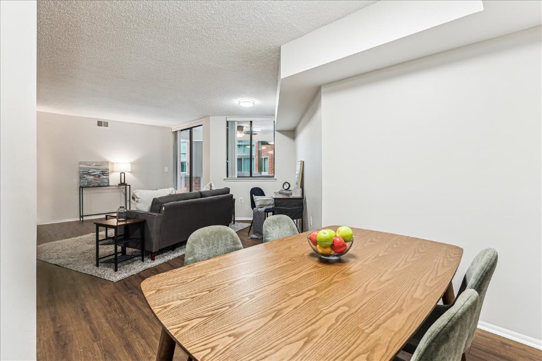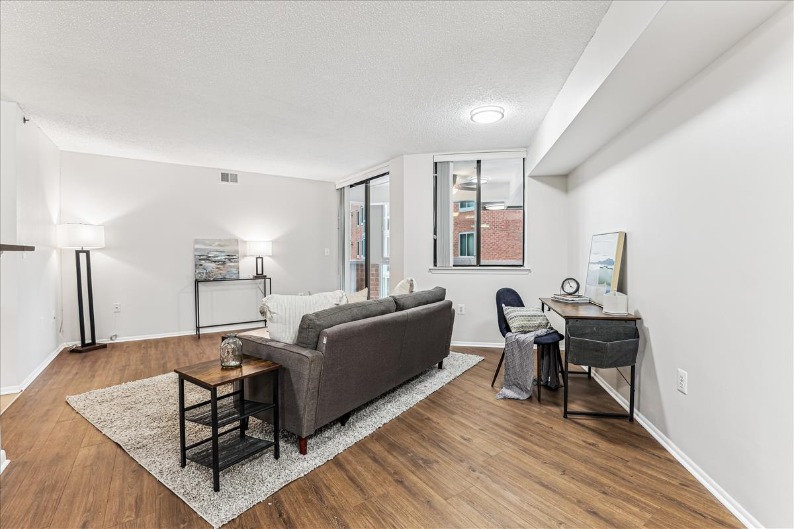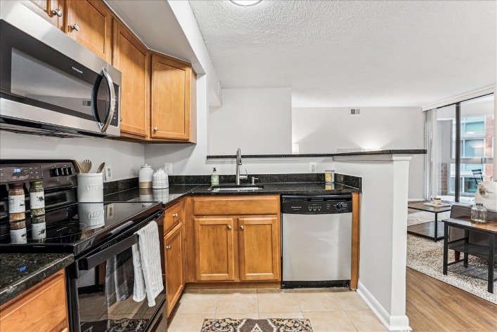 Beautiful 2-bedroom, 2-bathroom 6th-floor condo at Westview at Ballston Metro! This lovely home is packed with updates and fresh paint throughout, making it completely move-in ready. Step inside to a tiled entryway with a coat closet to the left and an open view into the main living space. The spacious living room features stylish LVP flooring and features a cozy nook with overhead lighting – perfect for a reading corner or desk space. The dining area is large enough to fit a full-sized table, making it a great space for hosting or everyday meals. The open-concept kitchen has everything you need, with plenty of cabinet space, granite countertops, a stainless steel refrigerator, microwave, and dishwasher, plus a new black range (2024), and a closet with a new stackable washer and dryer (2024) and extra shelving for storage or pantry items. Off the living room, a sliding glass door leads to a spacious sunroom with tile flooring, a ceiling fan, and sweeping views of the neighborhood – a great spot to unwind with a morning coffee.