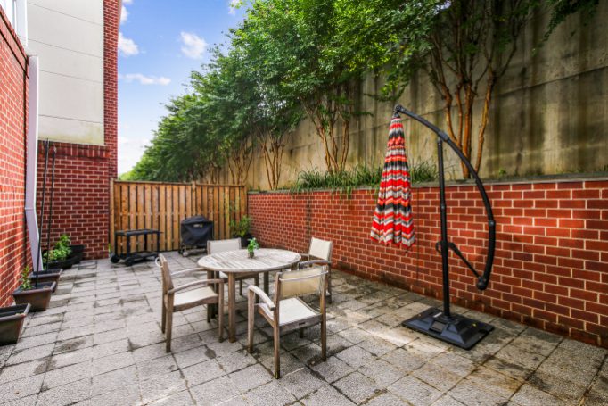 This 3 bedroom 2.5 bathroom Rosslyn home is the perfect combination of luxury and location! Corner unit with lots of light, soaring ceilings, and modern finishes. The large living room has hardwood floors and overlooks your massive, private patio. A generous separate dining area is located next to the open concept kitchen which features tall white cabinetry, granite countertops, a peninsula great for bar stools, a huge pantry, AND high-end stainless steel appliances. Recessed lighting, a powder room, and lots of additional under-stair storage finish the interior of this level. Stepping outside you will find the see-to-believe L-shaped patio. Great for entertaining guests or relaxing, this outdoor space is like nothing else you will find in the city! The upper living level features a spacious primary bedroom with a large walk-in closet. Its ensuite bathroom features a hand-tiled glass shower, stone-topped dual vanity, and large, separate soaking tub. Two more bedrooms, a second full bathroom, and a sizable laundry room complete this level. Moving from the main level past the smart barn door to the downstairs leads to two assigned garage parking spaces, right outside the private stairwell access! Rhodes Hill Square is conveniently located just steps to shops, dining, retail, the metro, and a movie theater, and provides easy commuter access to DC, I-66, and Route 50. Home comes with a vast separate storage unit in the building.