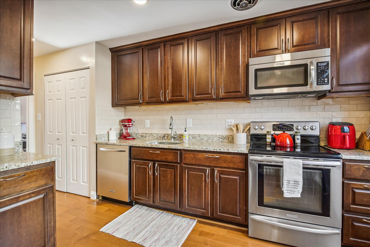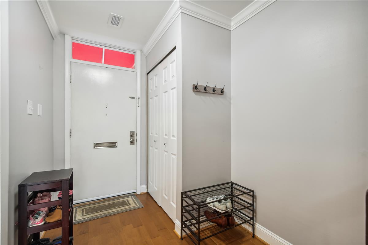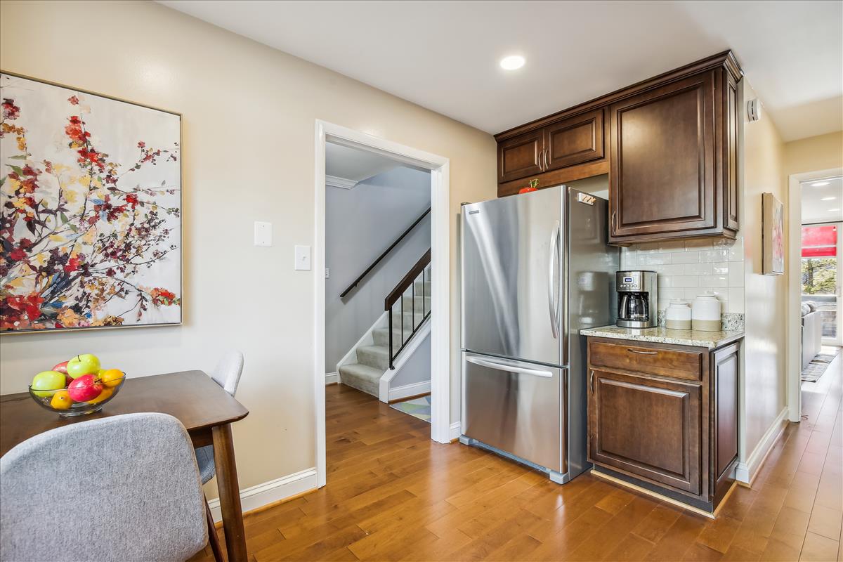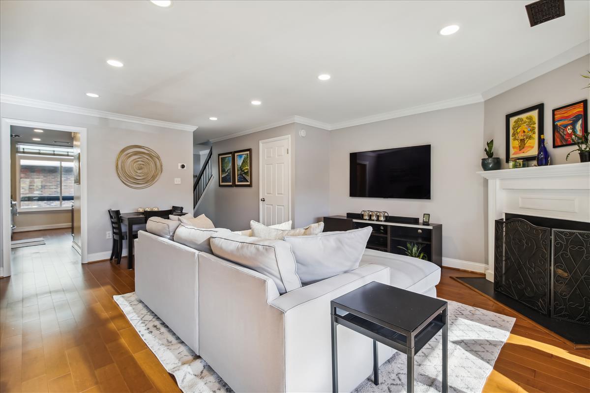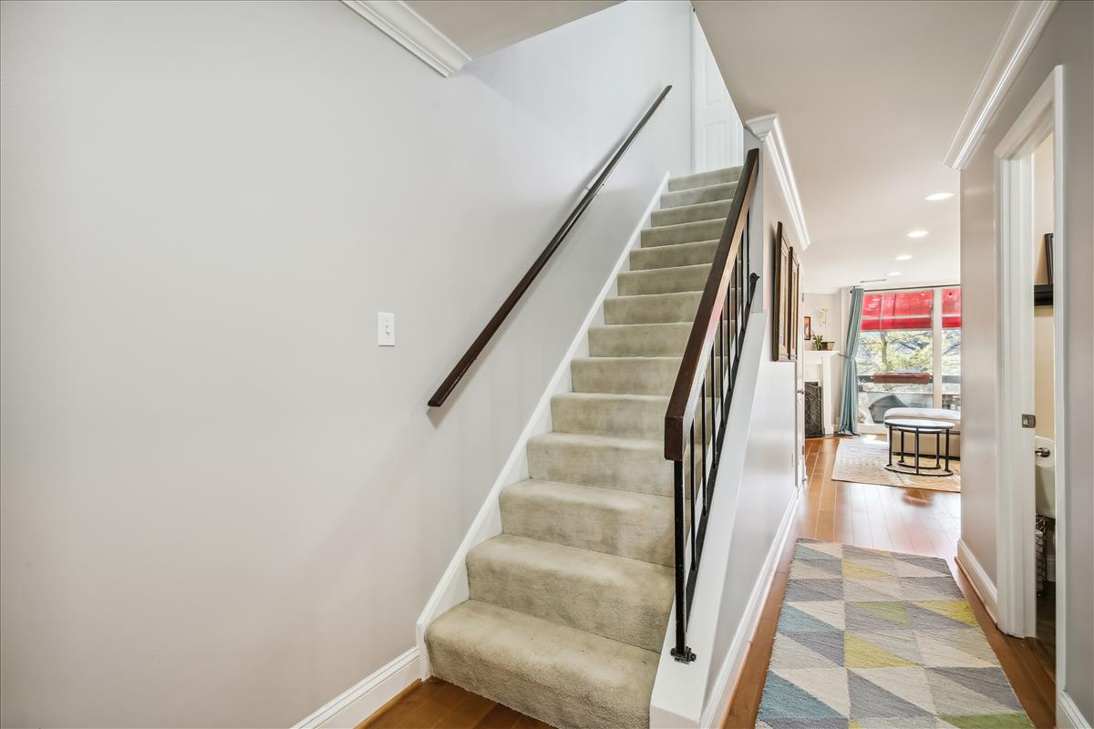 Beautiful 2 bedroom, 2.5 bathroom townhome in the Southampton neighborhood, conveniently located between Pentagon City & Crystal City! The light-filled main level features beautiful hardwood flooring, neutral paint, crown molding, & recessed lighting throughout. The front hallway includes a large coat closet & a small nook for hanging coats or storing shoes. The living room is accented with a wood-burning fireplace & floor-to-ceiling sliding glass doors that lead to the serene & private covered balcony. A separate dining area sits right outside of the kitchen which boasts a huge pantry, updated cabinets, granite countertops, modern subway tile backsplash, stainless steel appliances, & a breakfast nook. A half bathroom with tile flooring & pedestal sink completes this level.
