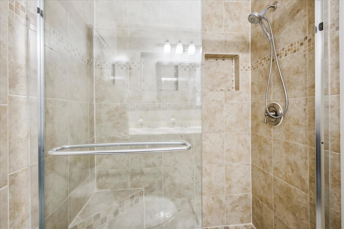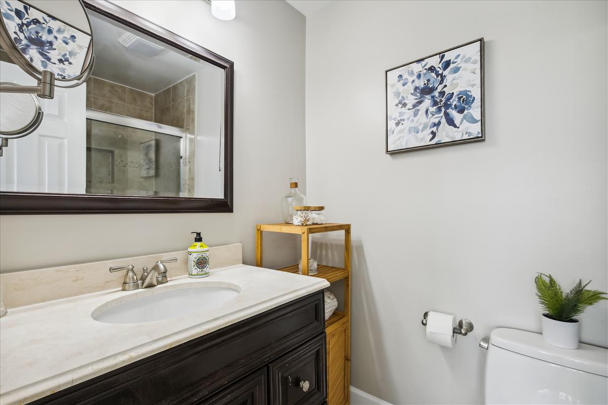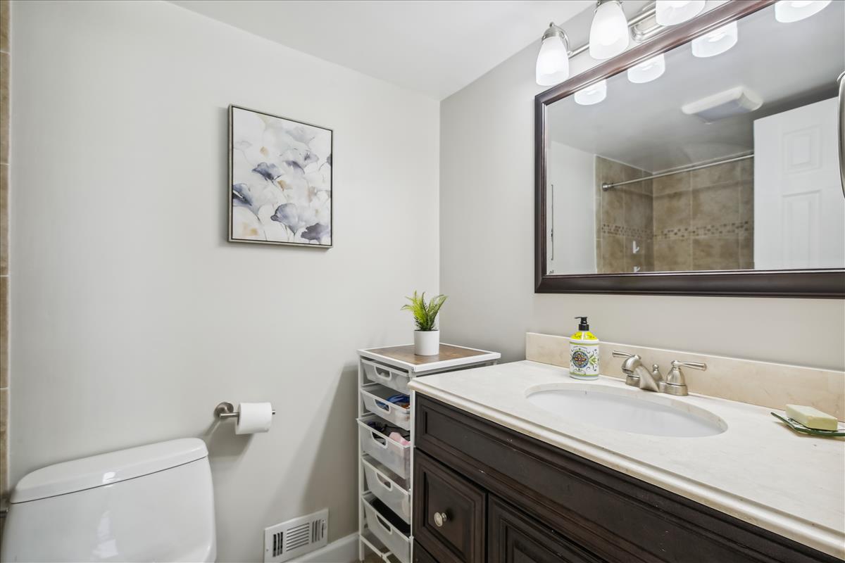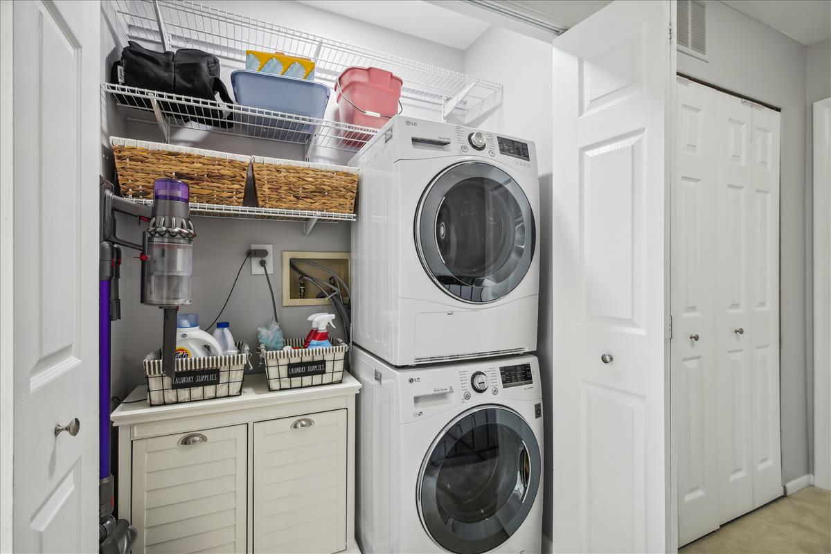 The upper level features two incredibly spacious bedrooms with large windows & ample wall space for dressers. Each bedroom is accented with a modern light fixture, two large closets, & a private ensuite full bathroom! The primary bathroom features a marble-topped vanity & an upgraded tiled shower with sliding glass doors & niche shelving. The 2nd full bathroom features a marble-topped vanity & a tub/shower combo with tile surround. The remodeled laundry closet features a stacked washer & dryer and plenty of space for storage. Other features include updated windows & sliding glass doors throughout, an assigned parking space (#134), & up to 2 stickers for unassigned spaces. The Southampton neighborhood includes a community pool and sits just across the street from Virginia Highlands Park where you will find tennis courts, basketball courts, water playgrounds, & a soccer field! Less than a 10-minute walk to the Pentagon City mall & metro, Crystal City shops & metro, and tons of other stores & restaurants!