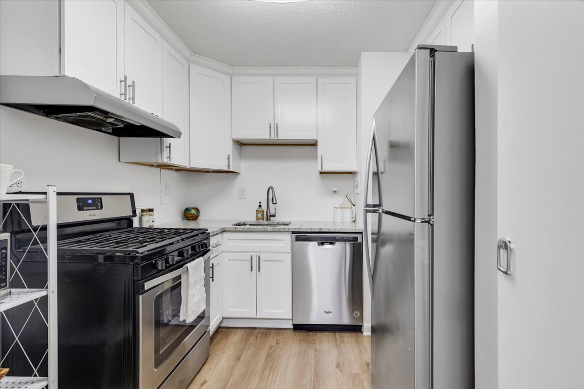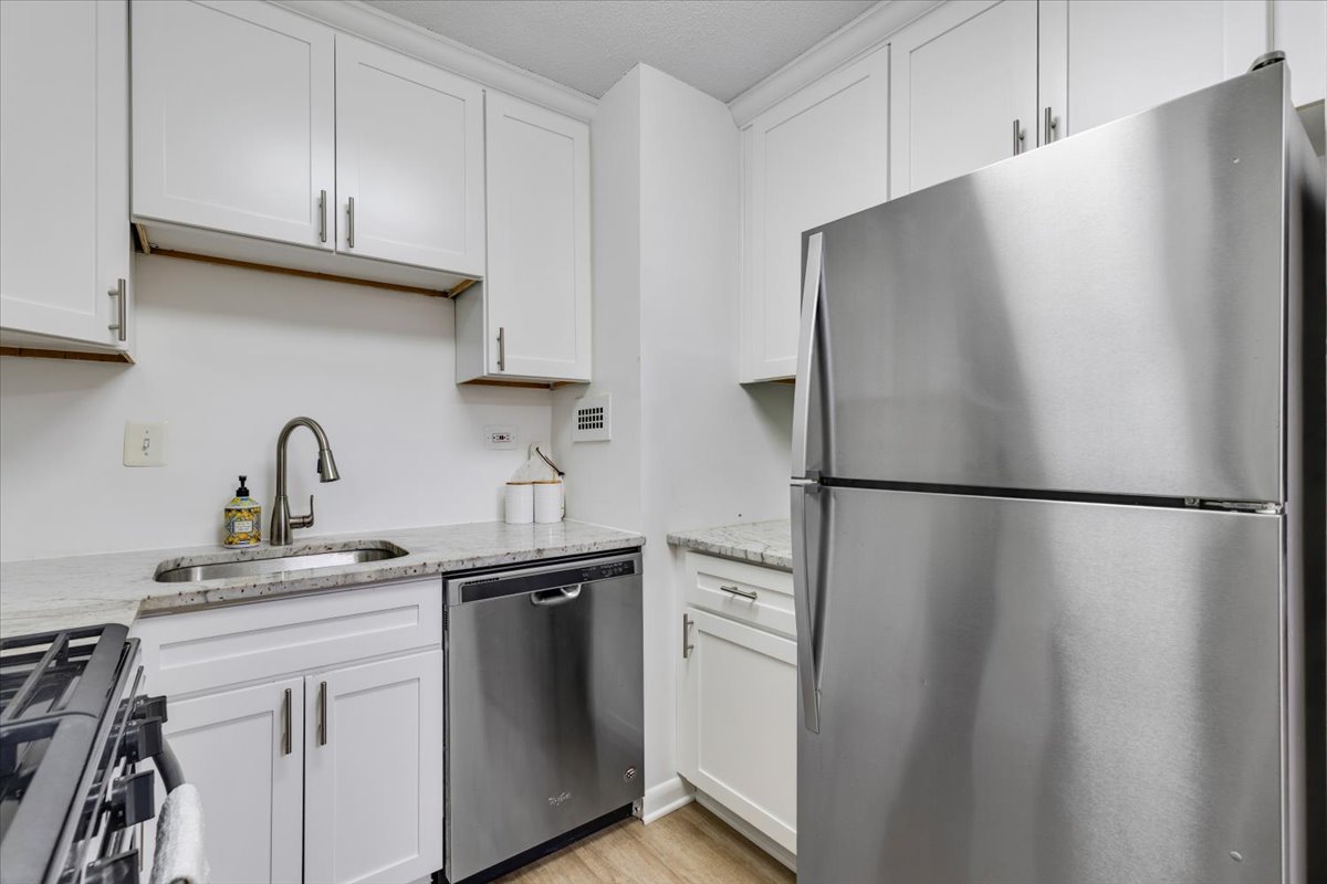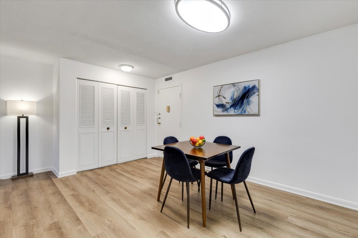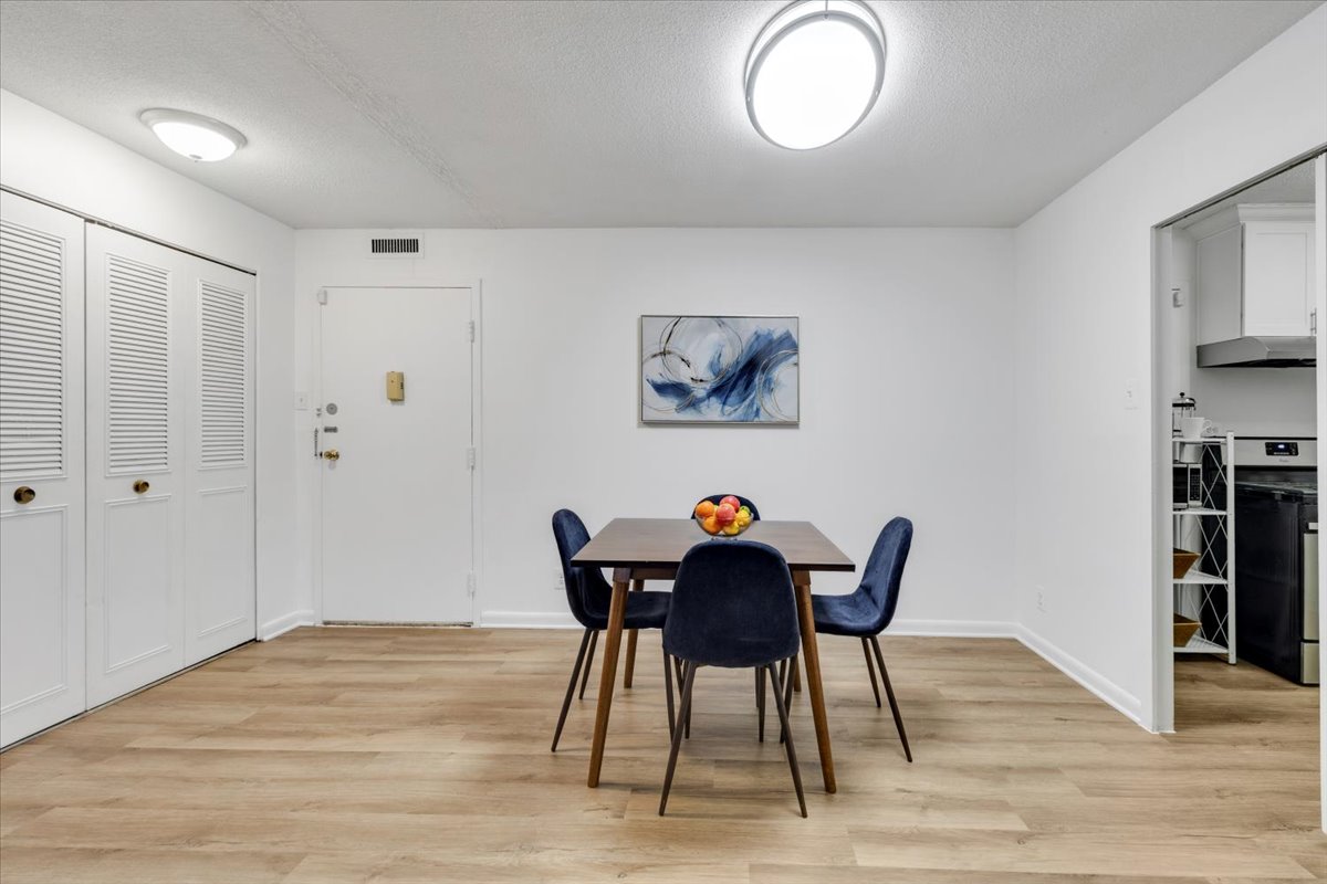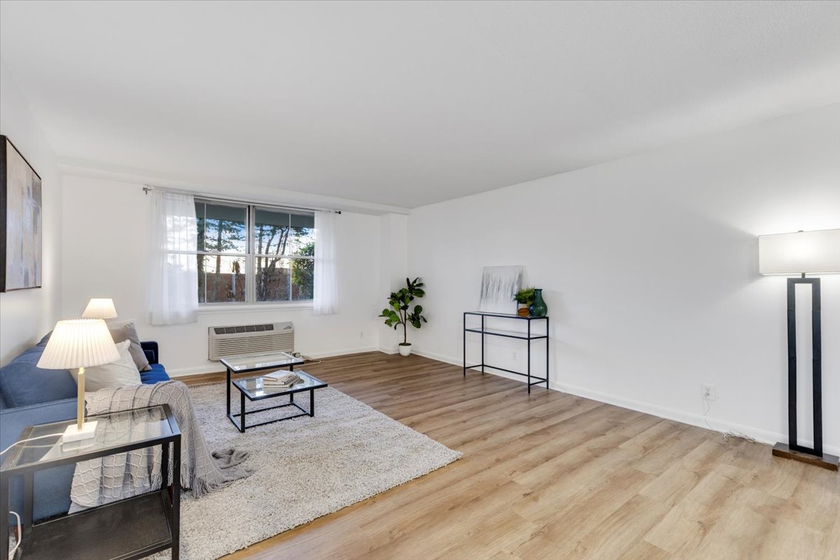 Beautifully updated 2-bedroom, 1.5-bathroom home at Circle Condominium in North Arlington! This ground-floor unit has been freshly painted and features new LVP flooring throughout, creating a clean, modern feel. Upon entry, you’ll find a large storage/coat closet, perfect for everyday convenience. The spacious living room is filled with natural light and offers a serene view of the lush greenspace behind the building – a peaceful backdrop for relaxing or entertaining. The living area flows seamlessly into a dedicated dining space accented by a modern light fixture. The updated kitchen showcases crisp white cabinetry, granite countertops, & stainless steel appliances, blending style with functionality.
