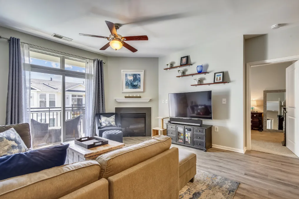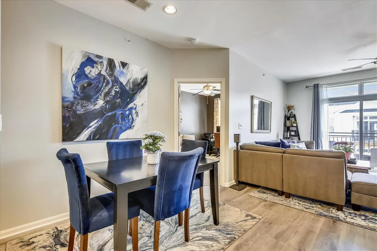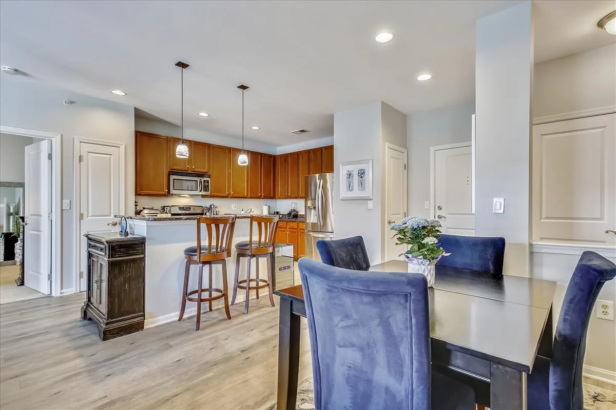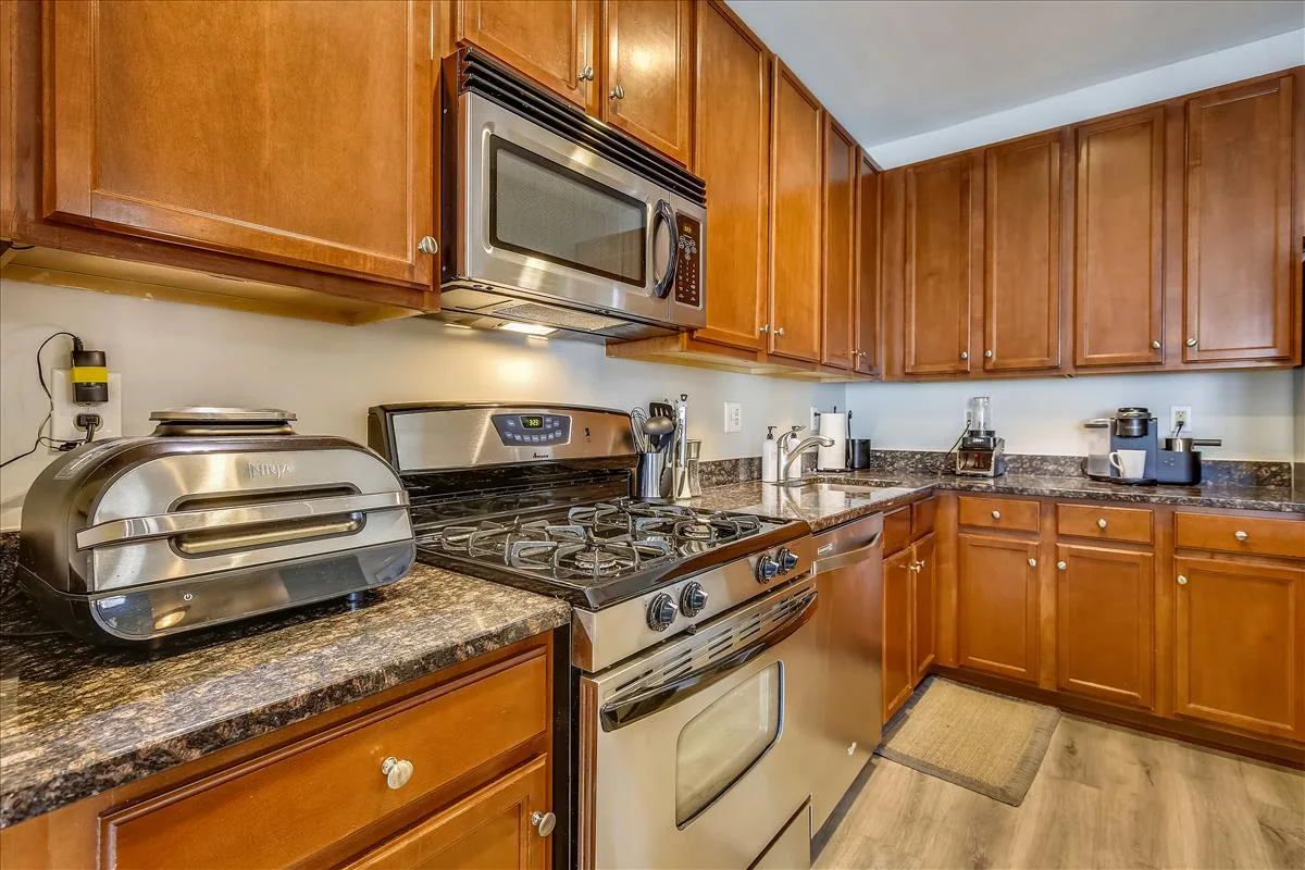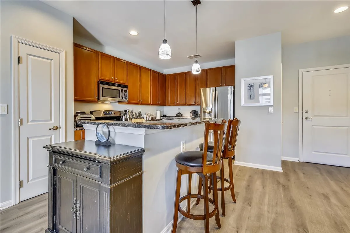 Beautiful 2 bedroom, 2 bathroom top floor condo in Fairfax! This light-filled home features an open floor plan with updated flooring & neutral paint throughout. The living room is accented with a gas fireplace with a mantle and sliding glass door access to the coveted private & serene balcony overlooking the community courtyard. The kitchen features tall modern cabinetry, granite countertops, an island with a breakfast bar & pendant lighting, and stainless steel appliances, including a new microwave (2023) & newer refrigerator (2020). A separate dining area large enough to fit a full-sized dining table completes the main living area.