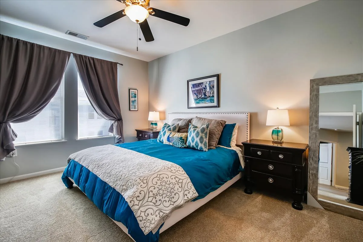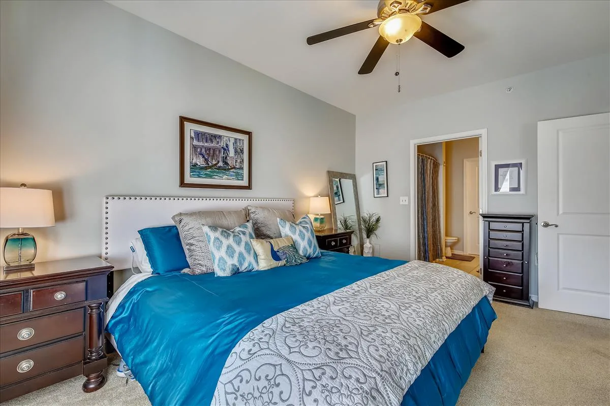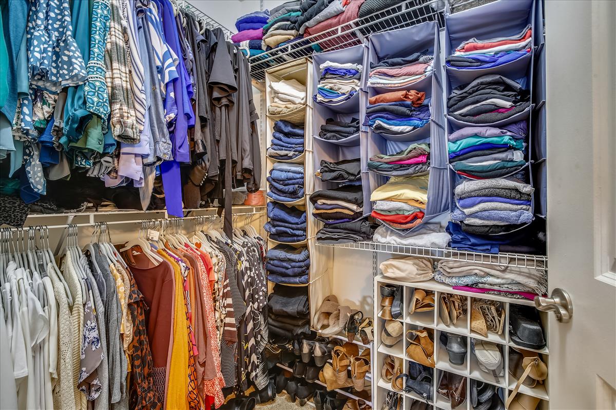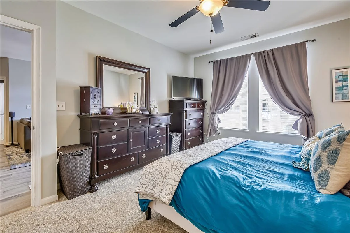 The spacious primary bedroom has more than enough room to fit a king bedroom set and is accented with plush carpeting and a ceiling fan with light. It features an ensuite bathroom with upgraded flooring, a granite-topped double vanity, & a sparkling white shower with jetted soaking tub, plus a HUGE walk-in closet with tons of storage options. The second bedroom features large dual closets, a ceiling fan with light, & ensuite access to the second bathroom, accented with upgraded flooring, a granite-topped vanity with contemporary vessel sink, & a sparkling white shower. A laundry closet with full-sized washer & dryer (2019) and plenty of storage shelving completes this home. Other home features include a newer water heater (2021) and a recently replaced roof over the unit (2021).