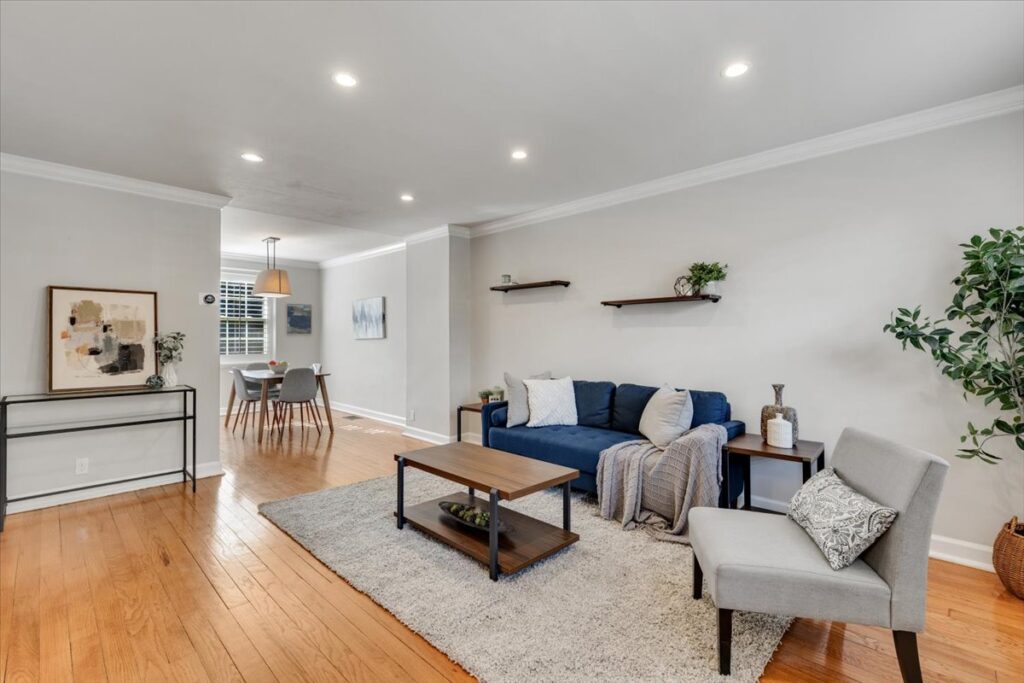 Beautiful 2 bedroom, 2 bathroom top floor condo in Fairfax! This light-filled home features an open floor plan with updated flooring & neutral paint throughout. The living room is accented with a gas fireplace with a mantle and sliding glass door access to the coveted private & serene balcony overlooking the community courtyard. The kitchen features tall modern cabinetry, granite countertops, an island with a breakfast bar & pendant lighting, and stainless steel appliances, including a new microwave (2023) & newer refrigerator (2020). A separate dining area large enough to fit a full-sized dining table completes the main living area.
