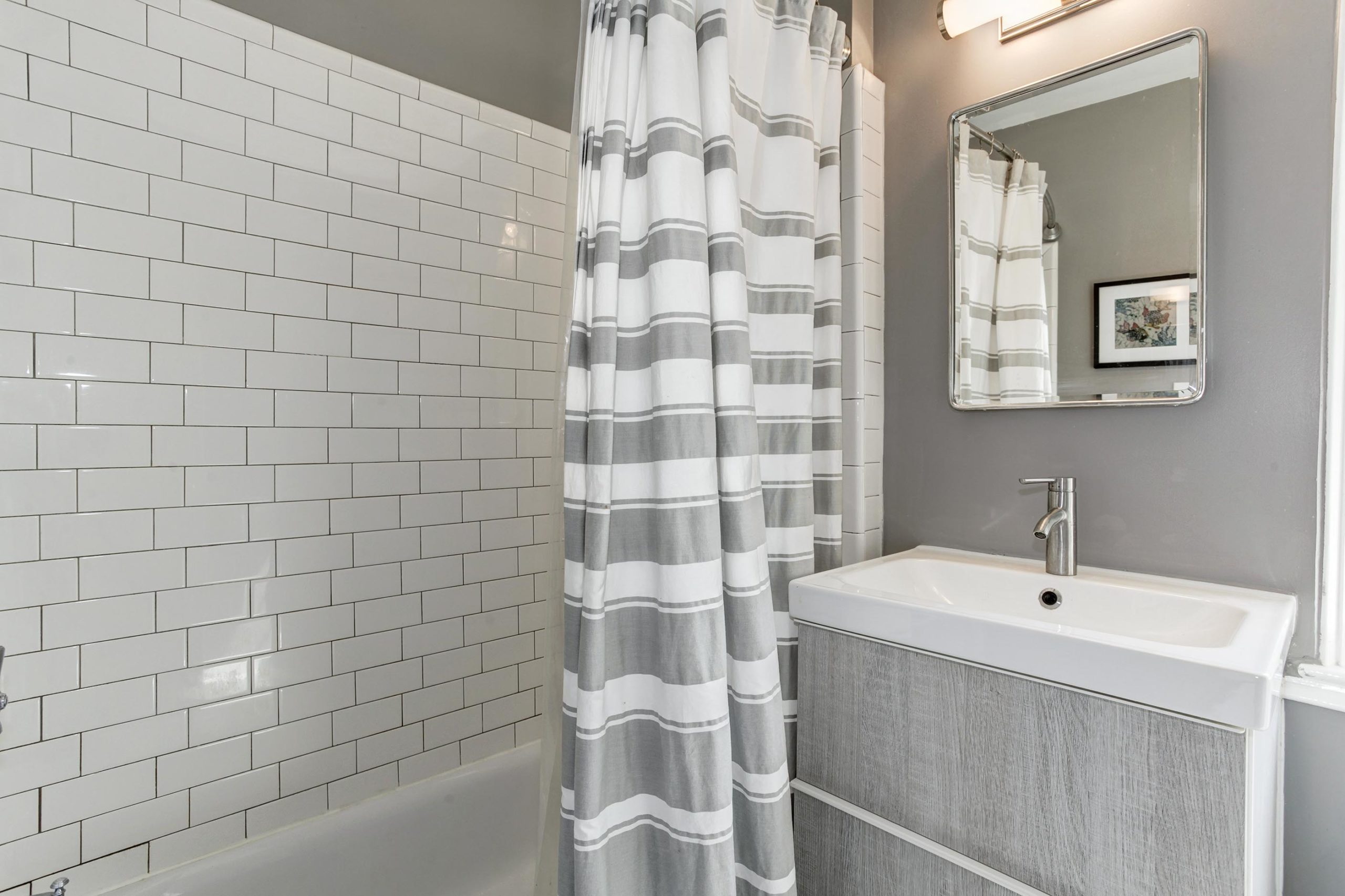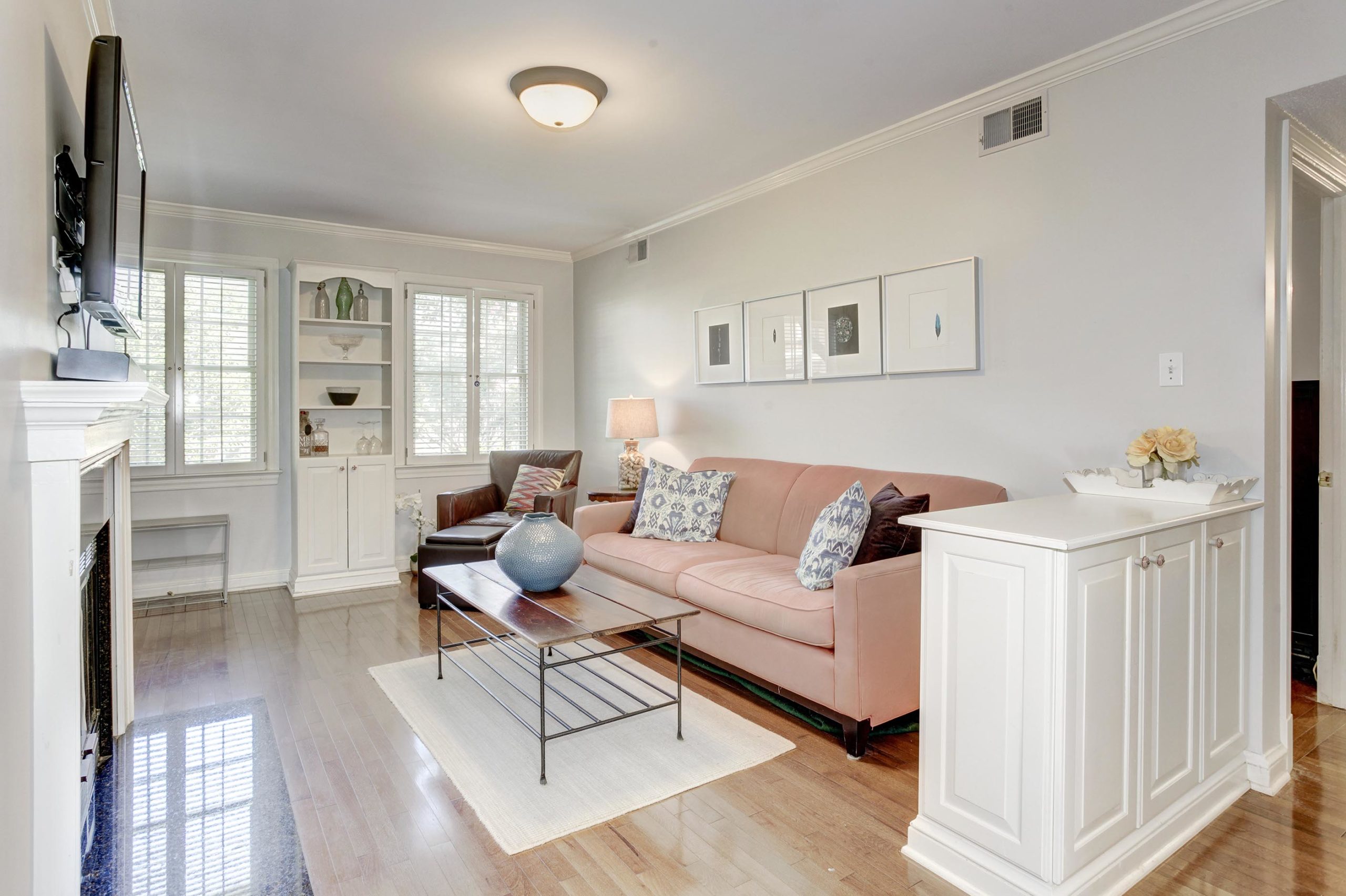| Lovely contemporarily styled 1 bedroom, 1 bathroom nested in the charming Cambridge Courts! The light filled main living area is accented with drywalled ceilings, crown molding, overhead lighting, a wood burning fireplace, & gleaming hardwood floors! Built-in bookcases offer ample storage. The gourmet kitchen WOWs with recessed lighting, white cabinetry, new LVP flooring, & granite countertops. The main bedroom is accented with a sitting area, flanked by built-in bookcases & a walk-in closet with custom shelving. The stylish renovated (2016) full bathroom has a subway tiled shower, herringbone tiled flooring, & an updated vanity! In-unit washer and dryer. The windows were replaced in 2017! This well maintained community has ample lush greenspace & connects to walking or biking trails. Great location, right off of route 50 makes this a commuter’s DREAM property! Easily get to the shops & restaurants of Arlington, Washington DC, and Old Town! Ample parking in lot or on the street. |