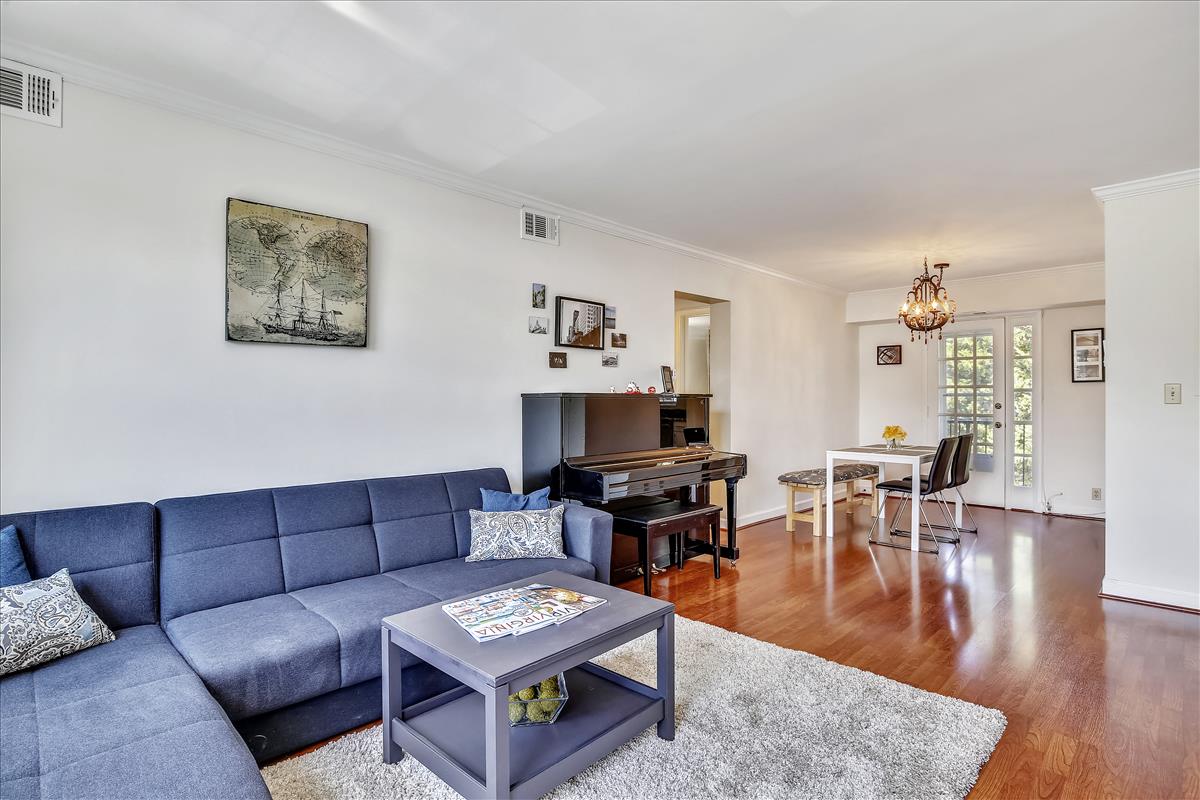 | Lovely 2 bedroom, 1 bathroom Richmond model condo nestled in Fairlington Villages! This renovated home features designer paint, gleaming wood flooring, & updated dual panel windows throughout. The light filled living room overlooks the separate dining room. The renovated kitchen features NEW (2020) stainless steel appliances, granite countertops, & overlooks the serene Fairlington Villages grounds. The private & spacious main bedroom features an Elfa outfitted closet. A nice sized additional bedroom, with a custom Elfa closet, a renovated full bathroom, & a laundry nook, with a Bosch washer and dryer, complete this home. RARE dry walled lower level storage room offers expansive storage options! Fairlington amenities include 6 pools, lighted tennis courts, tot lots, walking trails, & MORE! Great location near I-395, Village of Shirlington, & the shops/restaurants of North Arlington! |
