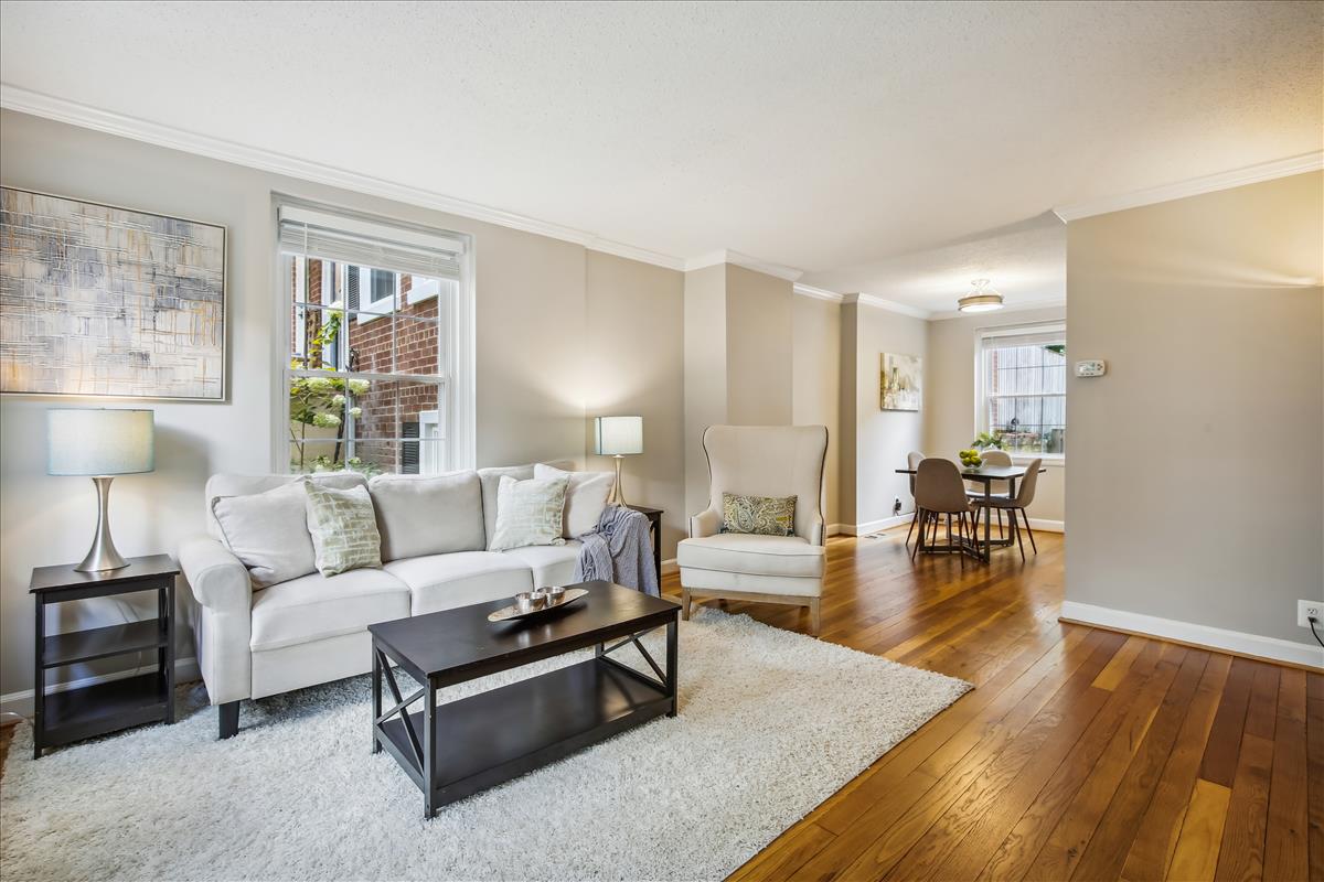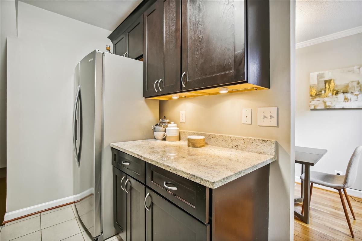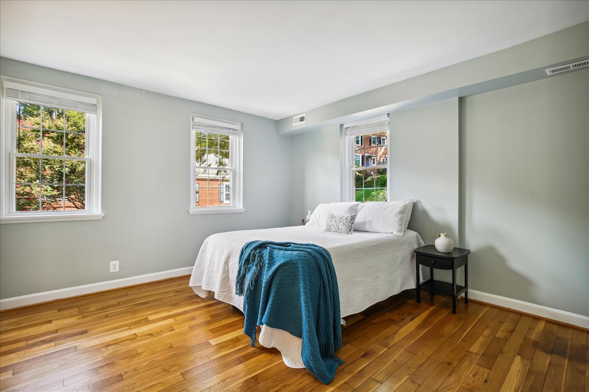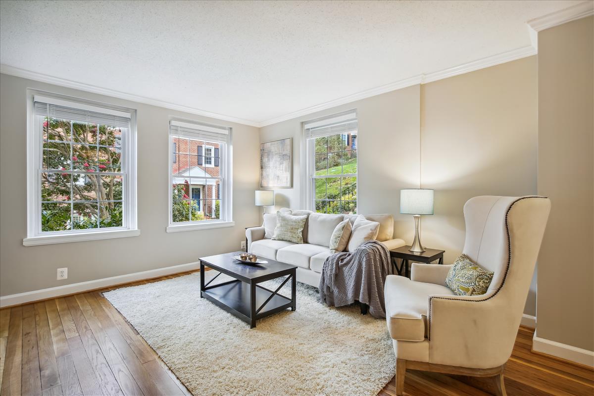 Beautiful 2 bedroom, 2 bathroom Clarendon II model townhome in Fairlington Villages! This home boasts newly refinished hardwood flooring on the main & upper levels and fresh paint & updated vinyl windows with new blinds throughout. The light-filled main level features crown molding and an updated kitchen with granite countertops, Shaker-style cabinets with under-cabinet lighting, a new faucet (2022), & stainless steel appliances including a newer refrigerator (2020) & dishwasher (2019). The separate dining area overlooks the private & serene back patio – perfect for relaxing on a warm day! The upper level includes a primary bedroom with a large closet, a second bedroom, & a full bathroom with wood-look tile flooring, a new light fixture, faucet, & mirror, and an updated shower with oversized tiling. The lower level features a spacious recreation room & bonus room with upgraded LVP flooring, and a full bathroom with tile flooring, white vanity, medicine cabinet mirror, sparkling white corner shower, & laundry nook with full-sized washer & dryer + overhead shelving. Other home features include a newer HVAC (2019), roof (2020), & front windows (2020). Fairlington Villages amenities include 6 pools, lighted tennis courts, tot lots, walking trails, & MORE! Great location near I-395 & the shops and restaurants of Shirlington Village, the new West Alex development, Del Ray, & Old Town!