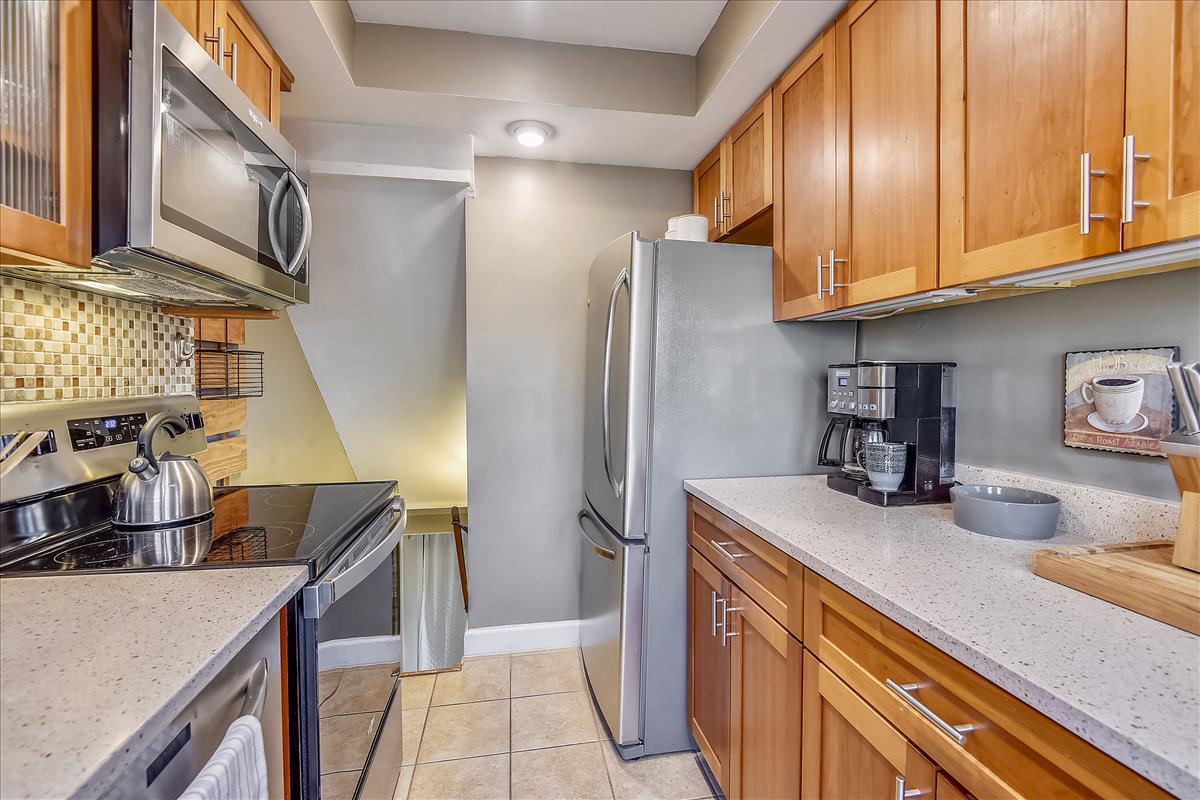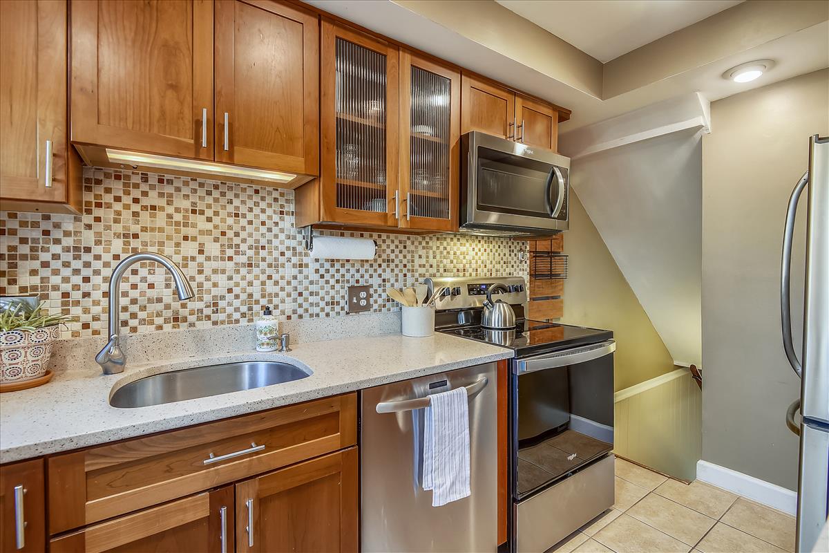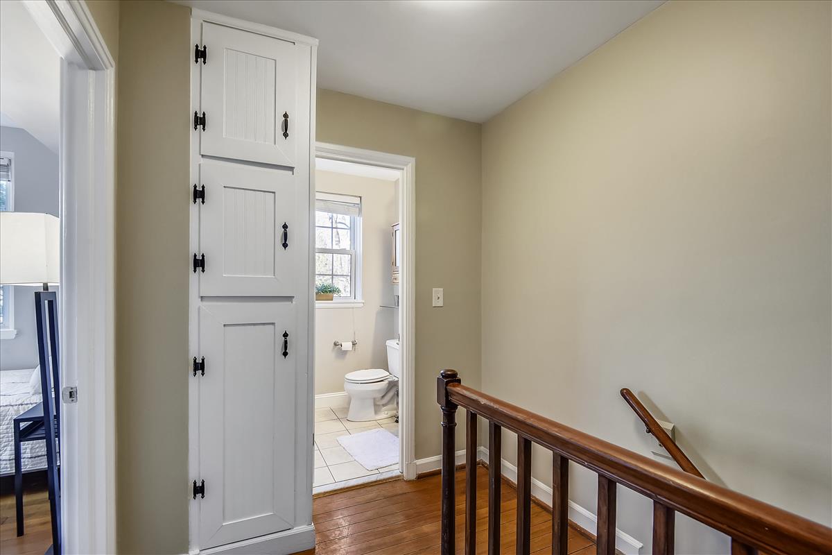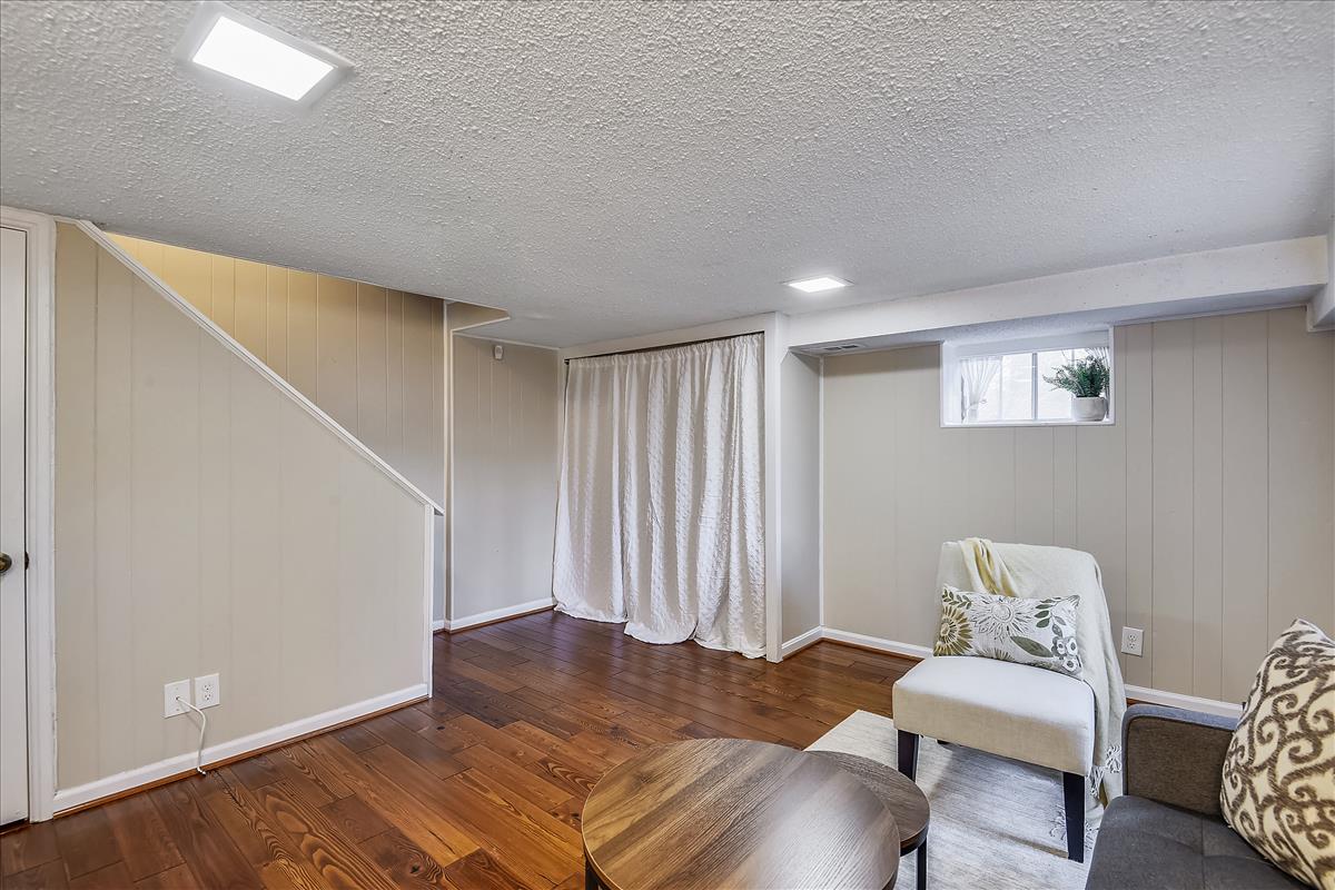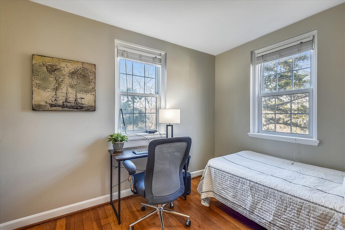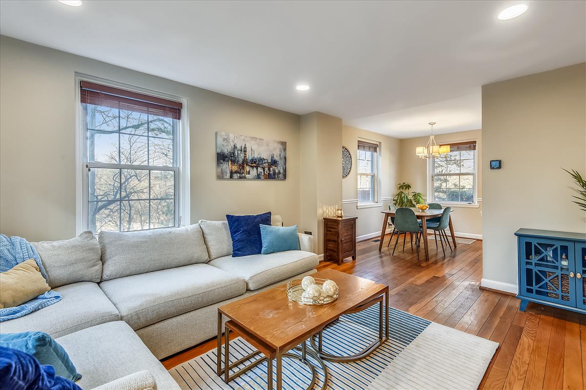 Beautiful 2 bedroom, 2 bathroom Clarendon II model townhome nestled in Fairlington Villages! This light-filled end unit features fresh paint throughout the home and gleaming hardwood floors & recessed lighting on the main level. The kitchen is accented with updated cabinets, quartz countertops, tile backsplash, stainless steel appliances (including a NEW stove & microwave), & a spacious separate dining area. The upper level includes two bedrooms & a full bathroom. The primary bedroom features a closet with custom build-outs and a modern barn door. The second bedroom also has a closet with custom shelving and is perfect to use as either a home office or bedroom. The full bathroom with a vessel-topped vanity, matching storage cabinet, & tiled shower completes this level. The lower level is accented with gorgeous engineered hardwood flooring throughout the spacious recreation room with a good-sized utility/storage closet and bonus room. The full bathroom is accented with a custom glass-enclosed shower with niche shelving & a laundry nook with a full-sized washer/dryer and overhead shelving. This home features newer windows and RARE double access to the outdoors – one to the private, relaxing patio and another to an expansive green space behind the house. Fairlington Villages amenities include 6 pools, lighted tennis courts, tot lots, walking trails, & MORE! Great location near I-395, & the shops and restaurants of Shirlington Village.