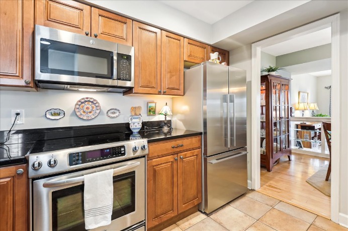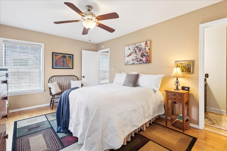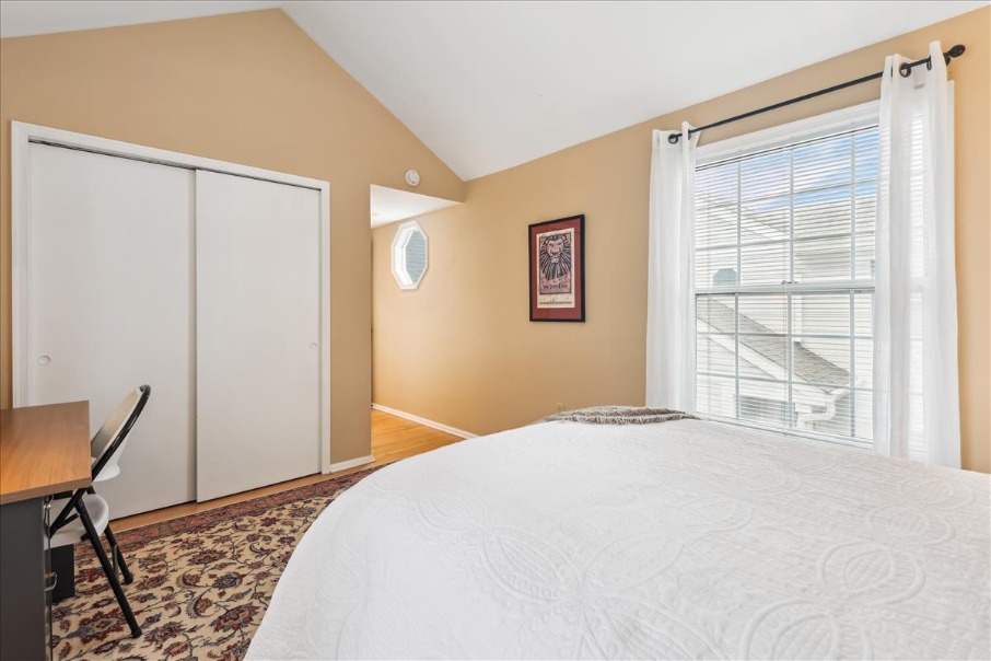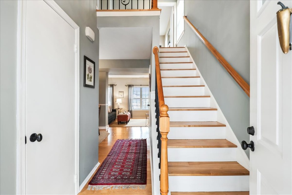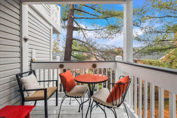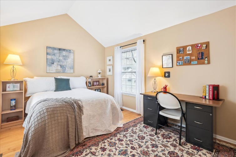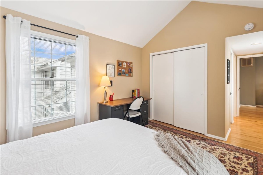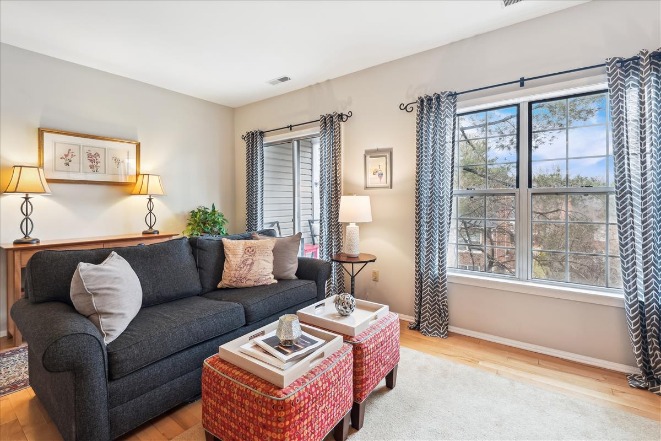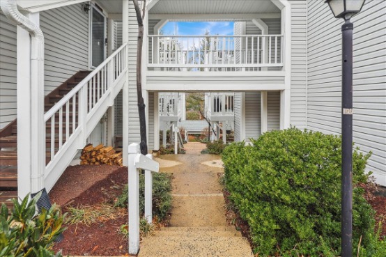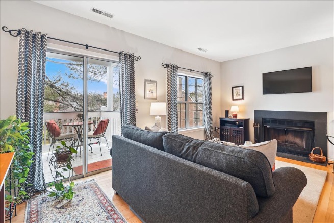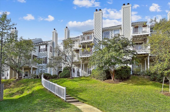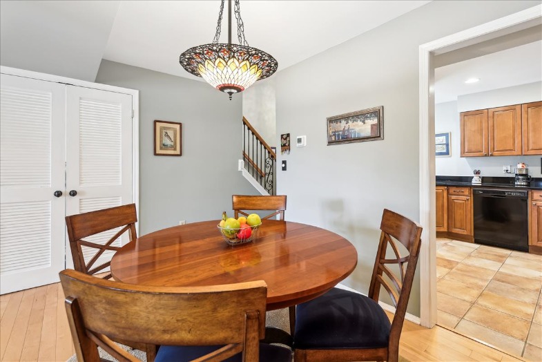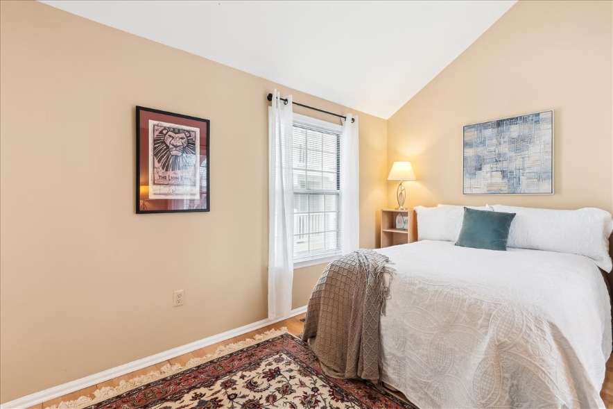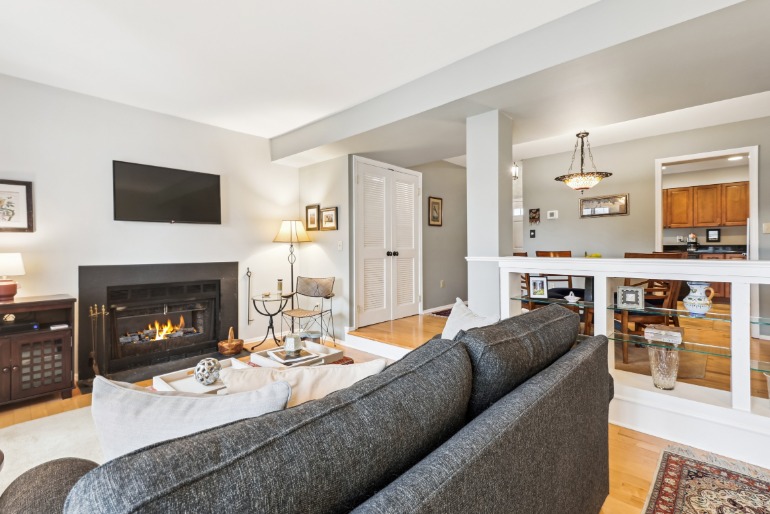 Gorgeous 2 bedroom, 2.5 bathroom Dartmouth model condo in the sought-after Courtbridge community! The main level features an entryway with vaulted ceilings & a powder room, plus gleaming maple hardwood floors throughout. The kitchen is accented with tile flooring, upgraded cabinetry with ample storage space, granite countertops, stainless steel appliances, & recessed lighting. The dining room features a chandelier and overlooks the spacious, light-filled living room with a wood-burning fireplace and a sliding glass door to the balcony, where you can take in the sweeping views of the beautiful Courtbridge community. French door access to the under-stair utility/storage space completes this level.