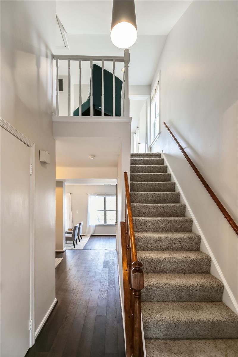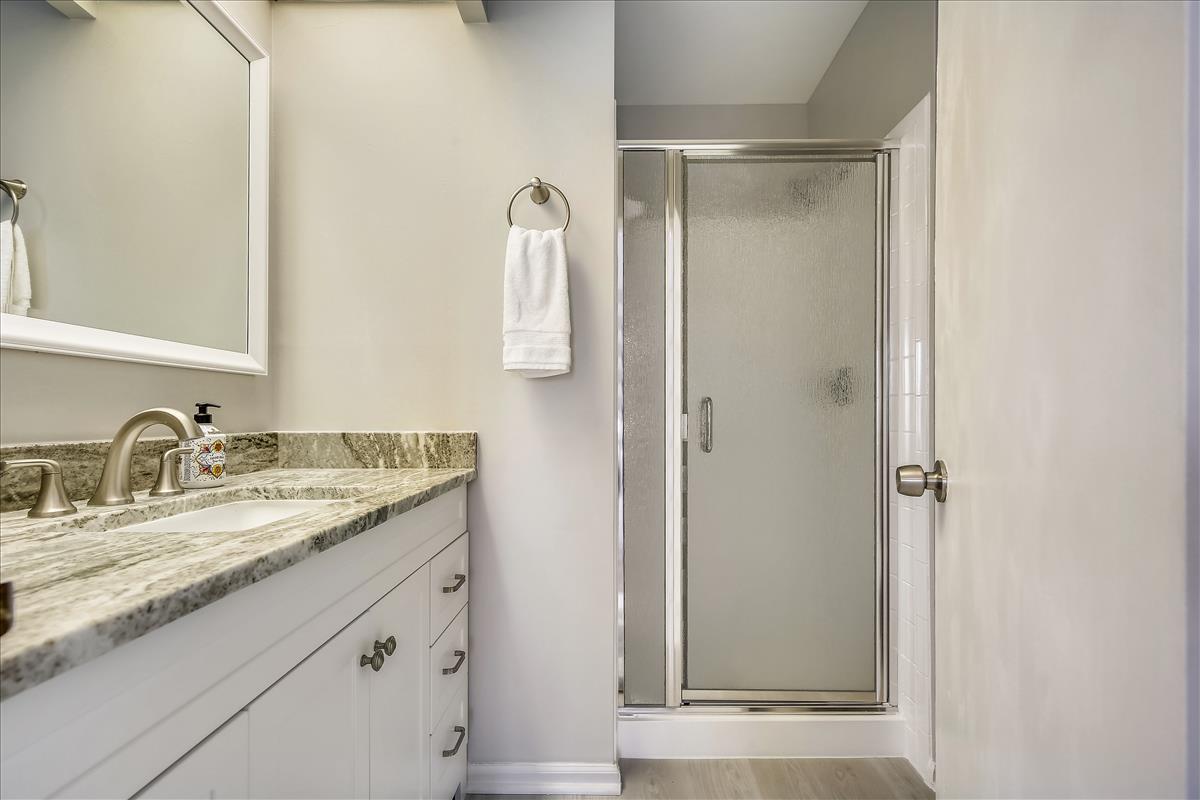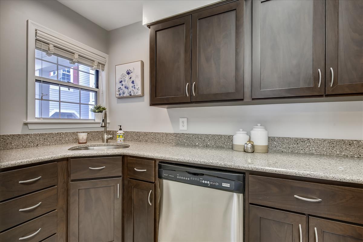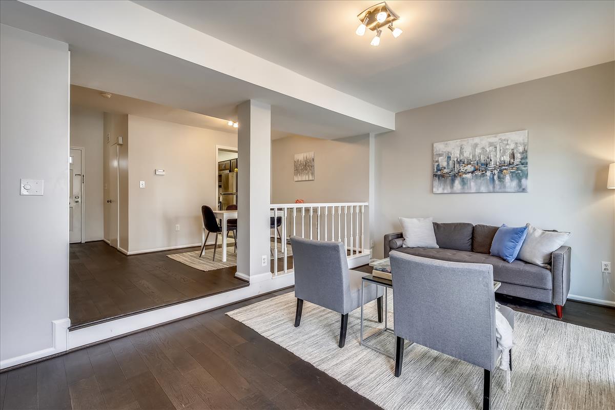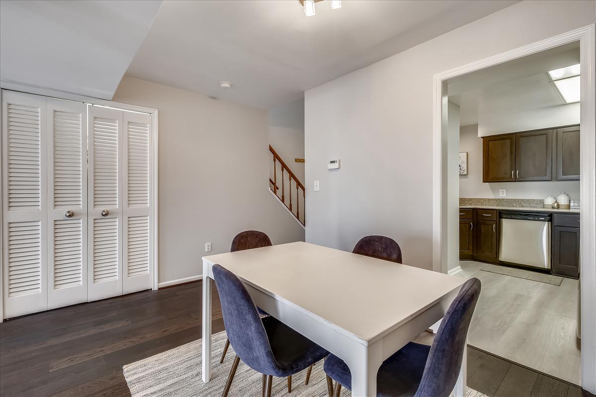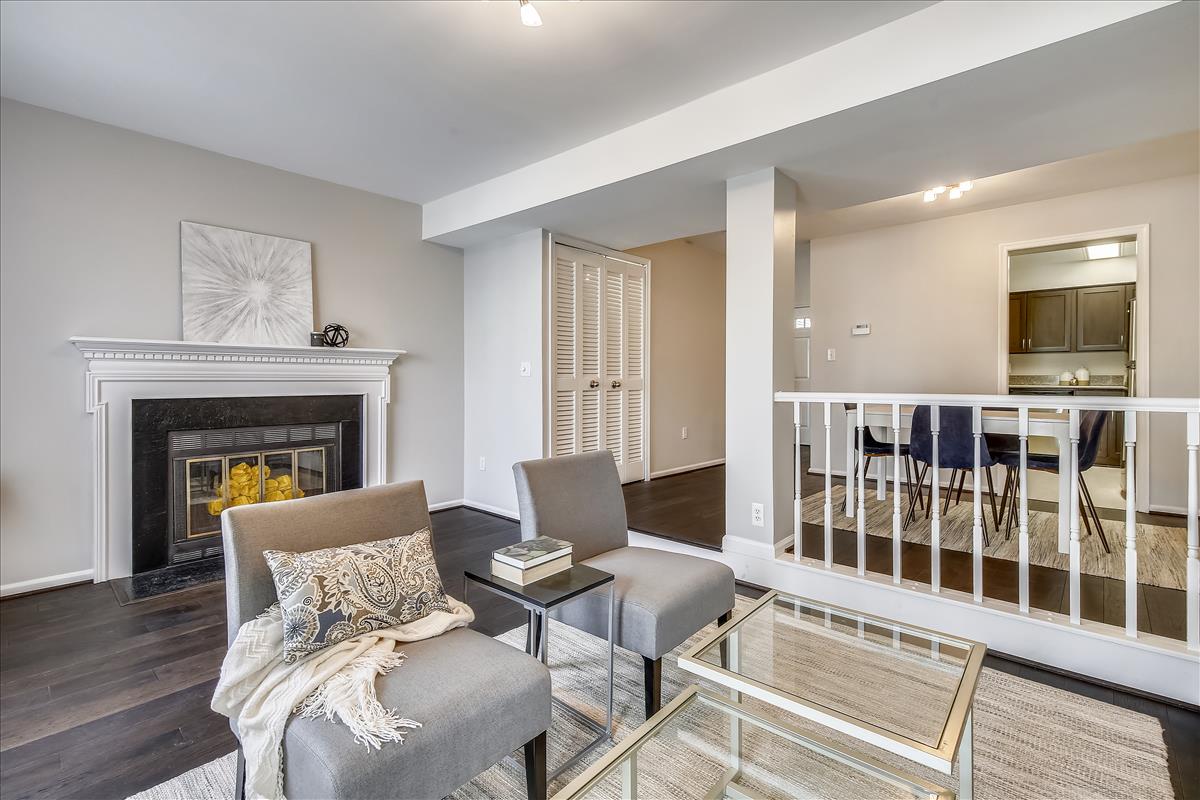 Beautiful & bright 2 bedroom, 2.5 bathroom end unit townhome in the sought-after Courtbridge community! The main living level is accented with rich engineered hardwood flooring & neutral paint throughout. This level features a foyer with 2-story-high ceilings and a half bathroom with a large vanity off of the foyer. The kitchen overlooks the front courtyard and features updated flooring, cabinets, & countertops, stainless steel appliances, & a new disposal (2021). A separate dining area overlooks the spacious sunken living room, accented with a wood-burning fireplace and large sliding glass doors out to the private rear balcony. A utility closet with a brand new water heater (2021) & ample storage space completes this level. The upper level is accented with plush carpeting and features a loft where you will find the laundry closet, equipped with a brand new full-sized LG washer & dryer (2021)! The spacious primary bedroom is accented with a ceiling fan & tons of closet space and features a newly remodeled ensuite bathroom with updated flooring, new vanity with granite countertop, new toilet, & sparkling white tiled shower. The primary bedroom has its own private balcony with sweeping views of South Arlington. A second spacious bedroom with a vaulted ceiling and ceiling fan, that ALSO includes its own ensuite full bathroom with large vanity & sparkling white shower, completes this home. Take advantage of the community pool and convenient location just steps from the dog park, W&OD trail, and the shops/dining at Shirlington Village, as well as easy access to 395!