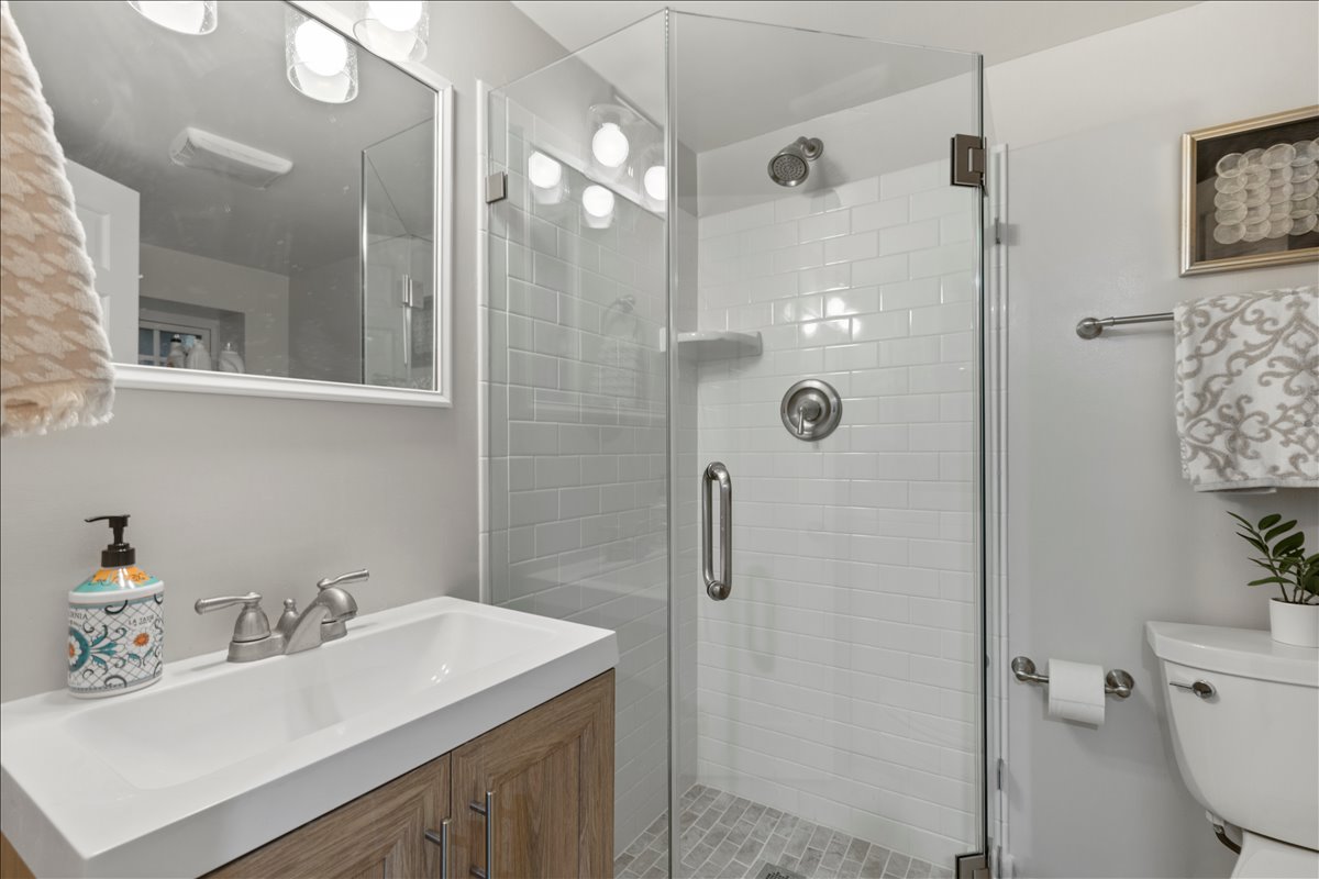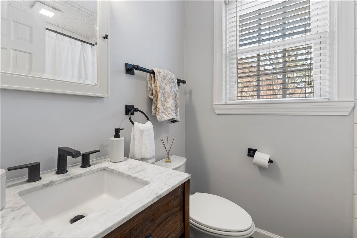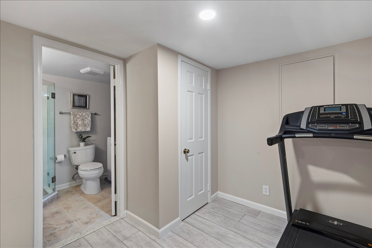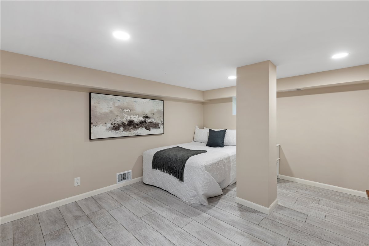 Upstairs, the renovated bathroom is beautifully finished with hexagon tile flooring, a stone-topped vanity, a medicine cabinet mirror, & a white subway tile shower with niche & corner shelving & a tub. The spacious & light-filled primary bedroom features recessed lighting, a ceiling fan with overhead lighting, & a large walk-in closet with custom built-ins. The 2nd bedroom offers updated flooring, recessed lighting, & windows on two walls for abundant natural light. A hallway linen closet adds extra convenience & storage. The fully renovated lower level expands the living space with new LVP flooring & recessed lighting throughout the large recreation room & bonus room with a closet – perfect for a guest space, home office, or gym. The updated lower-level bathroom includes tile flooring, a new vanity and light fixture, & a glass-enclosed white subway tile corner shower. A dedicated laundry nook with a full-sized washer & dryer plus overhead shelving completes this thoughtfully designed home. Other home features include a large attic & two reserved/unassigned parking spaces. Fairlington Villages residents enjoy six pools, lighted tennis courts, tot lots/playgrounds, walking paths, and MORE! Ideally located near I-395 and the shops & restaurants at The Village at Shirlington, West Alex, Baileys Crossroads, Del Ray, & Old Town.
