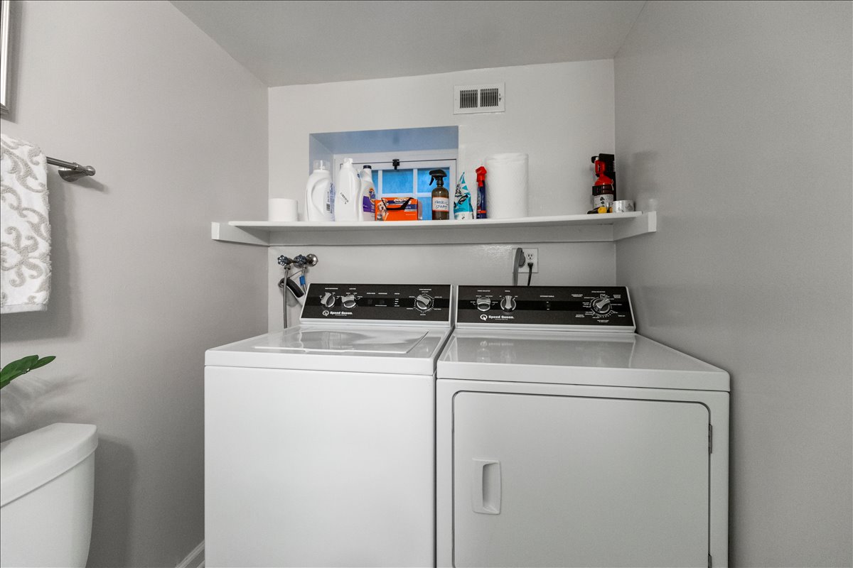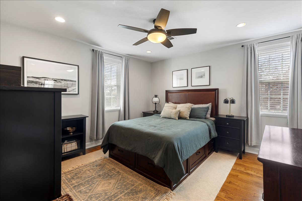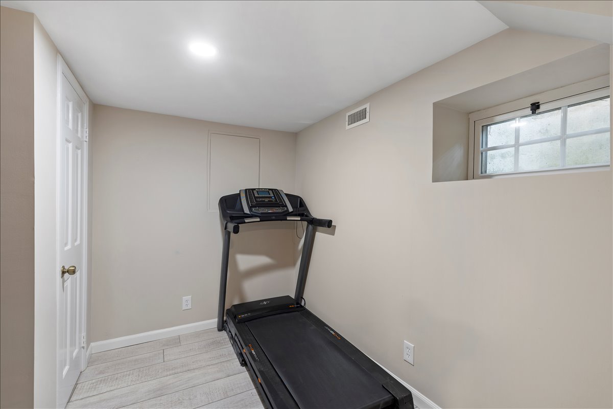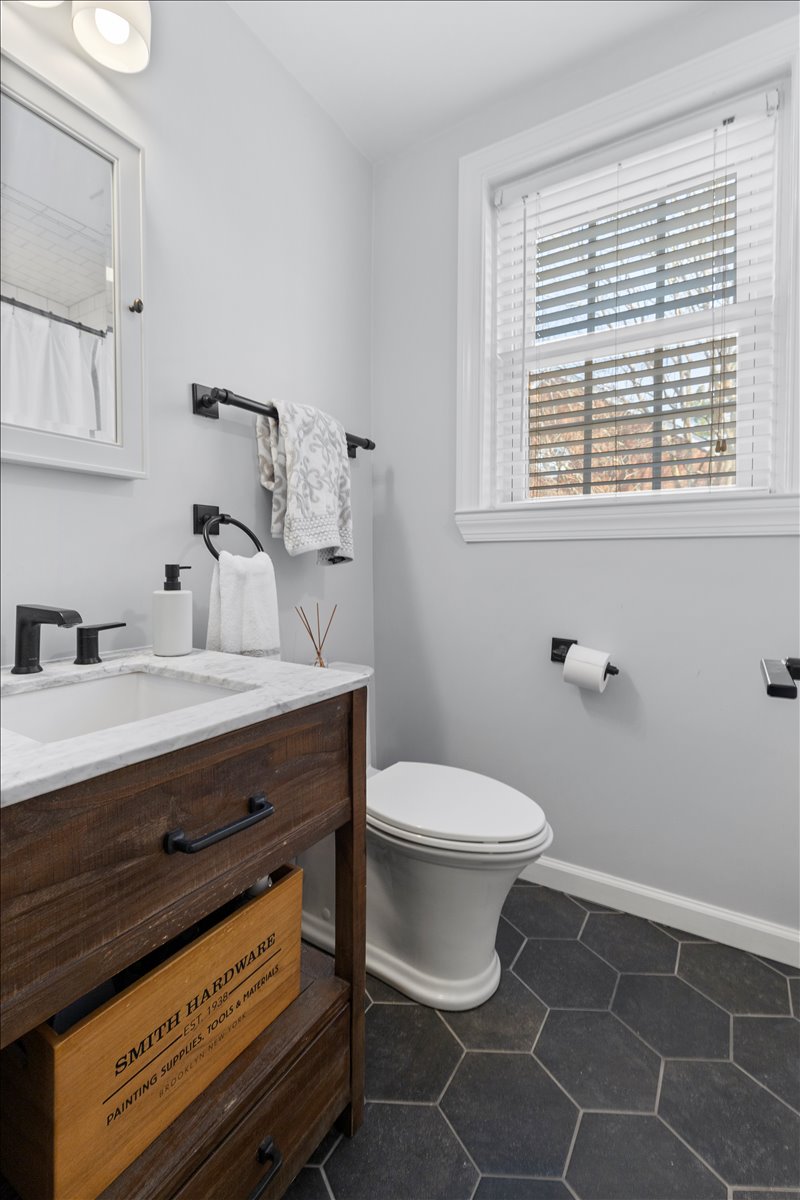Upstairs, the renovated bathroom is beautifully finished with hexagon tile flooring, a stone-topped vanity, a medicine cabinet mirror, & a white subway tile shower with niche & corner shelving & a tub. The spacious & light-filled primary bedroom features recessed lighting, a ceiling fan with overhead lighting, & a large walk-in closet with custom built-ins. The 2nd bedroom offers updated flooring, recessed lighting, & windows on two walls for abundant natural light. A hallway linen closet adds extra convenience & storage. The fully renovated lower level expands the living space with new LVP flooring & recessed lighting throughout the large recreation room & bonus room with a closet – perfect for a guest space, home office, or gym. The updated lower-level bathroom includes tile flooring, a new vanity and light fixture, & a glass-enclosed white subway tile corner shower. A dedicated laundry nook with a full-sized washer & dryer plus overhead shelving completes this thoughtfully designed home. Other home features include a large attic & two reserved/unassigned parking spaces. Fairlington Villages residents enjoy six pools, lighted tennis courts, tot lots/playgrounds, walking paths, and MORE! Ideally located near I-395 and the shops & restaurants at The Village at Shirlington, West Alex, Baileys Crossroads, Del Ray, & Old Town.