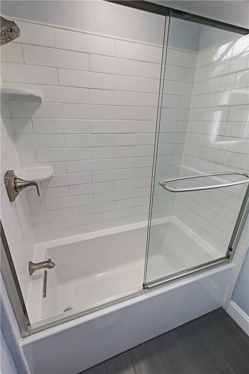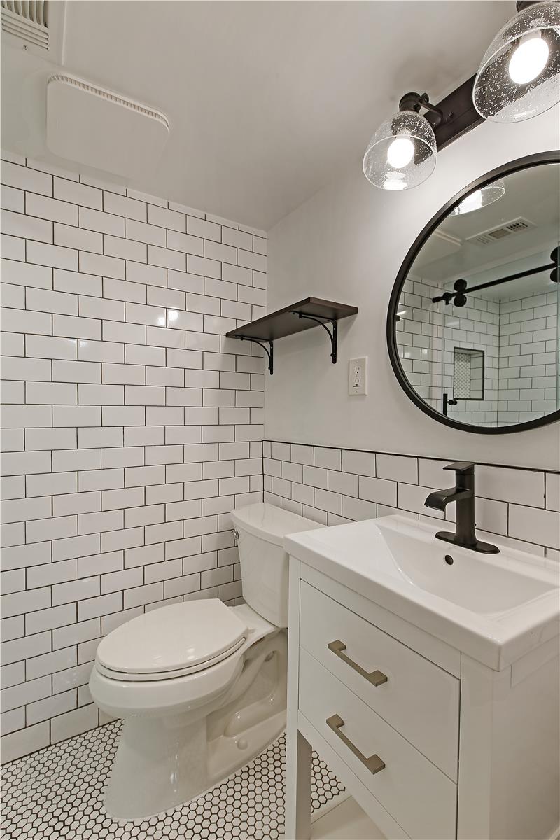 Beautiful Barcroft model home in Fairlington Green – nearly 1,500 sq ft over two living levels! The main level features hardwood flooring, neutral paint, & updated windows. The kitchen is accented with ivory cabinetry, stone countertops, stainless steel appliances, & a spacious dining area with a modern light fixture. The door in the kitchen leads to the huge private back patio – great for relaxing or entertaining! The main bedroom is large enough to fit a king bed & includes one walk-in closet with lighting & a 2nd closet with shelving! The updated full bathroom features oversized floor tile, a new vanity with granite countertop, modern mirror with touch-light, & a sparkling white subway tiled shower with sliding glass door & overhead lighting. The lower level features updated flooring & neutral paint throughout. The recreation room is a great 2nd living space and includes under-stair closet storage. The renovated bathroom is accented with hexagon floor tile, a new vanity, matte black fixtures, & a custom subway tiled shower with sliding glass door, niche shelving, & overhead light. The spacious bonus room (commonly used as a 2nd bedroom) features a large walk-in closet. The renovated workshop/laundry room features recessed lighting and includes a full-sized front loading washer & dryer, built-in counter space, & a ton of cabinet storage! This home includes one unassigned parking lot space & ample street parking. Water, sewer, trash, & snow removal included in the monthly rent! Max of two pets allowed. Community amenities include a pool, tennis courts, tot lots, walking paths, & MORE! Great location near the Fairlington Farmers Market, Bradlee Shopping Center, Shirlington Village, & Old Town!