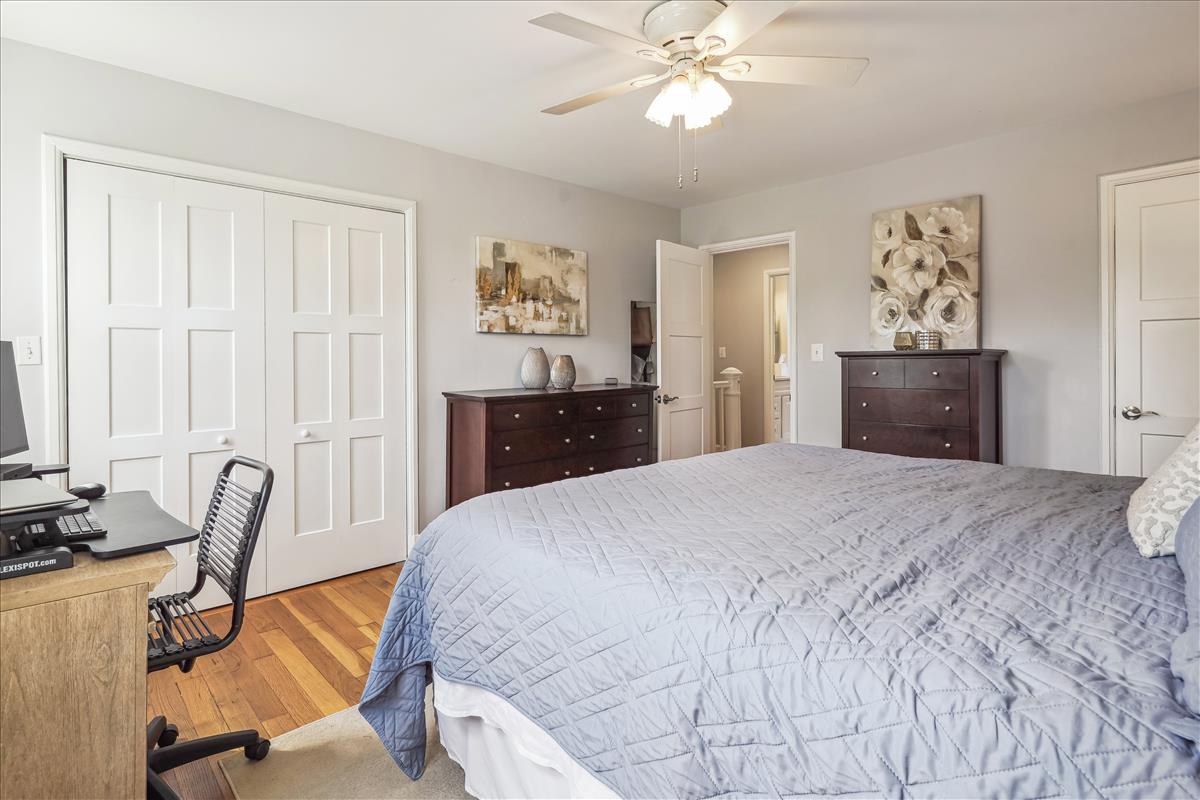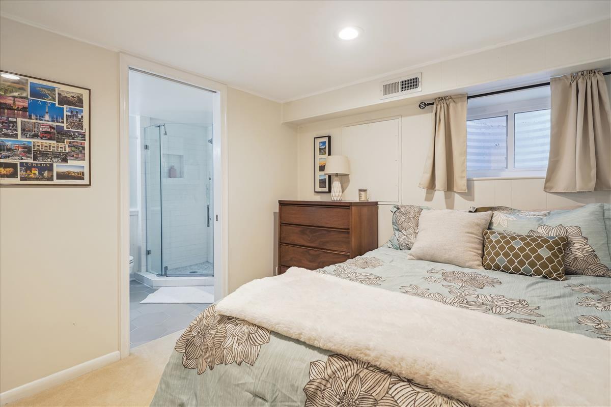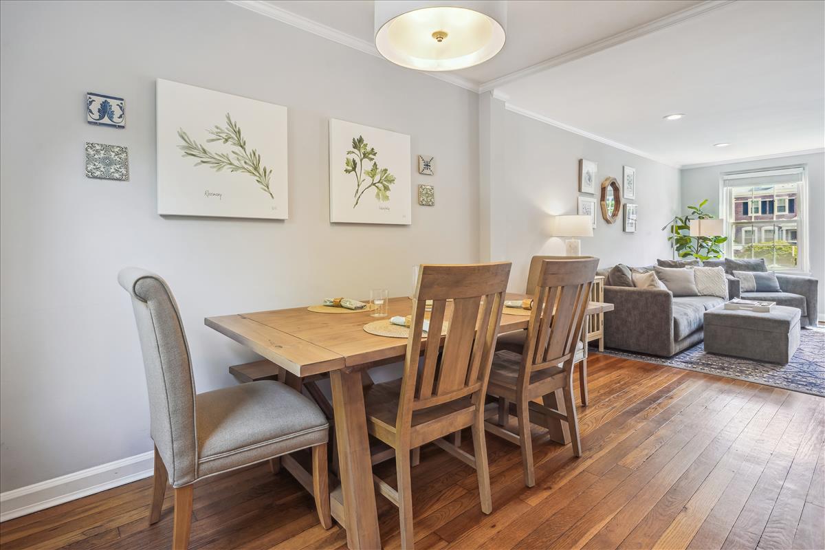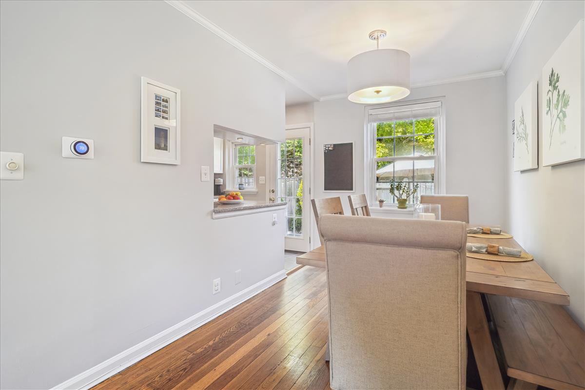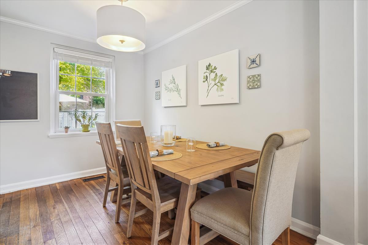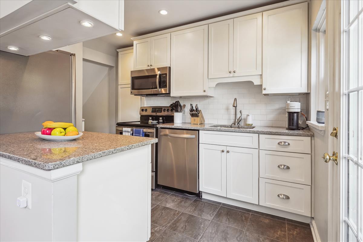 Gorgeous 2 bedroom, 2 bathroom Clarendon I model townhome in Fairlington Green! This modern, light-filled home features gleaming hardwood floors, recessed lighting, updated windows & crown molding throughout the main level. The partially open kitchen is accented with updated white cabinetry, granite countertops, white subway tile backsplash, & stainless steel appliances. The separate dining area features a modern chandelier and overlooks the private & serene back patio with newer flagstone pavers & beautiful landscaping (2019). The upper level includes a spacious primary bedroom with a ceiling fan & two closets outfitted with custom organizers. The second bedroom features a stunning green coffered accent wall and a good-sized closet. The updated bathroom is accented with a white quartz-topped vanity, contemporary light fixture, tile flooring, crown molding, & a gray hexagon tiled shower with a newer tub. The lower level features plush carpeting, recessed lighting, & newer vinyl windows (2019) throughout the spacious recreation room & bonus room – commonly used for guests or as a home office. The full bathroom includes a pocket door, oversized gray hexagon floor tile, a frameless corner shower with mosaic tile flooring, a pedestal sink, & a laundry nook with full-sized washer & dryer + overhead storage cabinets. Other home features include all new doors & hardware throughout the home (2021), new stair banisters & railings (2021), & a HUGE floored attic with a window (perfect opportunity for expansion!) Community amenities include a pool, tennis courts, tot lots, walking paths, & MORE! Just steps from the Fairlington Farmers Market, Fairlington Community Center, state-of-the-art playground, & Utah Dog Park. Great location near I-395, the shops & restaurants at Shirlington Village, Del Ray, & Old Town Alexandria!