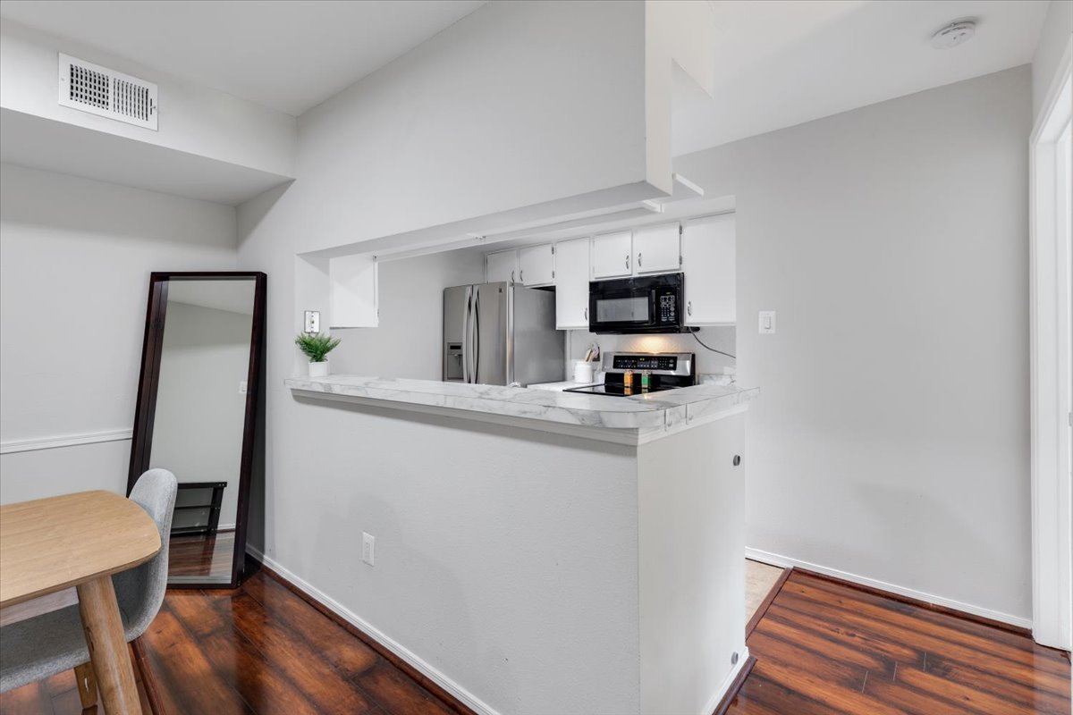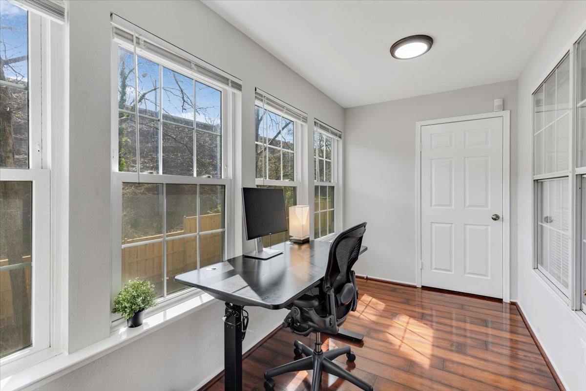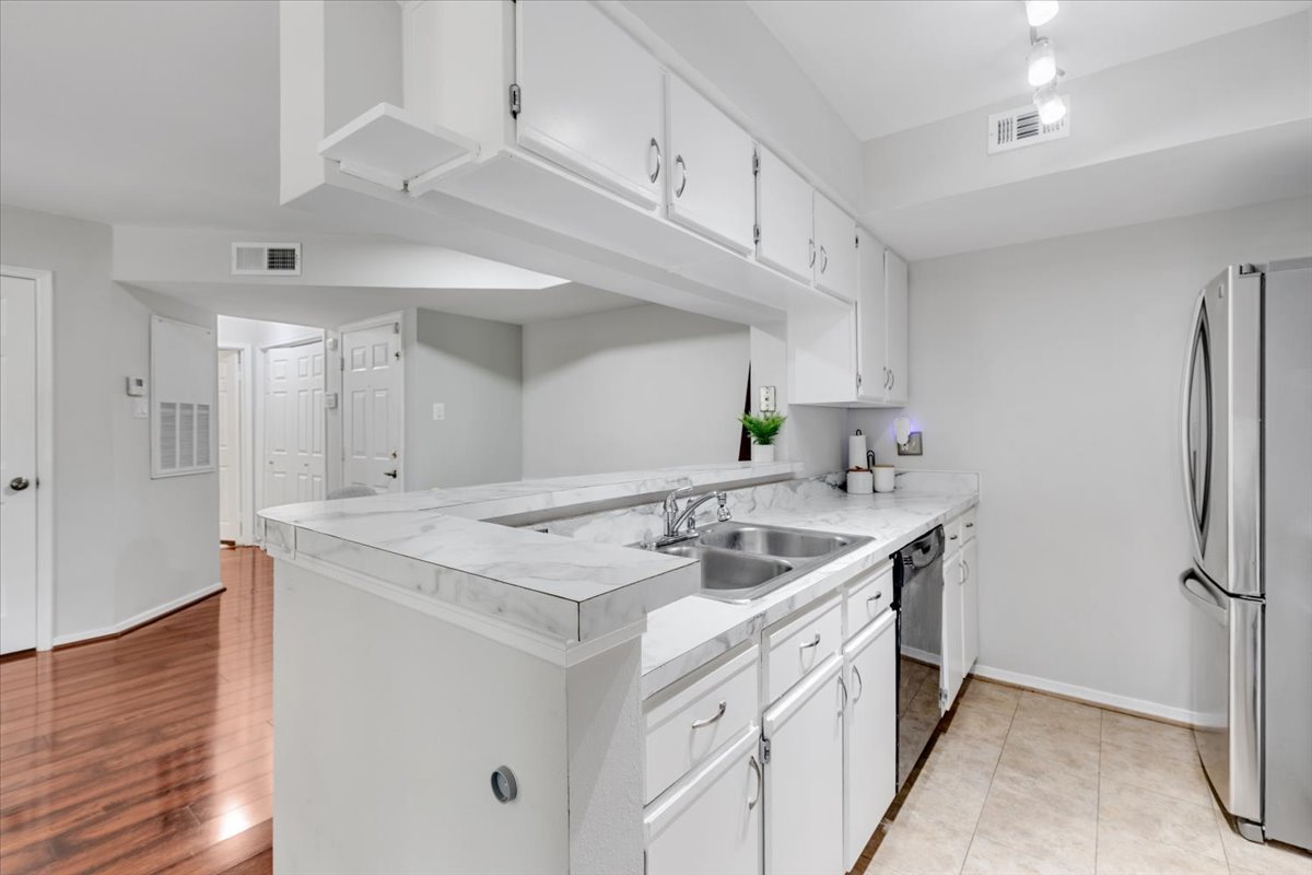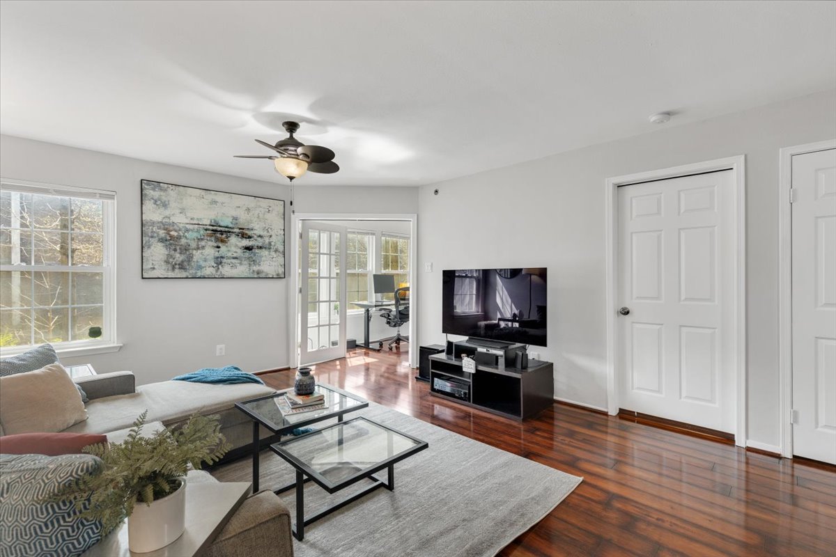 Beautiful 2-bedroom, 2-bathroom end-unit condo at the Point at Park Center Condominium in Alexandria West! The open-concept main living area features gleaming hardwood floors, neutral paint, & a seamless flow from the dining area with overhead lighting, into the spacious living room with a ceiling fan and overhead light. A convenient coat/storage closet adds everyday functionality right at the entry. The kitchen is both stylish and practical, offering tile flooring, white cabinetry, & stainless steel appliances. Just off the living room, the enclosed sunroom provides a versatile bonus space with a storage closet – perfect for a home office, workout area, or cozy sitting room.