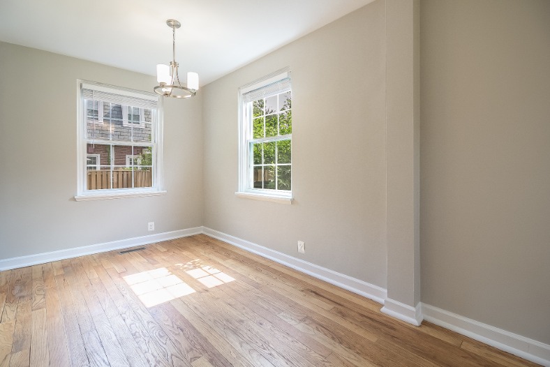 Beautiful 2 bedroom, 2 bathroom end-unit townhome for rent in Fairlington Meadows! The light-filled main & upper levels feature hardwood flooring and neutral paint throughout. The partially open kitchen features upgraded white cabinetry, LVP flooring, NEW quartz countertops (being added March-April 2025), breakfast bar with a seating area, and stainless steel dishwasher, microwave, & refrigerator. The separate dining area with contemporary chandelier overlooks the back patio – perfect for relaxing or entertaining on a warm spring day!