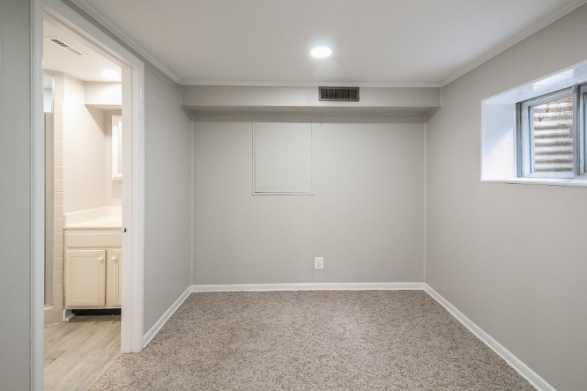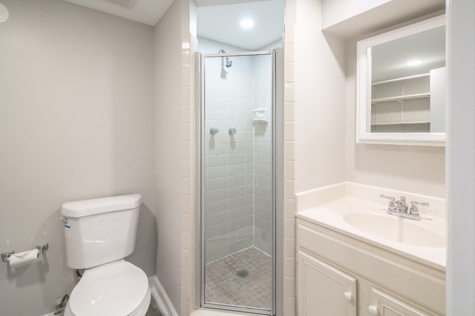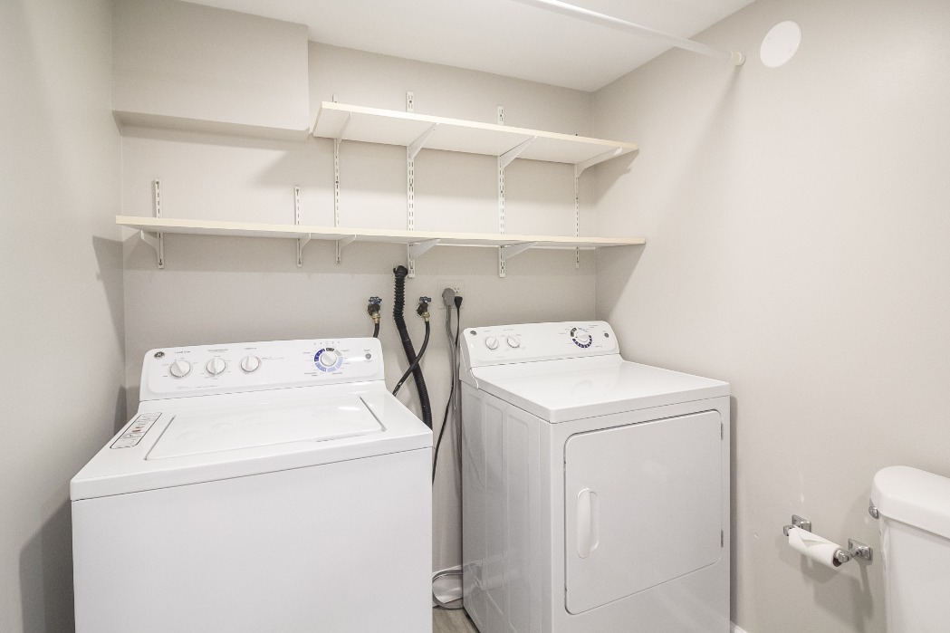 The upper level features a primary bedroom with overhead lighting and TWO closets, including one walk-in closet with built-in shelving. A second bedroom and a full bathroom with a stone-topped dual vanity and a tiled shower complete this level. The lower level has plush carpeting and recessed lighting throughout the spacious recreation room and bonus room – great for guests or a home office. Another full bathroom features a newly added glass-enclosed shower & new vanity (being added March-April 2025), and a laundry nook with a full-sized washer & dryer + overhead shelving. Other home features include a floored attic for extra storage space and one assigned parking space (#451). Sorry, no pets allowed.