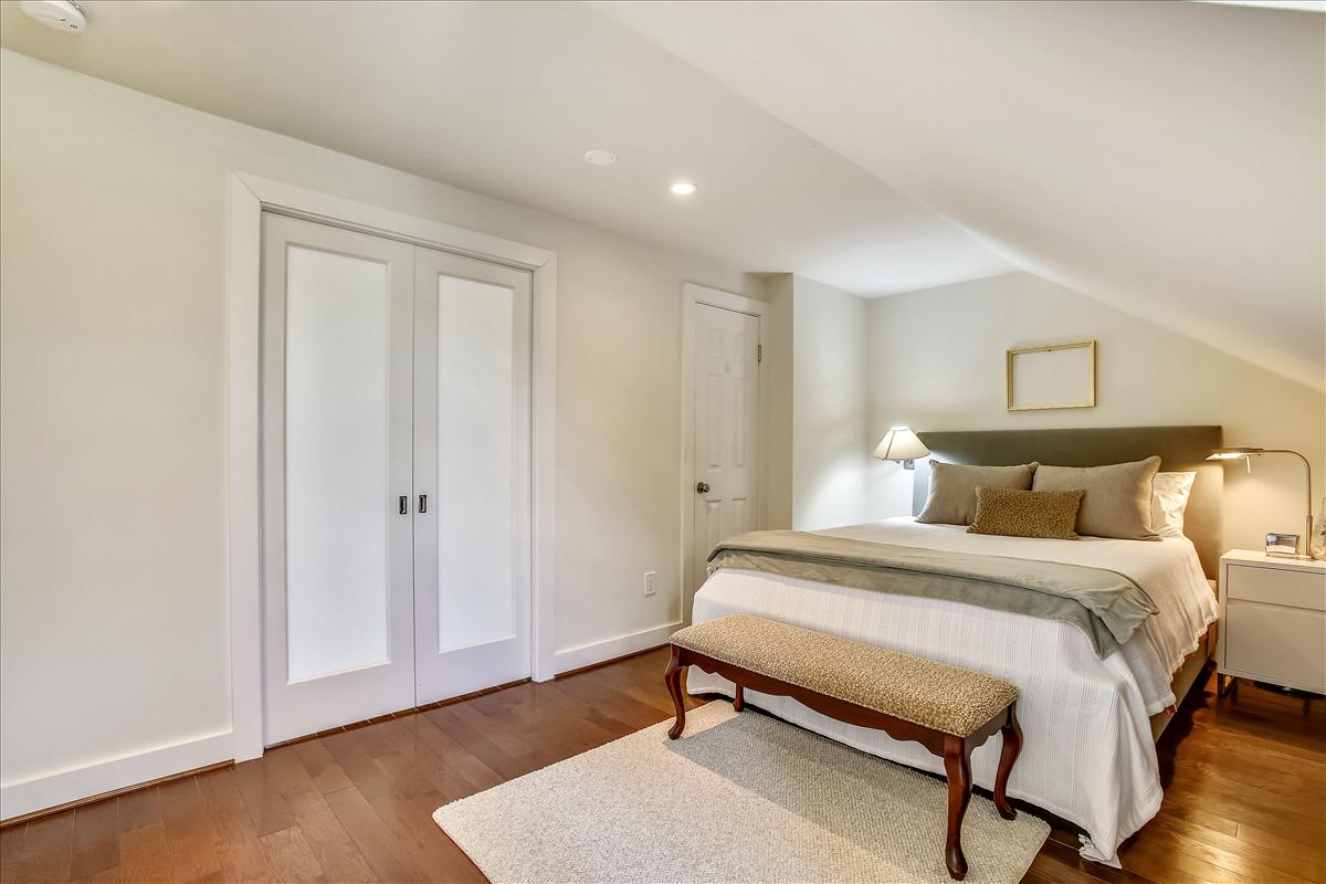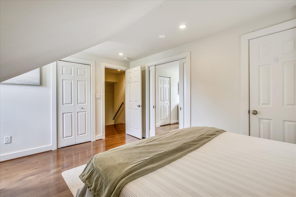 Gorgeous 3 bedroom, 2 bathroom Buckingham model home in Fairlington Commons! This renovated, light-filled home features rich wood flooring, recessed lighting, updated windows, & neutral paint throughout. The main level features a spacious living room with a large walk-in closet equipped with custom shelving. The renovated open kitchen is accented with modern white soft-close cabinetry, upgraded stone countertops, a tile backsplash, & stainless steel appliances. The separate dining area includes a large pantry with Elfa shelving for extra storage. The side hallway leads to the spacious primary bedroom with a large walk-in closet. A fully updated & expanded bathroom with heated floors, a Cambria quartz-topped vanity with soft-close cabinets, & a custom-tiled shower with an air jet soaking tub completes this level. The upper level features two bedrooms connected by French double pocket doors and a shared ensuite bathroom. The first bedroom features a HUGE customizable Elfa-designed walk-in closet. The other bedroom features a closet & access to the extra attic storage. The updated ensuite bathroom is accented with heated floors, a sparkling white tiled glass-enclosed shower with a corner seat and niche shelving, & a stone-topped vanity with soft-close cabinets. A laundry room with stackable washer & dryer completes this home. Community amenities include a pool, tennis courts, tot lots, walking paths, & MORE! Great location right across from the pool, a short walk to the Fairlington Farmers Market & state-of-the-art playground, and close to Shirlington Village, Bradlee Shopping Center, & Old Town!