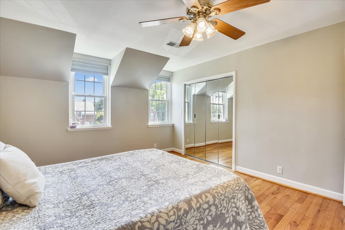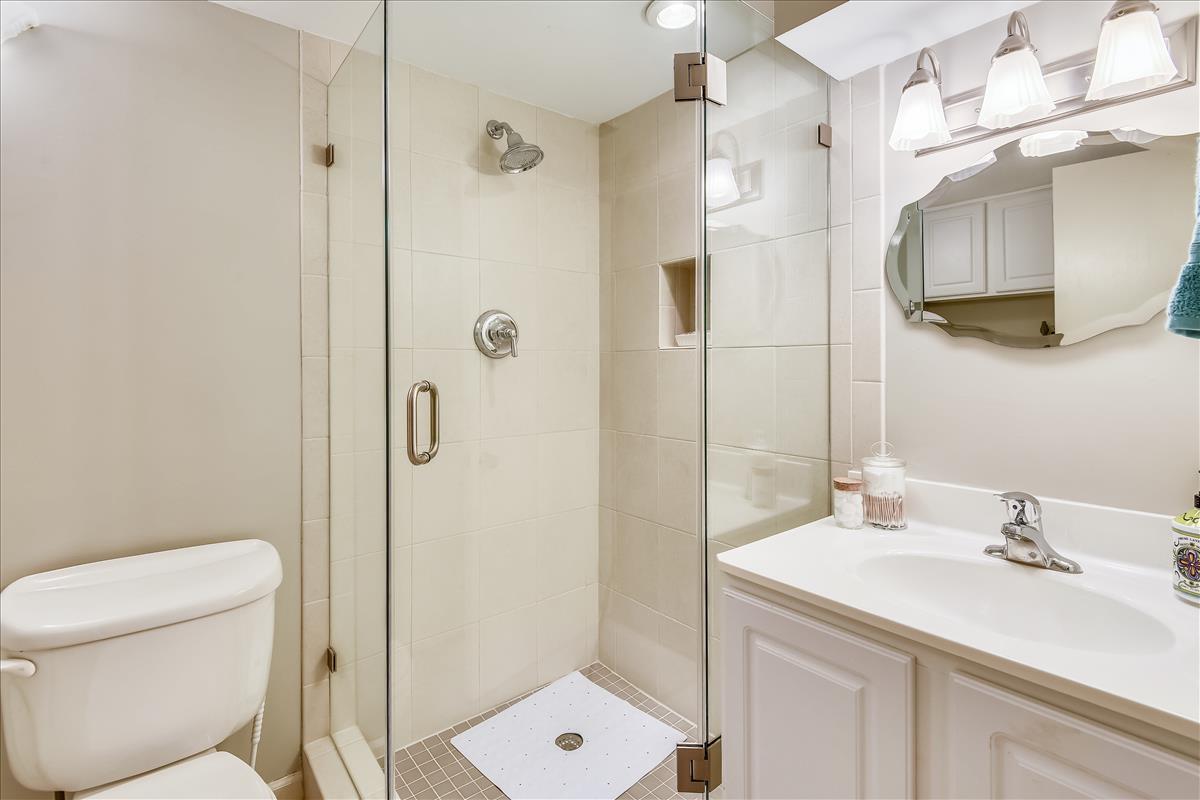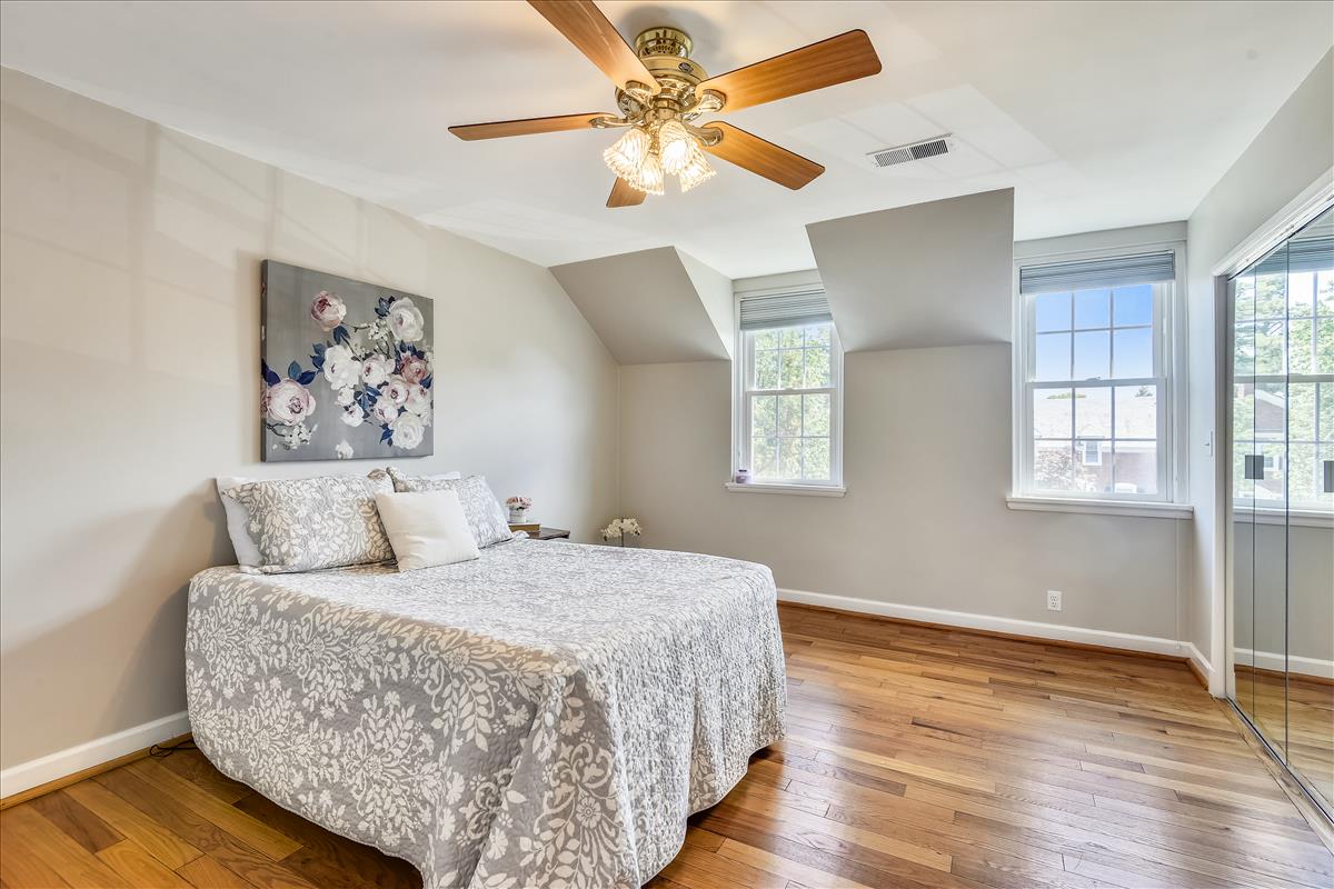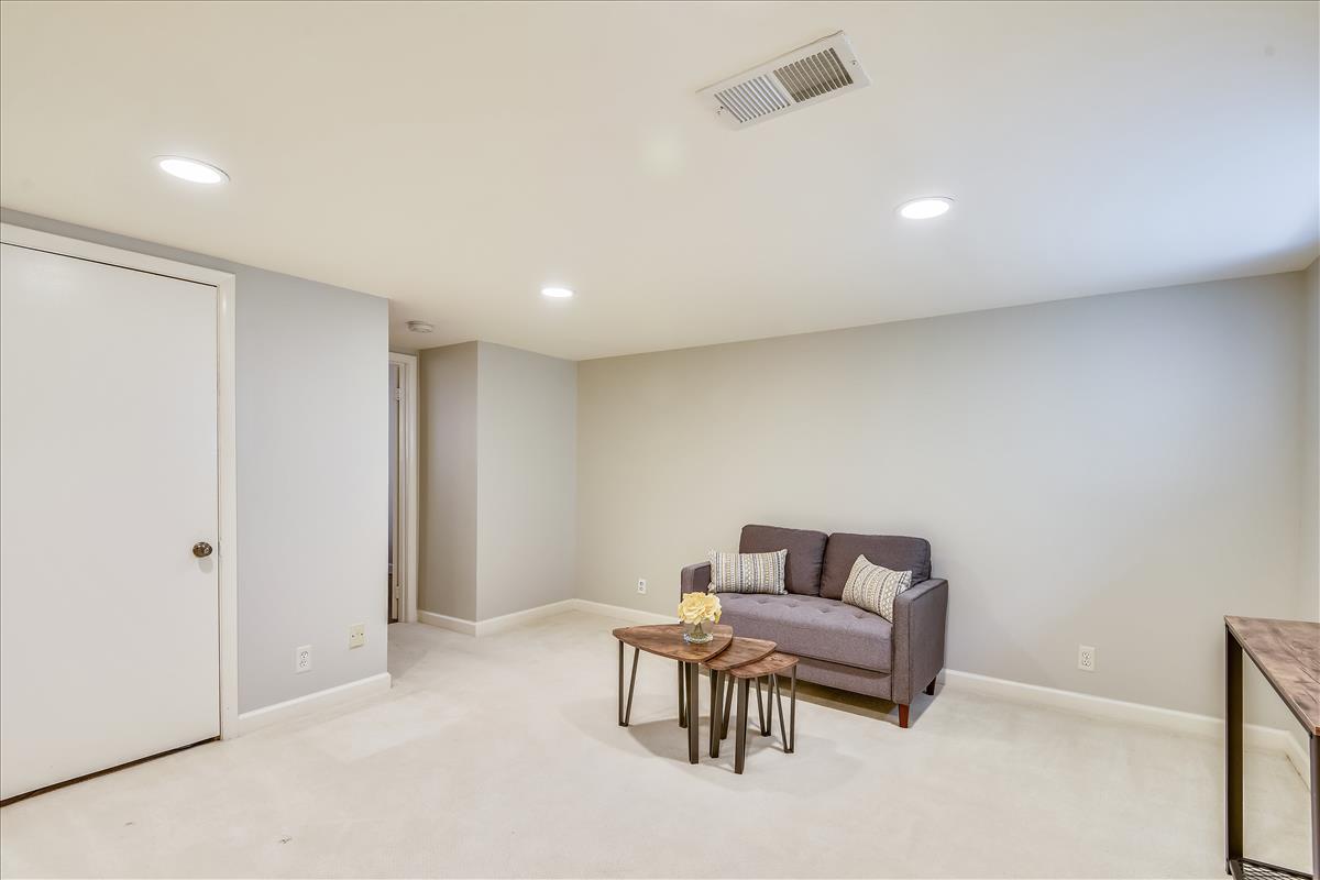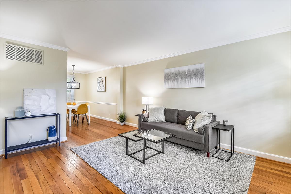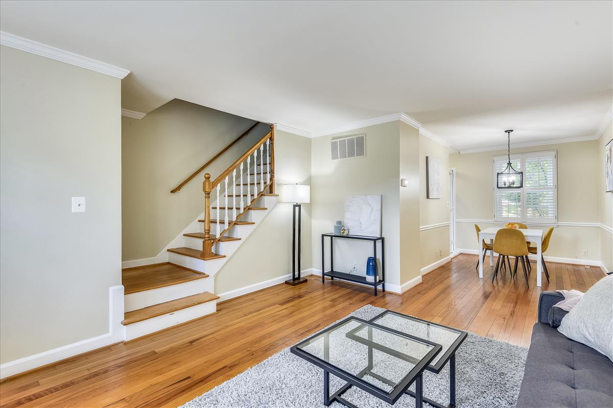 Lovely 2 bedroom, 2 bathroom Clarendon I model home in Fairlington Meadows! The freshly painted, light-filled main living level is accented with beautiful hardwood flooring & crown molding. The kitchen features upgraded white cabinetry, granite countertops, & white tile backsplash. A separate dining room completes this level. The upper living level features a spacious primary bedroom with two large closets and a second bedroom, both with hardwood flooring. A bright full bathroom with a large vanity and white tiled shower completes this level. The lower living level features a carpeted recreation room with recessed lighting & is perfect for entertaining or relaxing! The bonus room, commonly used for guests, or as a home office, features ensuite access to the updated bathroom with tile flooring, a vanity & a glass-enclosed shower. The laundry nook, with a full-sized washer/dryer & cabinets for additional storage, completes this space. The beautiful & serene private back patio is great for entertaining or taking some quiet time to unwind. Fairlington Meadows is a beautifully landscaped community with a pool, tennis courts, and walking paths. Neighborhood attractions include the Fairlington Community Center, the farmers market, & a state-of-the-art playground! Great location near Bradlee Shopping Center, Shirlington Village, the new West Alex development, Del Ray, Old Town, & MORE!