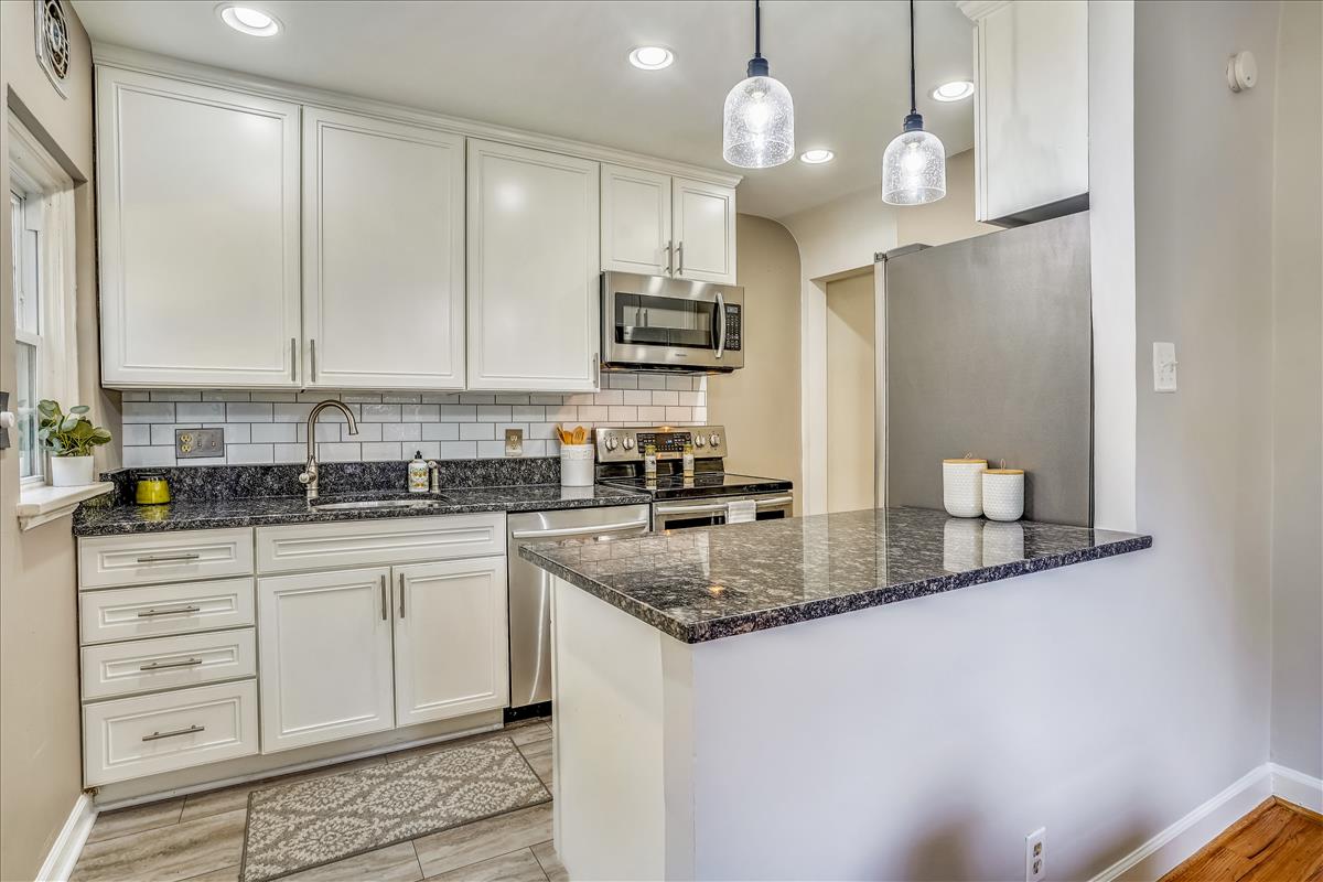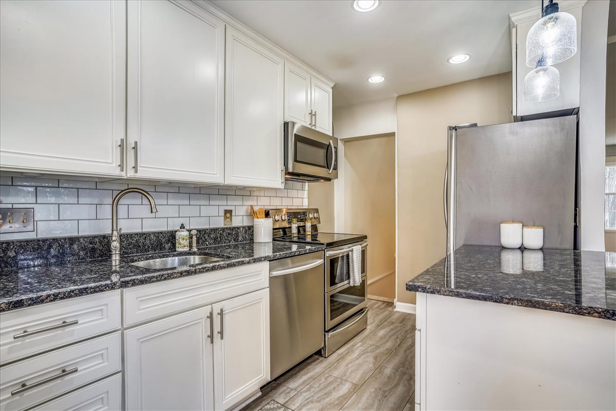 Stunning 2 bedroom, 2 bathroom Clarendon I model home nestled in Fairlington Meadows! The light-filled living room features recessed lighting, gleaming hardwood floors, updated windows, & fresh paint throughout. The remodeled kitchen is accented with white cabinetry with under-cabinet lighting & modern hardware, granite countertops & subway tile backsplash, & stainless steel appliances (including a double oven!) A separate dining area & access to the spacious rear patio with brand new fencing completes this level. The upper living level features two bedrooms with custom closet build-outs & an updated full bathroom with new flooring, a vanity with granite countertops, & plenty of storage. The lower living level is accented with recessed lighting & wood flooring. The bonus room is perfect for guests & features ensuite access to the remodeled bathroom with new flooring, updated vanity, & glass-enclosed shower. The laundry nook, with a full-sized washer/dryer & overhead cabinets, completes this level. Floored attic offers lots of extra storage space. Assigned parking space located RIGHT in front of home. Amazing location that backs up to a walking trail that leads to two beautiful green spaces and a tennis court. Fairlington Meadows is a beautifully landscaped community with a pool, tennis courts, and walking paths. Neighborhood attractions include the Fairlington Community Center, the farmers market, & a state-of-the-art playground! Great location near Bradlee Shopping Center, Shirlington Village, the new West Alex development, Del Ray, Old Town, & MORE!
