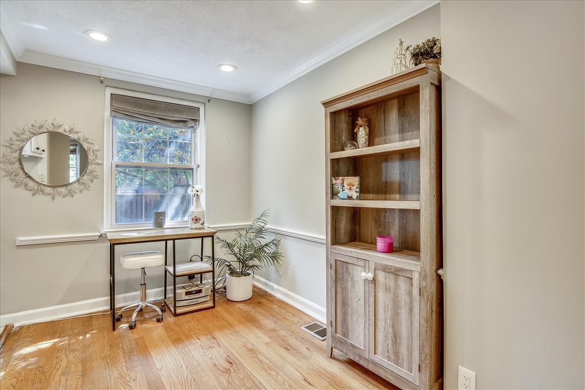 Lovely Edgewood model nestled in Fairlington Arbor! This 1 bedroom, 2 bathroom home features updates GALORE including designer paint, newer windows, renovated bathrooms, & MORE! The living room is accented with recessed lighting & crown molding. The open chef’s kitchen WOWs with granite countertops, custom ivory cabinetry, mosaic tile backsplash, & tile flooring! The master retreat easily fits a king & features a custom built-in wardrobe in the bonus nook + 2 additional closets. The upper bathroom features a tiled shower, an updated vanity, & tile flooring. The lower living level is a great space for recreation & has a built-in bookcase for additional storage! The bonus room, commonly used for guests, features en-suite access to an updated full bathroom. The laundry nook, with a full sized washer & dryer completes this level. The serene rear patio is great for summer entertaining! Fairlington Arbor amenities include easy access to an outdoor pool, tot lot, & tennis court! Great location near the Fairlington Farmer’s Market, the Fairlington Community Center, & the state of the art Fairlington Park.