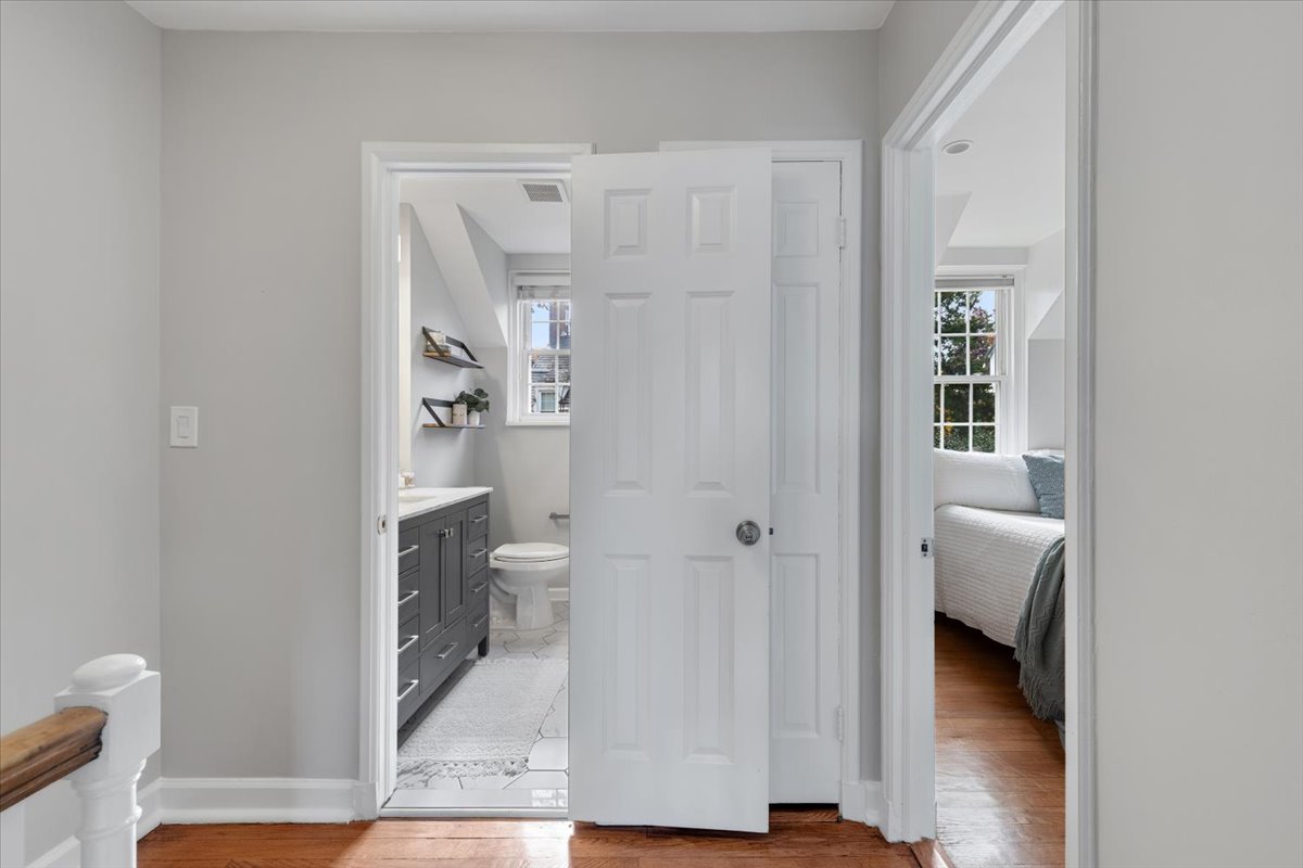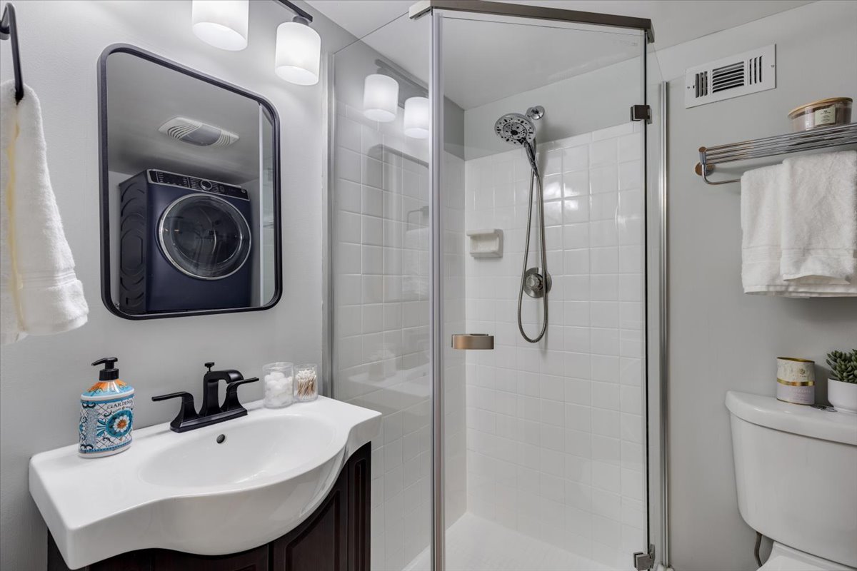 The lower level features updated LVP flooring & fresh paint throughout the spacious recreation room & bonus room – commonly used for guests or a home office! The full bathroom is accented with vanity, corner shower, & laundry nook with newer full-sized GE washer & dryer (2023) + shelves for storage. Other home features include a new water heater (2024), smart light switches & door lock, a Nest thermostat, a floored attic for extra storage, & one assigned parking space (#389). Fairlington Arbor is a beautifully landscaped community with a pool, tennis courts, and walking paths. Neighborhood attractions include the Fairlington Community Center, farmers market, & state-of-the-art playground! Great location near I-395, the shops & restaurants at The Village at Shirlington, West Alex, Del Ray, Old Town, & MORE!
