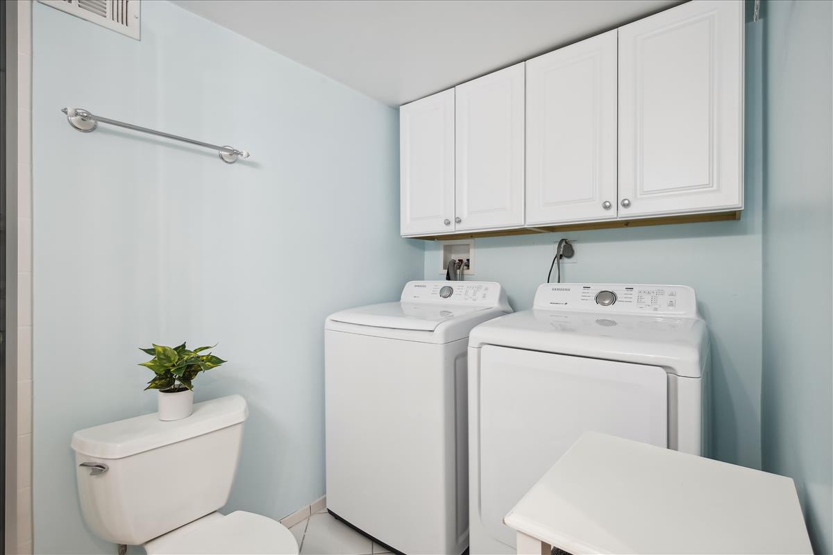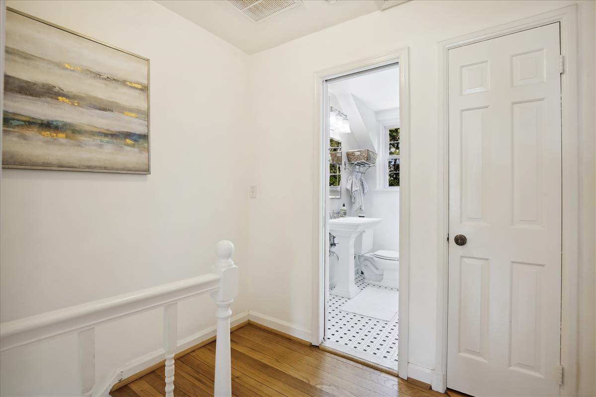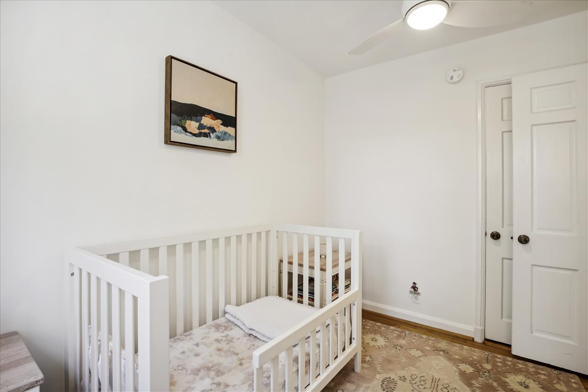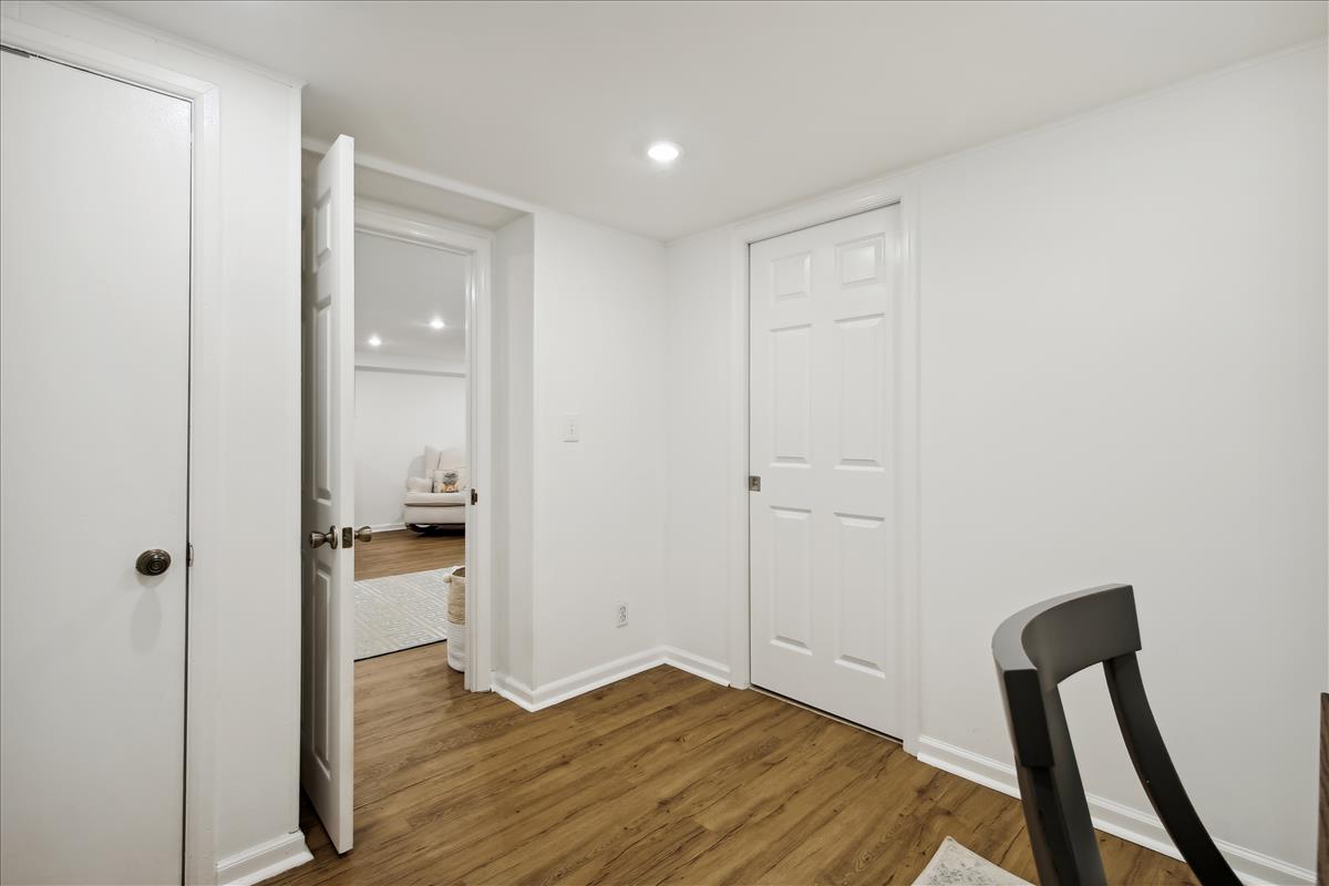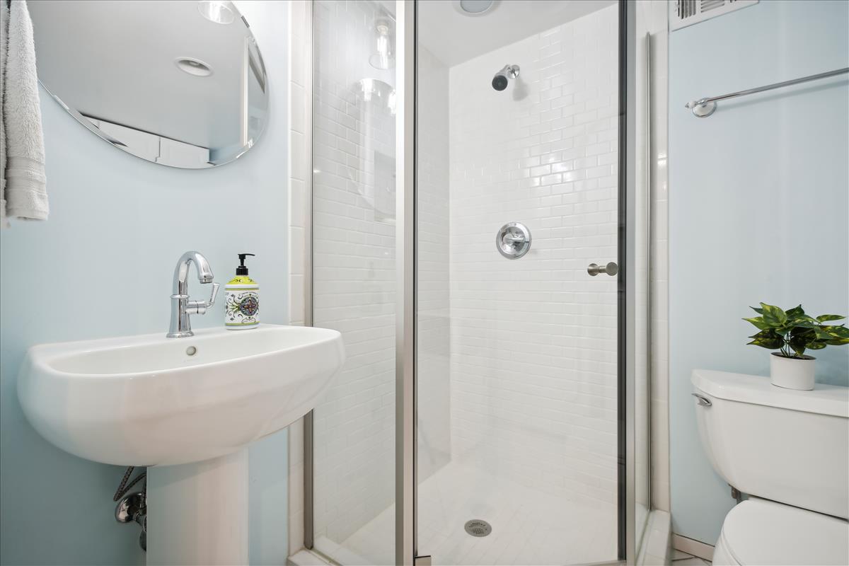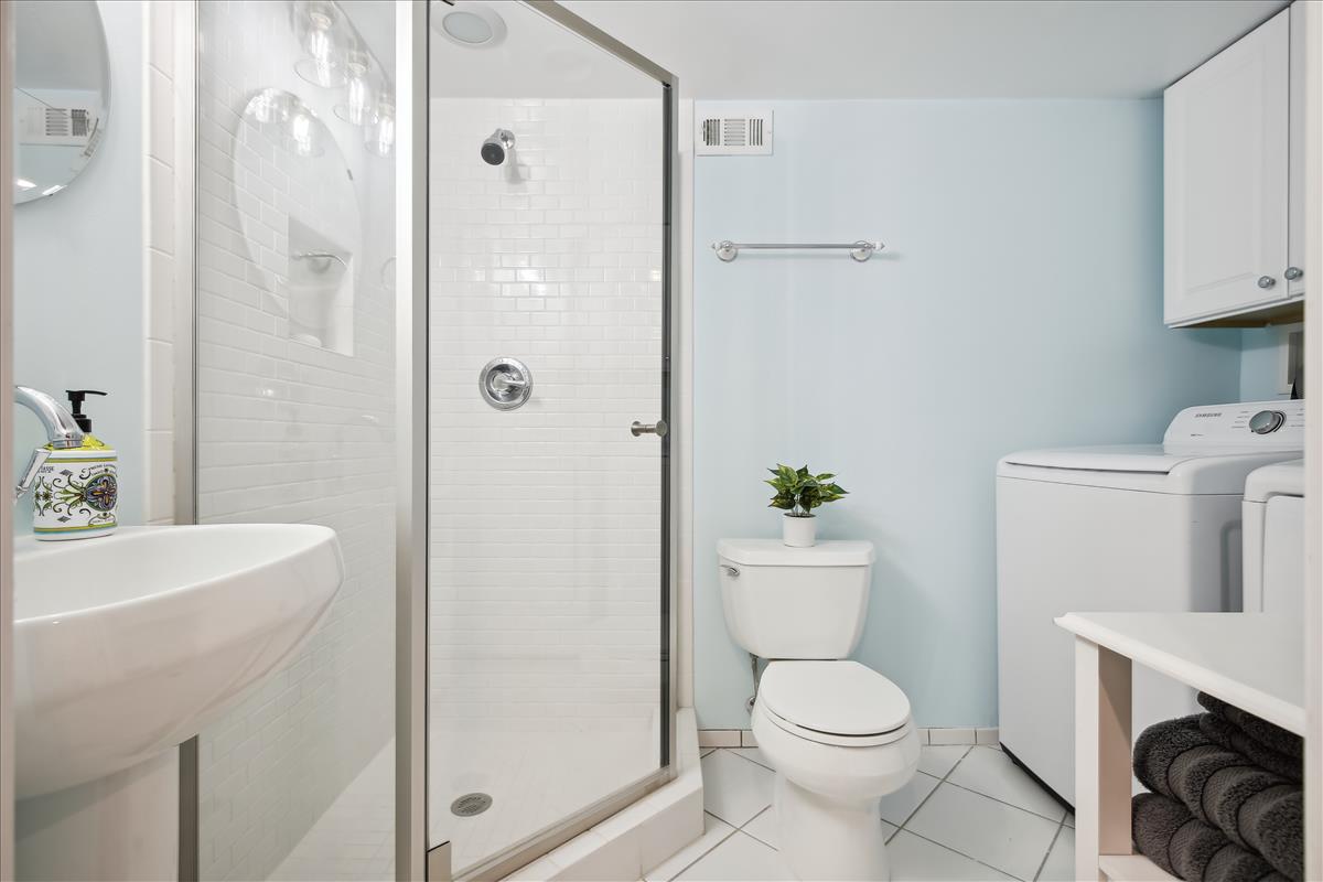 The light-filled main level features gleaming hardwood floors, crown molding & white paint throughout. The updated kitchen is accented with white cabinetry, granite countertops, stainless steel appliances (2017), subway tile backsplash, & open shelving for extra storage! The spacious separate dining area overlooks the private & serene back patio with updated bluestone pavers. The upper level features a spacious primary bedroom with a ceiling fan & two closets (one with new closet organizers). The second bedroom also includes a ceiling fan & a closet with new organizers. A full bathroom with pocket door entry, black & white floor tile, a pedestal sink, & a sparkling white tiled shower completes this level. The lower level features upgraded LVP flooring & recessed lighting throughout the large recreation room & bonus room, commonly used for guests or as a home office. The updated bathroom with pedestal sink, updated glass-enclosed corner shower, & laundry nook with full-sized washer & dryer (2017) + additional overhead storage completes this level. Other home features include a floored attic for extra storage space & one assigned parking space (#137).