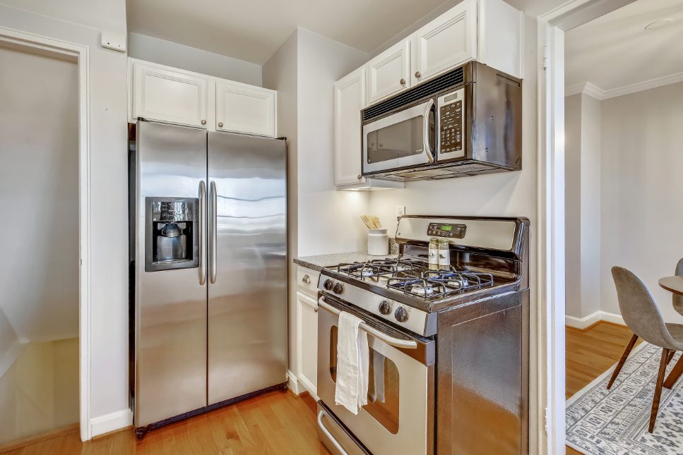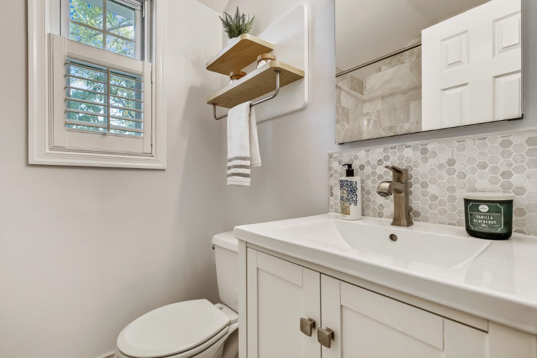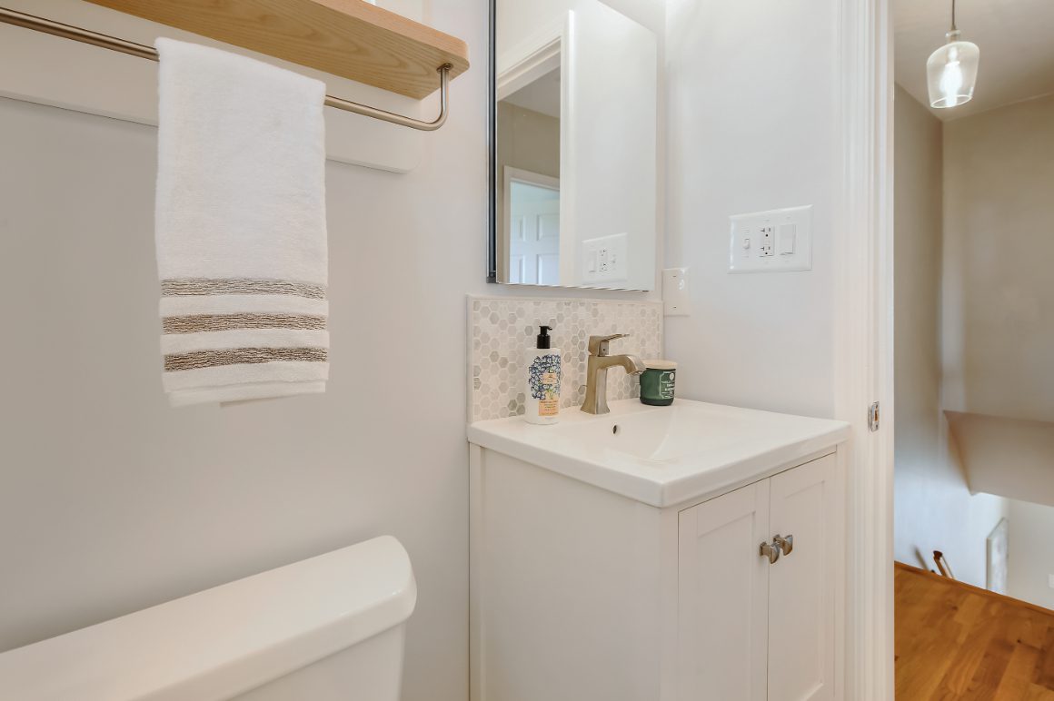 The upper level features two spacious bedrooms, both with hardwood flooring & large, custom closets. The second bedroom boasts an amazing view of the Washington Monument! The upstairs bathroom has been beautifully renovated and is accented with new vanity, top-of-the-line Carrera marble tiling, & luxe fixtures. A floored attic with pull-down stairs that offers tons of additional storage completes this level.