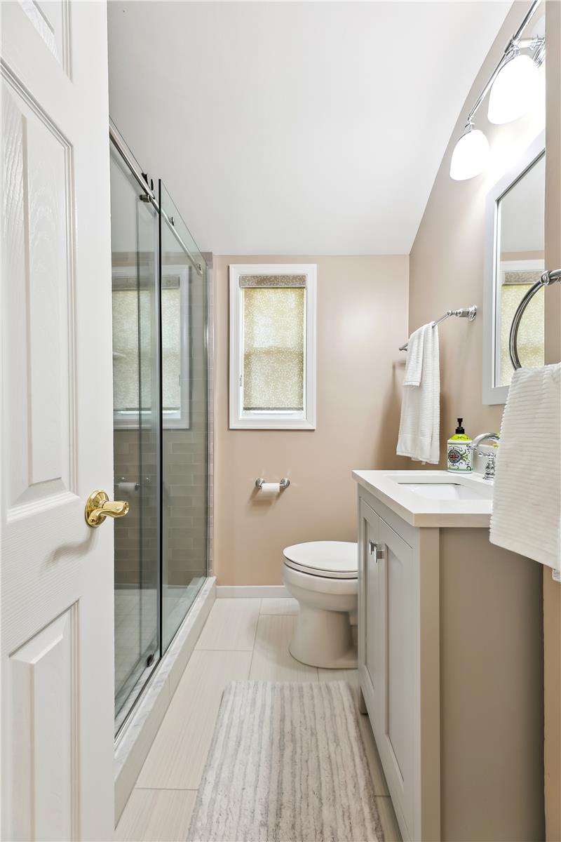 The upper level features two bright & spacious bedrooms with windows on two sides, overhead lighting, & large closets with French door access. A full renovated bathroom with oversized tile flooring, a modern stone-stopped gray vanity, a contemporary light fixture, & a sparkling gray subway-tiled shower with sliding glass doors & corner shelves completes this level. This home also includes a HUGE floored attic with tons of storage space and its own private side entrance that overlooks a beautiful grassy common area. Fairlington Towne is a prime location, close to I-395, the shops & restaurants at Shirlington Village, the new West Alex development, Del Ray, Old Town, & MORE!