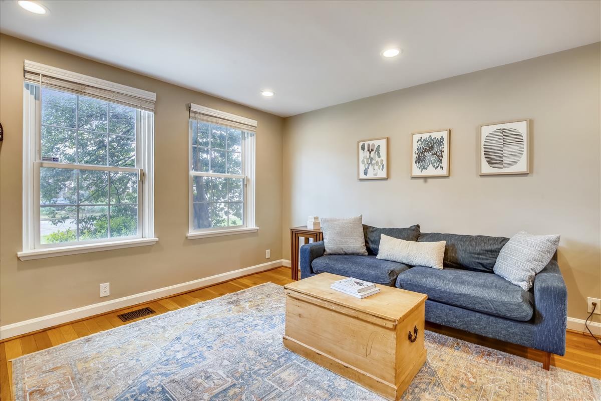 Gorgeous 2 bedroom, 2 bathroom Clarendon I townhome in Fairlington Green! The light-filled main living level features gleaming hardwood floors, recessed lighting, new blinds, & neutral paint throughout. The beautifully renovated open kitchen is accented with upgraded white cabinetry & countertops, NEW stainless steel appliances (2021), ample pantry space, & an island. The spacious separate dining area is large enough to fit a full-sized kitchen table and overlooks the private & serene back patio with newly added stamped concrete & stone steps! The upper level features two bedrooms and a full bathroom with a granite-topped gray vanity, updated tile flooring, & a sparkling white tiled shower. The spacious primary bedroom includes two large closets (one with built-out storage & lighting) and updated windows. The lower level features new carpeting on the stairs, brand new wood flooring, high ceilings with overhead lighting, & fresh paint throughout. The recreation room is great to use as a second living space and includes a built-in storage cabinet & a utility closet. The bonus room, commonly used for guests or home office, includes tons of storage space & features its own ensuite bathroom with tile flooring, vanity, & glass-enclosed subway tiled shower. The laundry nook with full-sized front loading washer & dryer + overhead cabinetry completes this home. Other home features include a large floored attic for additional storage, NEW HVAC (2021), & NEW water heater (2021)! Ample parking on the street out front or in the parking lot behind the home. Community amenities include a pool, tennis courts, tot lots, walking paths, & MORE! Great location directly across the street from the state-of-the-art playground and seasonal Fairlington Farmers Market, Bradlee Shopping Center, Shirlington Village, & Old Town!