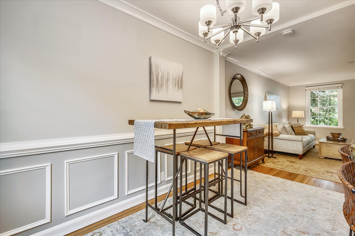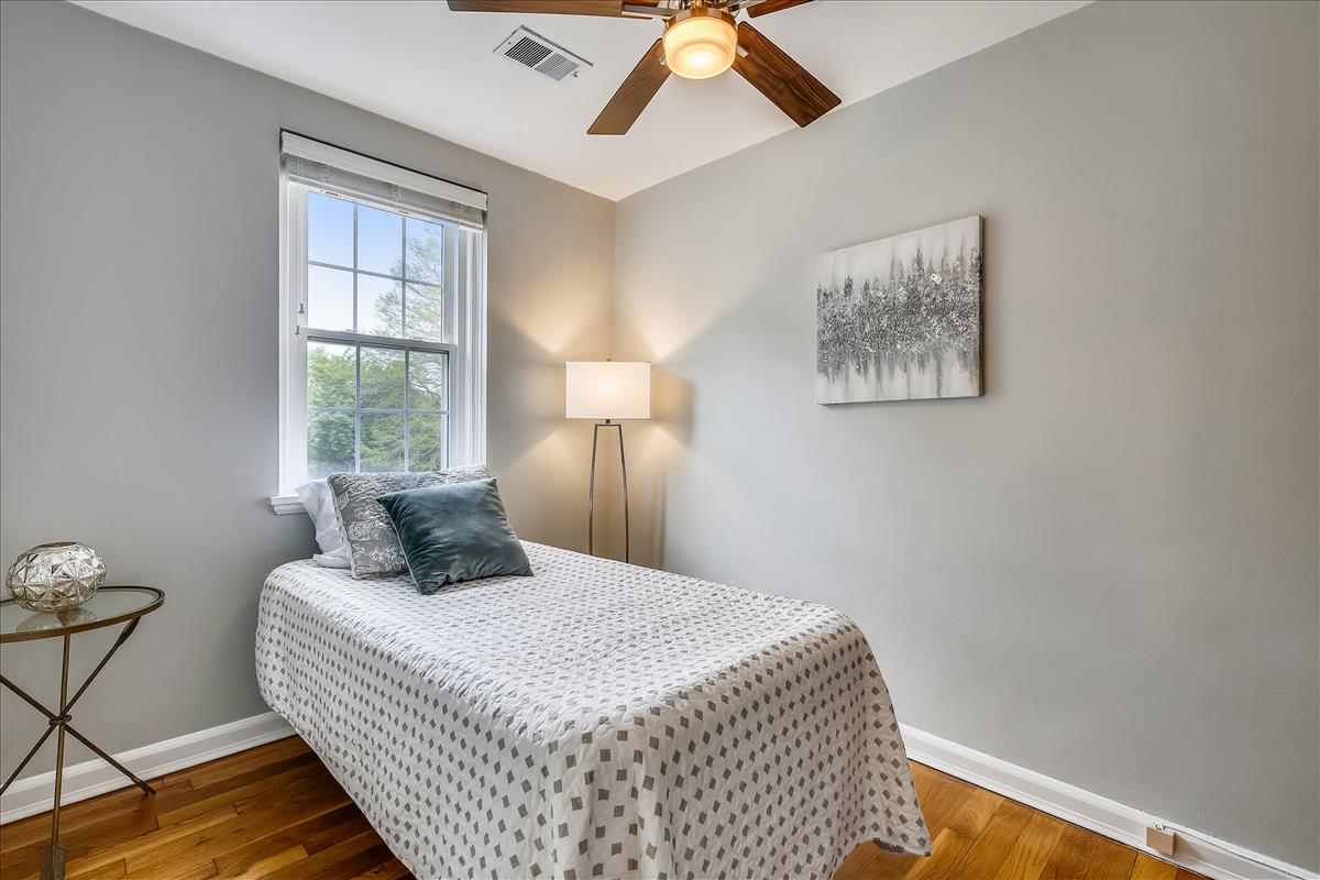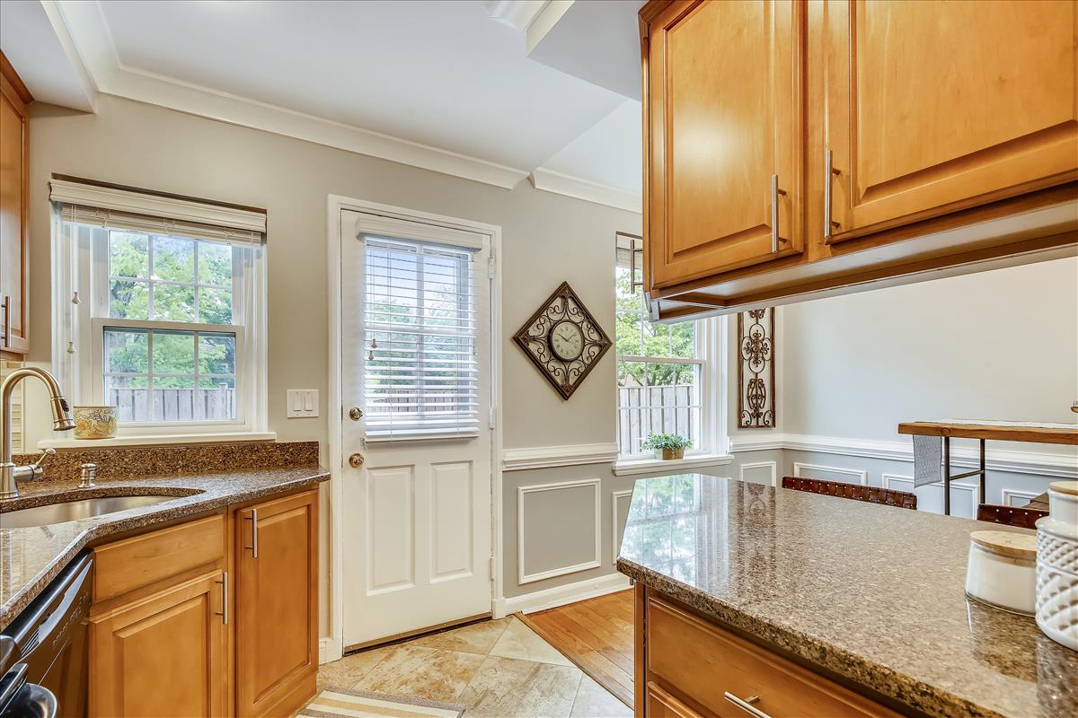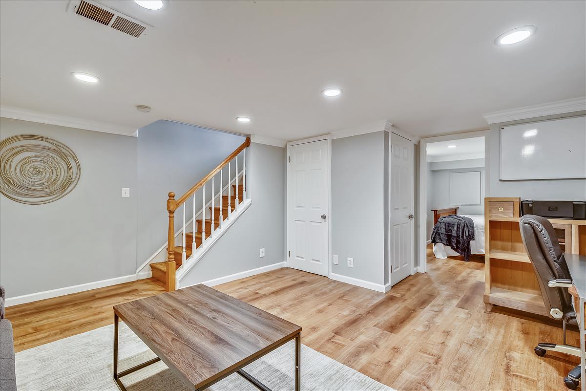 Beautiful 2 bedroom, 2 bathroom Clarendon I townhome in Fairlington Green! This light-filled home features hardwood flooring, crown molding, & neutral paint throughout. The partially open kitchen is accented with updated cabinetry, granite countertops, a peninsula with bar seating, modern backsplash, & recessed lighting! The separate dining area, with chair rail detailing, overlooks the upgraded private & serene flagstone patio. The upper level features a spacious primary bedroom with two large closets and a ceiling fan with overhead lighting. A second bedroom, and a full bathroom with a granite-topped vanity, contemporary finishes, a storage cabinet, & a tiled shower, complete this level. The lower level features upgraded flooring, crown molding, & recessed lighting throughout. The recreation room is great to use as a second living space. The bonus room, commonly used for guests or a home office, features an ensuite bathroom with a white vanity, a glass-enclosed shower, and a laundry nook with a newer full-sized washer & dryer (2020) and overhead cabinets for extra storage space. Other home features include a large attic with a dormer window (perfect opportunity for expansion!), updated windows throughout, & a newer air handler (2020). Ample parking on the street out front or in the parking lot behind the home. Community amenities include a pool, tennis courts, tot lots, walking paths, & MORE! Great location directly across the street from the state-of-the-art playground and seasonal Fairlington Farmers Market, Shirlington Village, & Old Town!