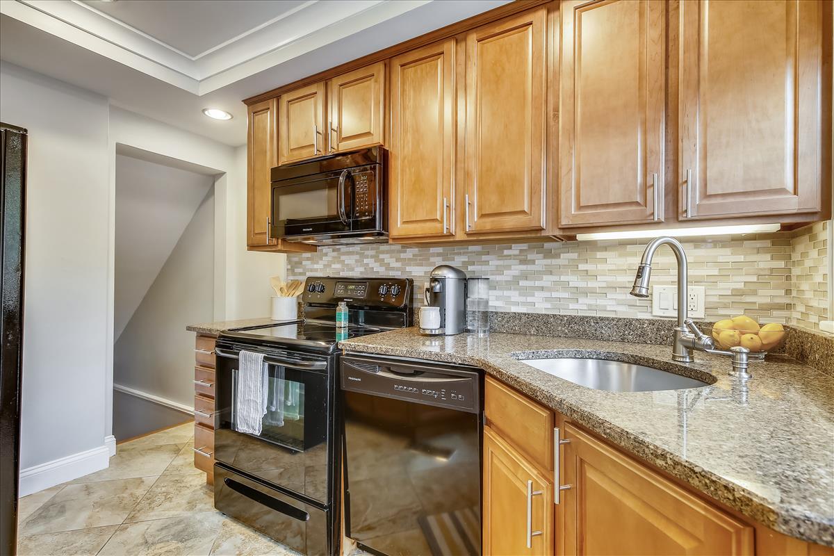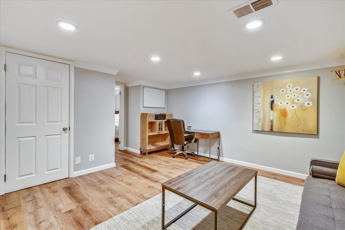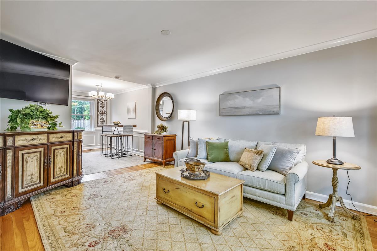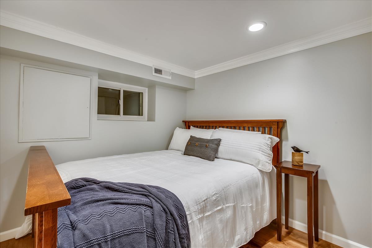 Beautiful 2 bedroom, 2 bathroom Clarendon I townhome in Fairlington Green! This light-filled home features hardwood flooring, crown molding, & neutral paint throughout. The partially open kitchen is accented with updated cabinetry, granite countertops, a peninsula with bar seating, modern backsplash, & recessed lighting! The separate dining area, with chair rail detailing, overlooks the upgraded private & serene flagstone patio. The upper level features a spacious primary bedroom with two large closets and a ceiling fan with overhead lighting. A second bedroom, and a full bathroom with a granite-topped vanity, contemporary finishes, a storage cabinet, & a tiled shower, complete this level. The lower level features upgraded flooring, crown molding, & recessed lighting throughout. The recreation room is great to use as a second living space. The bonus room, commonly used for guests or a home office, features an ensuite bathroom with a white vanity, a glass-enclosed shower, and a laundry nook with a newer full-sized washer & dryer (2020) and overhead cabinets for extra storage space. Other home features include a large attic with a dormer window (perfect opportunity for expansion!), updated windows throughout, & a newer air handler (2020). Ample parking on the street out front or in the parking lot behind the home. Community amenities include a pool, tennis courts, tot lots, walking paths, & MORE! Great location directly across the street from the state-of-the-art playground and seasonal Fairlington Farmers Market, Shirlington Village, & Old Town!