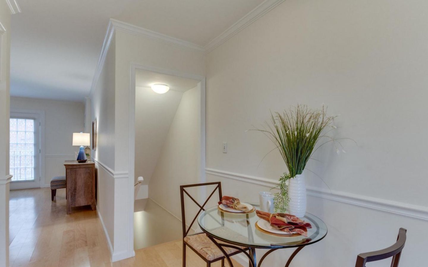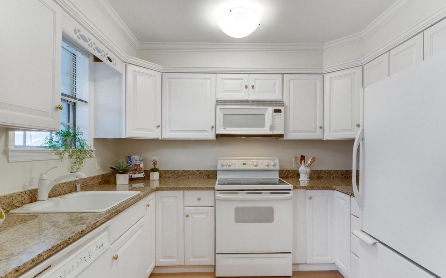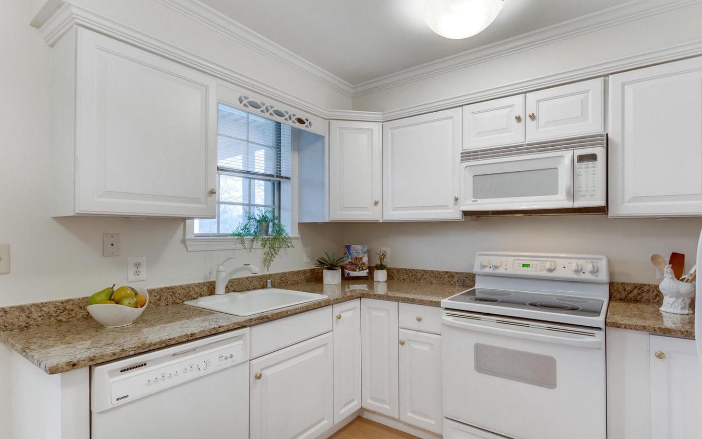 Beautiful 3-bedroom, 2-bathroom home for rent in The Arlington! The main living level boasts gleaming hardwood floors, crown molding, and neutral paint throughout. The bright and inviting living room features French doors that open to a Juliet-style railing, letting in plenty of fresh air and natural light. The kitchen is accented with white cabinetry, granite countertops, and a separate dining area. A back door off the kitchen leads to a private, serene balcony overlooking the community pool and tennis courts – the perfect spot to unwind on a warm summer day. The spacious primary suite includes a ceiling fan and a generous walk-in closet/dressing area with a vanity, sink, mirror, and lighting. The full bathroom, accessible from both the bedroom and the main living area, features a vanity and a sparkling white tiled shower.