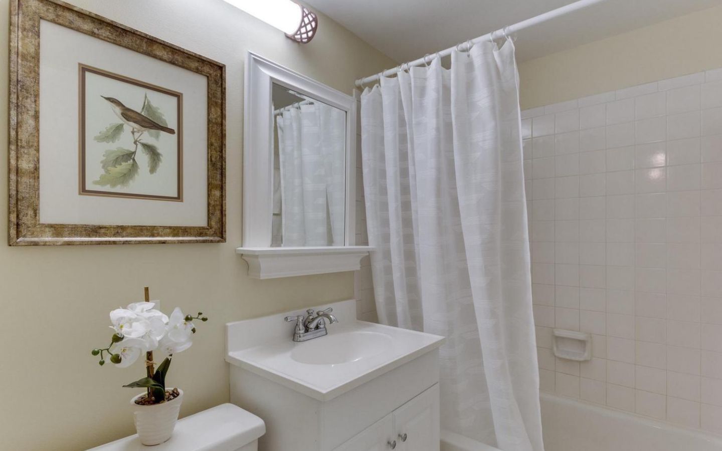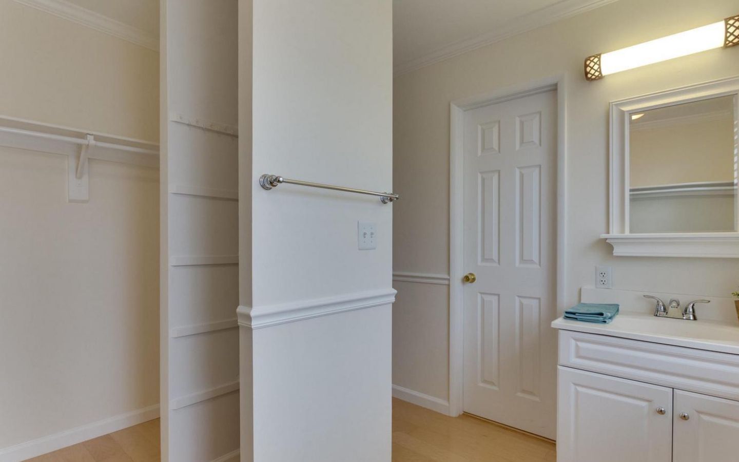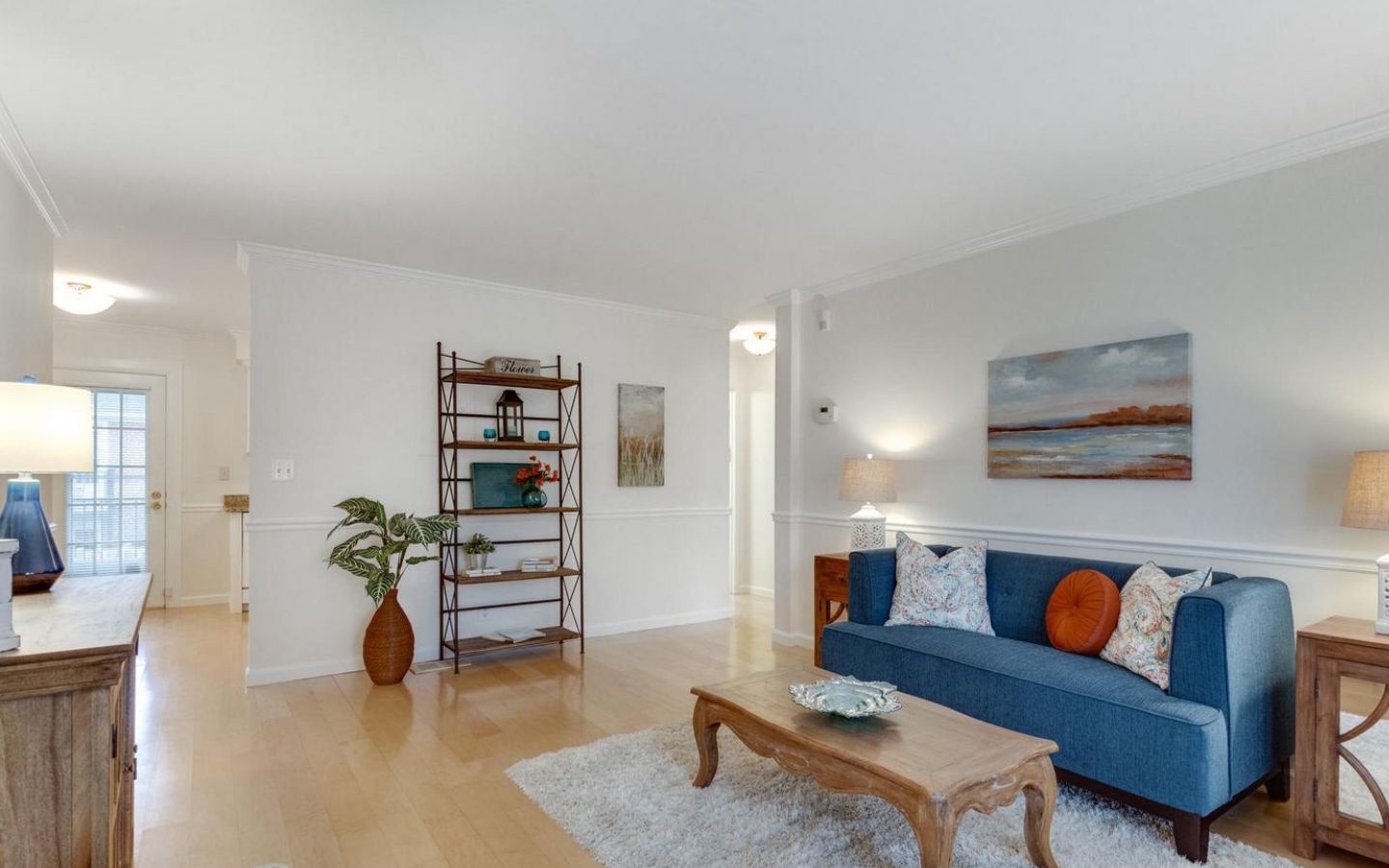 Beautiful 3-bedroom, 2-bathroom home for rent in The Arlington! The main living level boasts gleaming hardwood floors, crown molding, and neutral paint throughout. The bright and inviting living room features French doors that open to a Juliet-style railing, letting in plenty of fresh air and natural light. The kitchen is accented with white cabinetry, granite countertops, and a separate dining area. A back door off the kitchen leads to a private, serene balcony overlooking the community pool and tennis courts – the perfect spot to unwind on a warm summer day. The spacious primary suite includes a ceiling fan and a generous walk-in closet/dressing area with a vanity, sink, mirror, and lighting. The full bathroom, accessible from both the bedroom and the main living area, features a vanity and a sparkling white tiled shower.