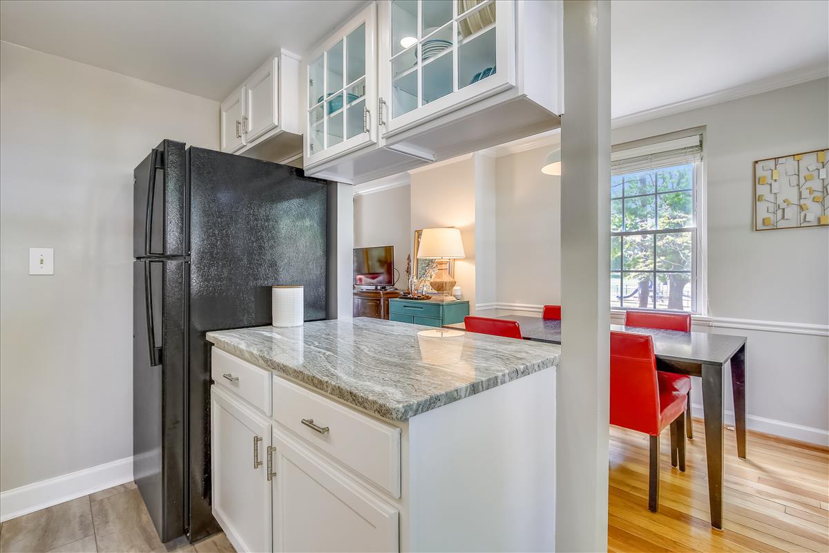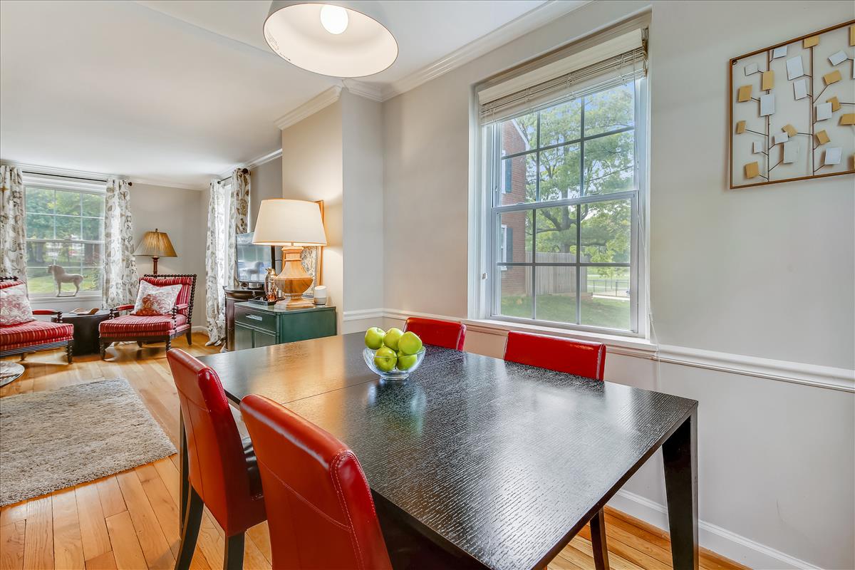 Gorgeous 2 bedroom, 2 bathroom Clarendon II model townhome in Fairlington Villages! This light-filled end unit boasts gleaming hardwood floors, crown molding, & fresh paint throughout. The updated kitchen is accented with brand new flooring, new granite countertops, white cabinetry, recessed lighting, newer garbage disposal (2020), & updated appliances (2017/18). The spacious separate dining area overlooks the private & serene newly-fenced back patio – great for relaxing or entertaining! The upper level features a linen closet & newly updated windows throughout. The light & bright primary bedroom is accented with windows on two sides, crown molding, & a custom closet system. The second bedroom also features windows on two sides & overlooks the beautiful Fairlington green space. The updated bathroom is accented with tile flooring, a stone-topped vanity with plenty of storage space, & a sparkling white tiled shower. The lower level is fully tiled with recessed lighting and includes a spacious recreation room and a bonus room with tons of built-in shelving and a full-sized washer (2018) & dryer. The beautifully updated bathroom boasts an oversized vanity, designer brass hardware, & custom-tiled glass-enclosed shower. Other home features include a brand new HVAC system (2022), a newer water heater (2018) & a HUGE floored attic with a window (perfect opportunity for expansion!) Community amenities include six pools, lighted tennis courts, tot lots, walking paths, & more! Great location near 1-395 and the shops & restaurants at Shirlington Village, Baileys Crossroads, & Bradlee Shopping Center!