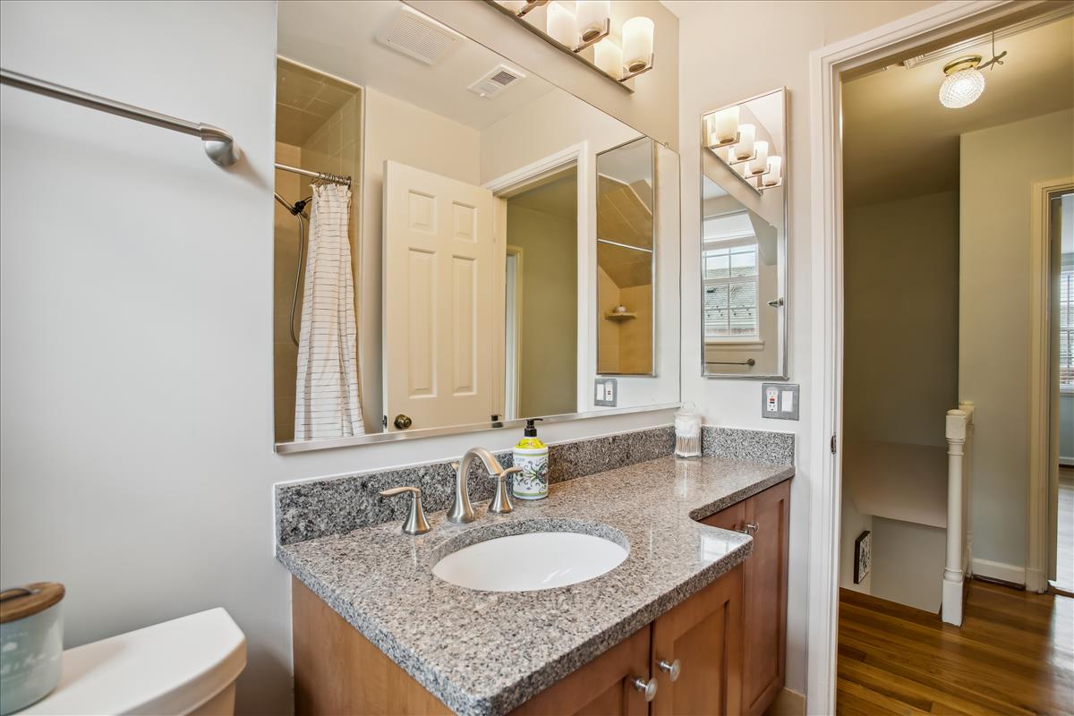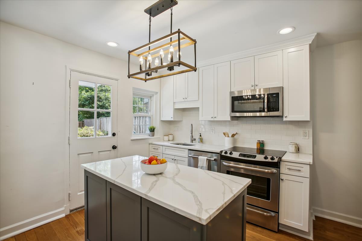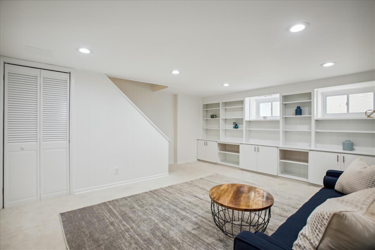 Beautiful 2 bedroom, 2 bathroom Clarendon I townhome in Fairlington Mews! The light-filled main level features gleaming hardwood floors & recessed lighting throughout. A dry bar with ample shelving & cabinet space separates the living room and dining area. The renovated open kitchen with heightened ceilings is accented with new two-toned soft-close cabinets, marble countertops, an island with an overhead light fixture, pantry space, & newer stainless steel appliances – refrigerator (2021), garbage disposal (2021), dishwasher, stove & microwave (2017-2019). A separate dining area, large enough to fit a full-sized dining room table and overlooking the private & serene back patio, completes this level. The upper level includes a spacious primary bedroom with a huge walk-in closet and a second closet, a second bedroom with a good-sized closet, and a bathroom with an oversized stone-topped vanity, large mirror, & a sparkling tiled shower. The lower level is accented with carpet & recessed lighting and features a recreation room with a full wall of built-ins that provide tons of storage & display space. A bonus room, commonly used for guests or as a home office, features an updated ensuite bathroom accented with a pedestal sink, glass-enclosed shower, & laundry nook with full-sized washer & dryer. Other home features include a new HVAC (2021), a floored attic for extra storage space, and one assigned parking space (#351). Community amenities include a pool, tennis courts, walking paths, tot lots, & MORE! Great location near I-395 and close to the shops & restaurants at Shirlington Village, Del Ray, & Old Town!
