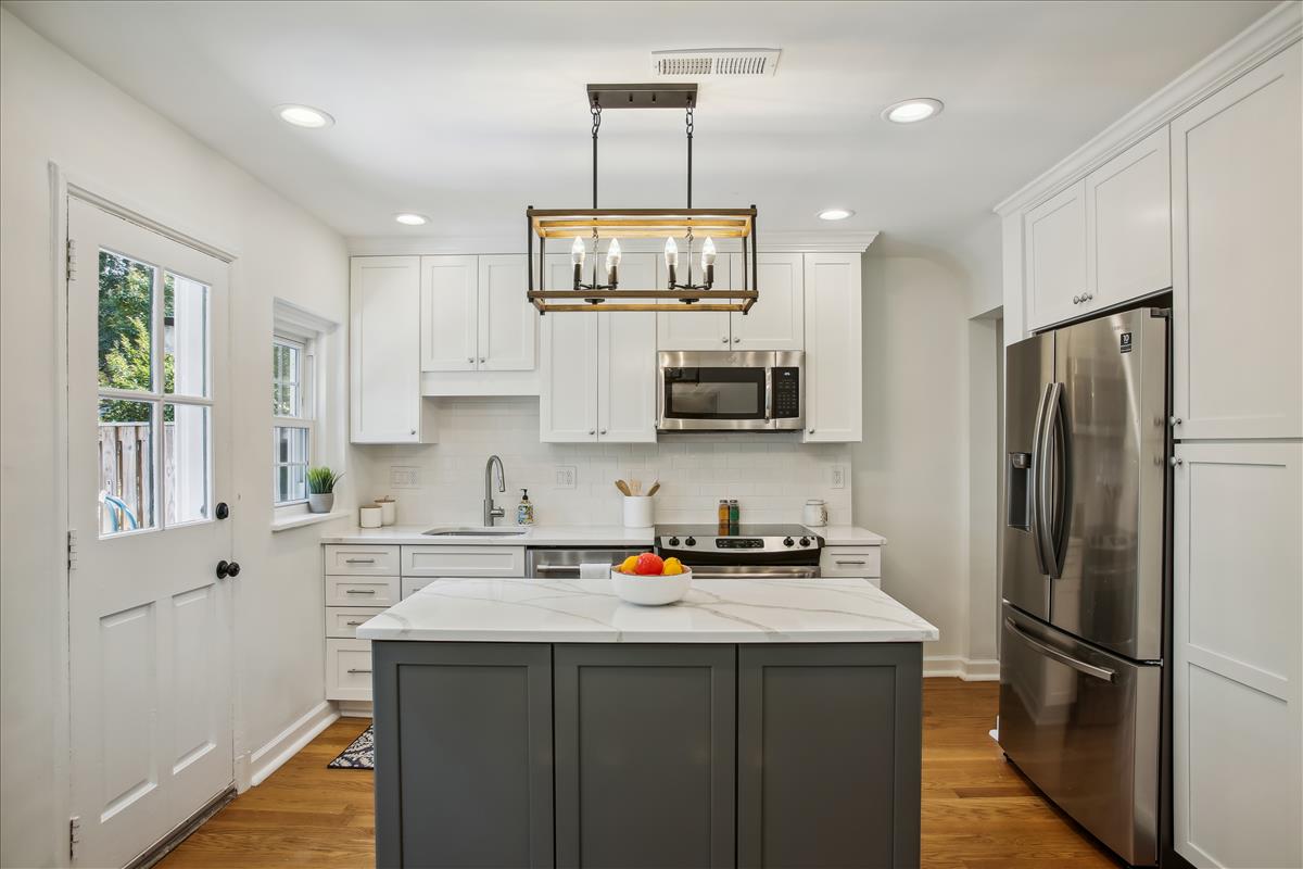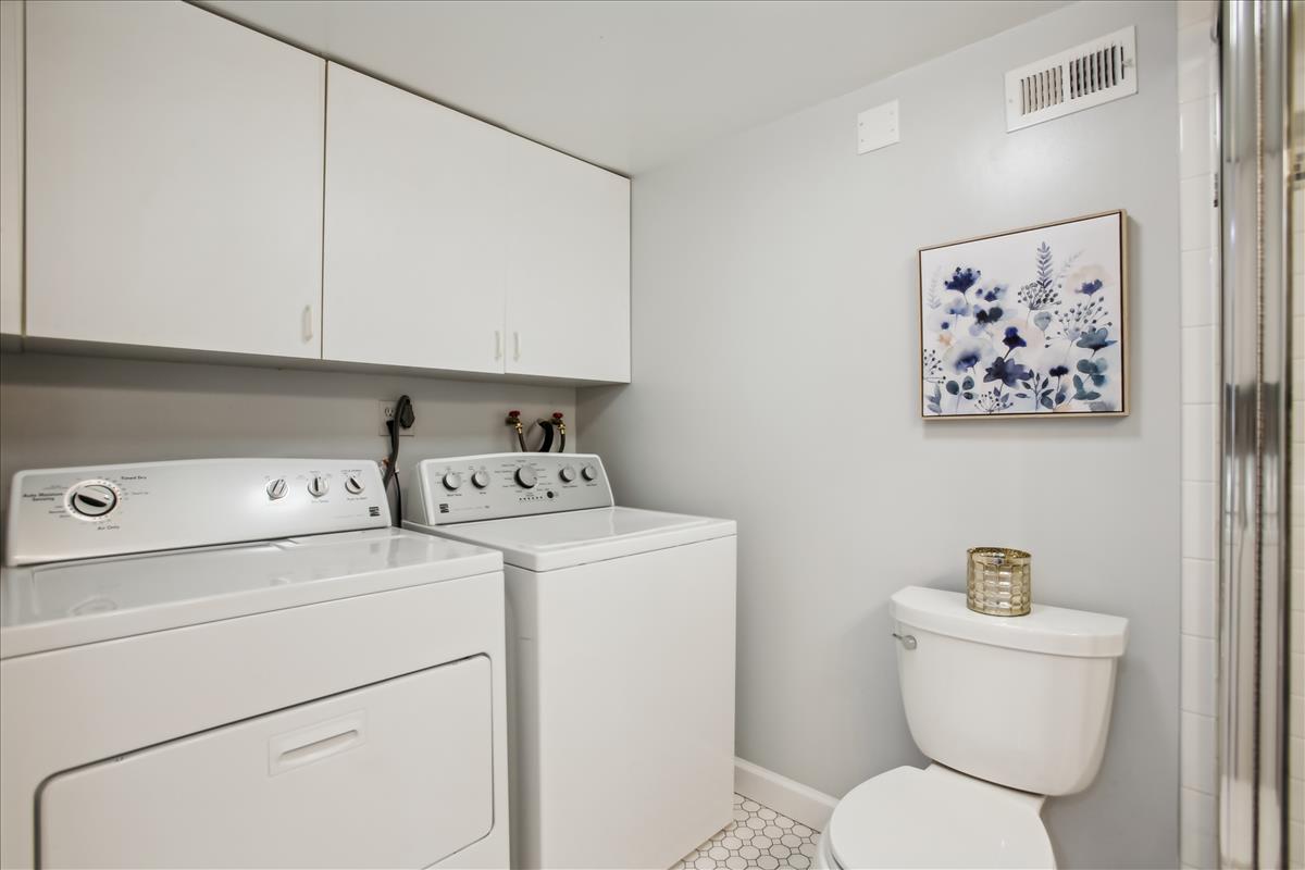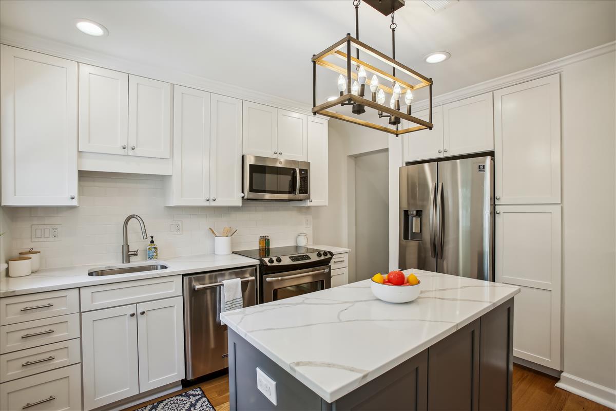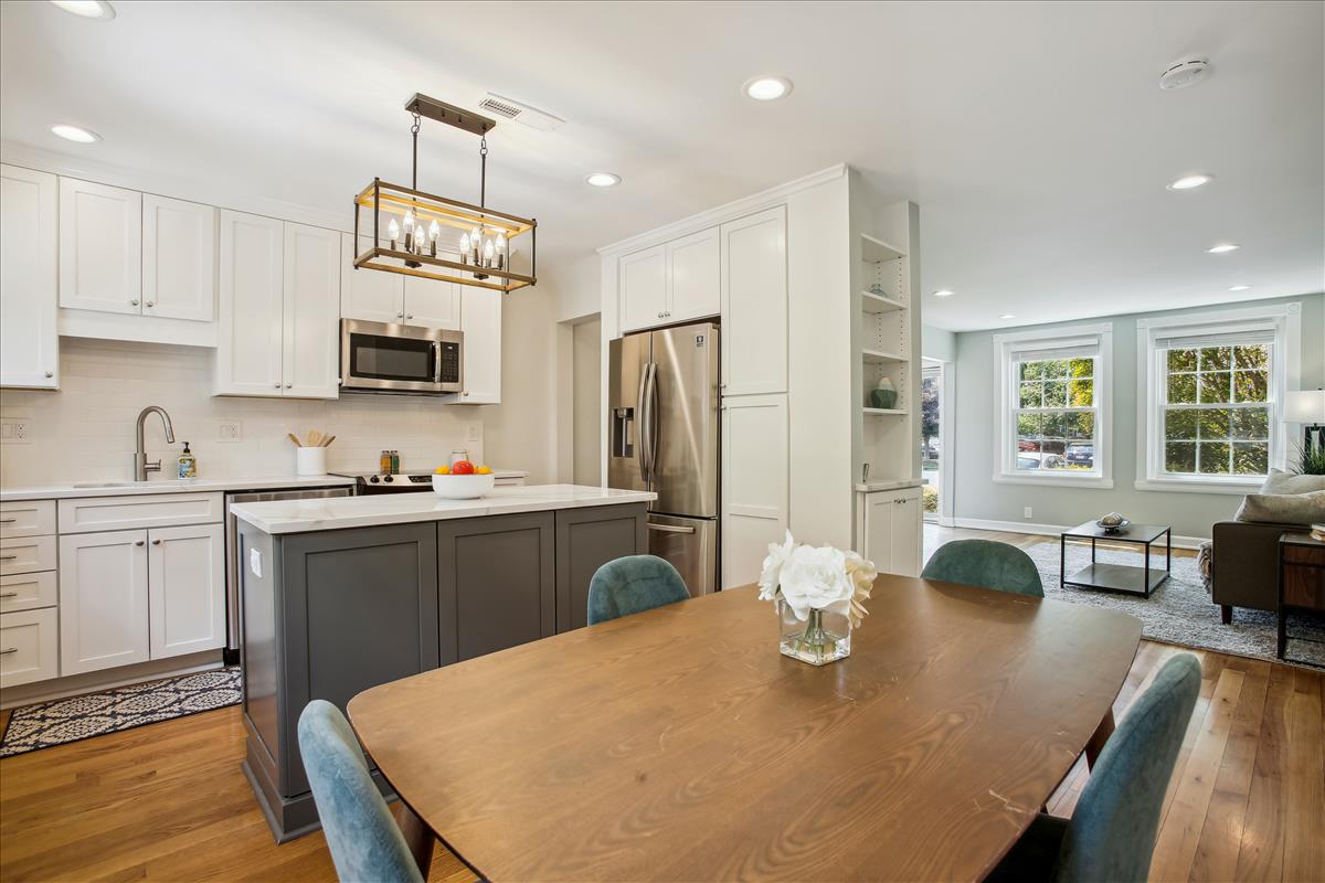 Beautiful 2 bedroom, 2 bathroom Clarendon I townhome in Fairlington Mews! The light-filled main level features gleaming hardwood floors & recessed lighting throughout. A dry bar with ample shelving & cabinet space separates the living room and dining area. The renovated open kitchen with heightened ceilings is accented with new two-toned soft-close cabinets, marble countertops, an island with an overhead light fixture, pantry space, & newer stainless steel appliances – refrigerator (2021), garbage disposal (2021), dishwasher, stove & microwave (2017-2019). A separate dining area, large enough to fit a full-sized dining room table and overlooking the private & serene back patio, completes this level. The upper level includes a spacious primary bedroom with a huge walk-in closet and a second closet, a second bedroom with a good-sized closet, and a bathroom with an oversized stone-topped vanity, large mirror, & a sparkling tiled shower. The lower level is accented with carpet & recessed lighting and features a recreation room with a full wall of built-ins that provide tons of storage & display space. A bonus room, commonly used for guests or as a home office, features an updated ensuite bathroom accented with a pedestal sink, glass-enclosed shower, & laundry nook with full-sized washer & dryer. Other home features include a new HVAC (2021), a floored attic for extra storage space, and one assigned parking space (#351). Community amenities include a pool, tennis courts, walking paths, tot lots, & MORE! Great location near I-395 and close to the shops & restaurants at Shirlington Village, Del Ray, & Old Town!