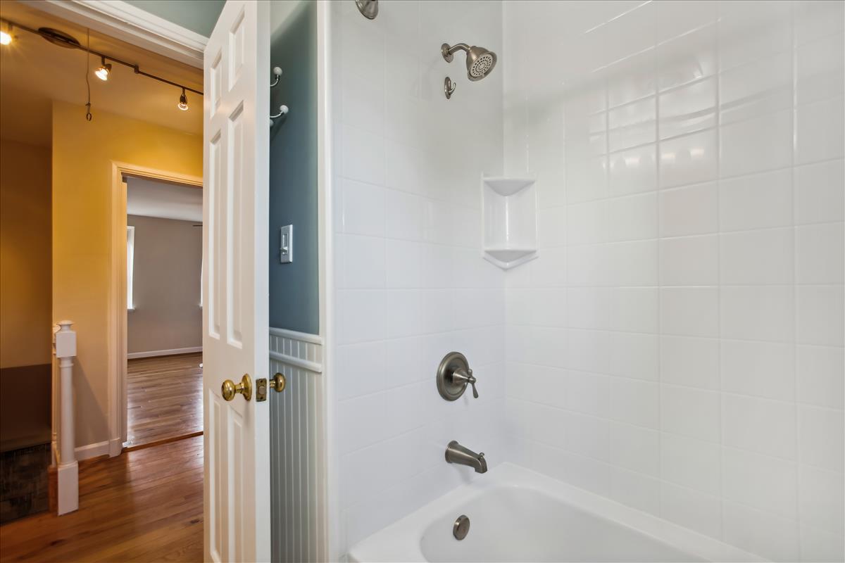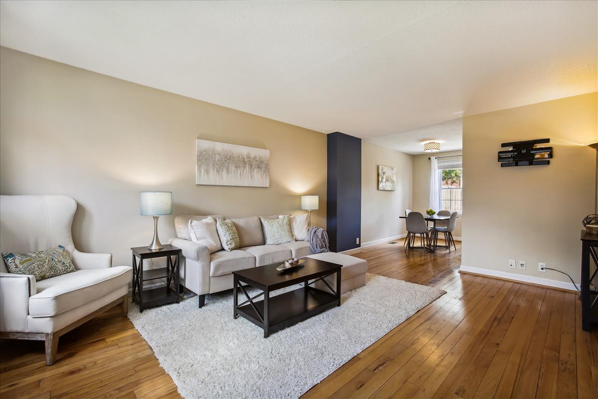 Lovely 2 bedroom, 2 bathroom Clarendon I townhome in Fairlington Mews! The light-filled main living level features gleaming hardwood floors & neutral paint throughout. The kitchen is accented with updated cabinetry, Silestone countertops, mosaic backsplash, tile flooring, a pass-through, & a tray ceiling with recessed lighting. The separate dining area with modern light fixture overlooks the private & serene back patio accented with flagstone pavers and a gorgeous green space beyond the fence. The upper level features a spacious primary bedroom with two closets (one walk-in), a second bedroom, and a full bathroom with updated tile flooring & an oversized vanity for extra storage space. The lower level has been freshly painted and features taller ceilings when compared to others in the neighborhood that are the same model. This level includes a spacious recreation room and bonus room, commonly used for guests or as a home office. The updated ensuite bathroom features tile flooring, a tiled corner shower, and a vanity. A laundry nook with a newer full-sized washer & dryer (2017) completes this home. Other features include a floored attic for extra storage & one assigned parking space (#175). Community amenities include a pool, tennis courts, tot lots, walking paths, & MORE! Great location near the Fairlington Farmers Market, the shops & restaurants at Shirlington Village, Del Ray, & Old Town!