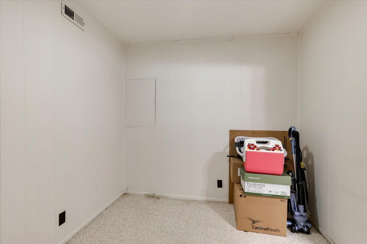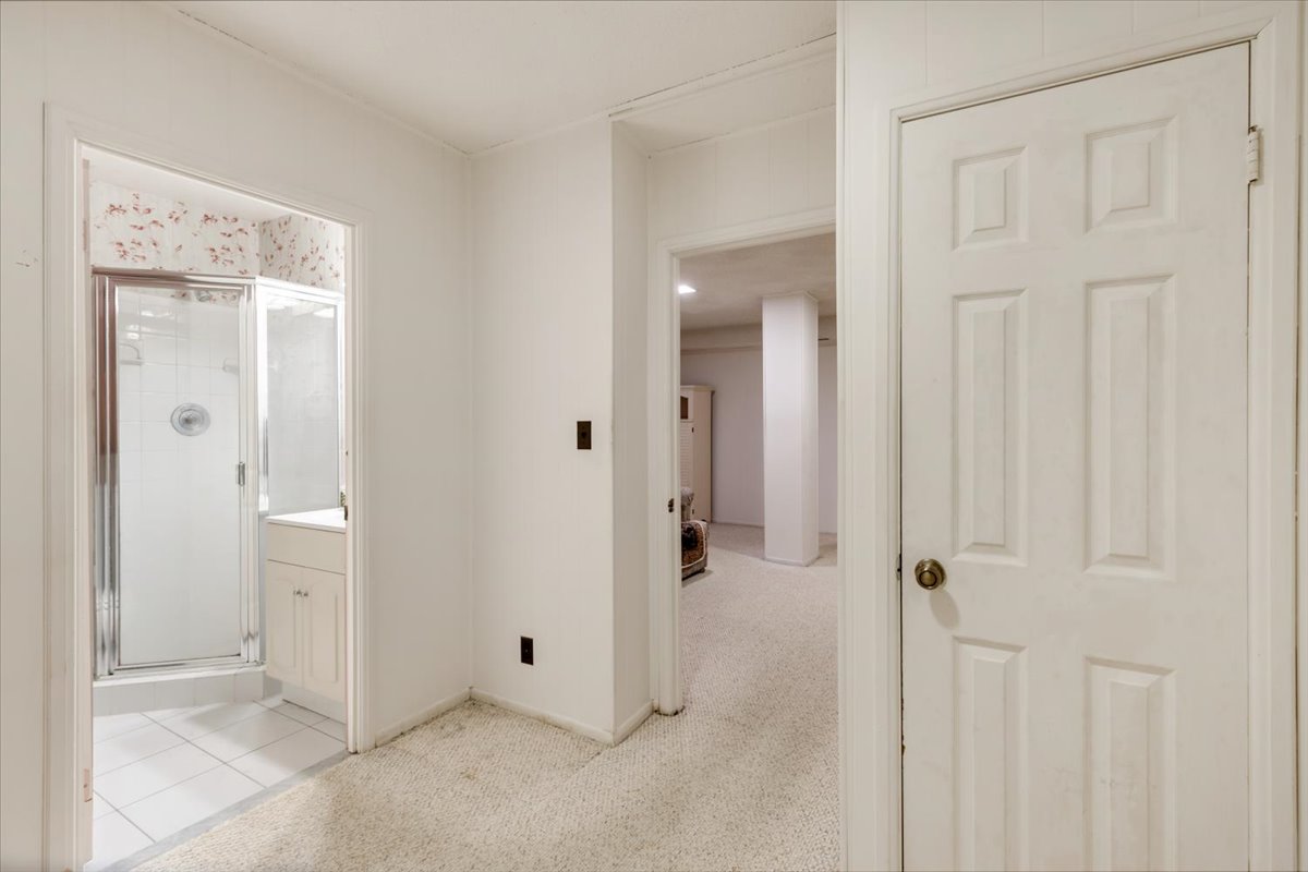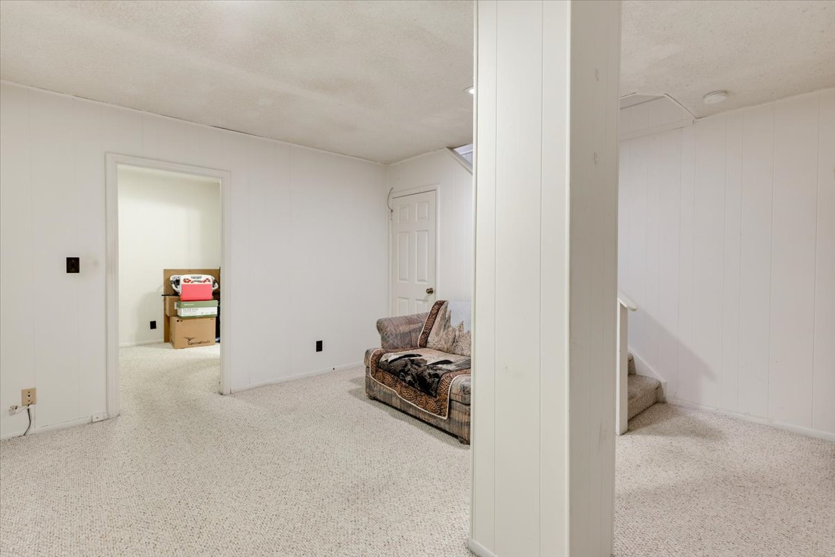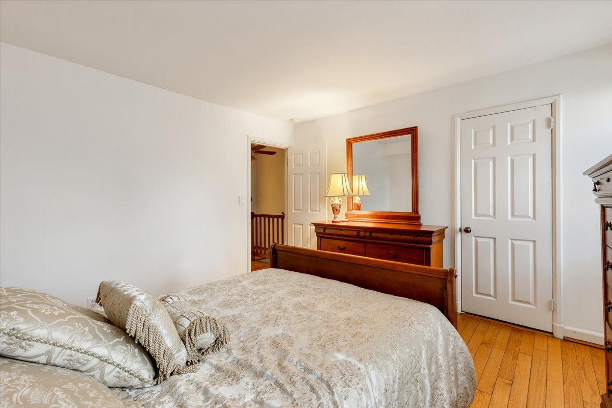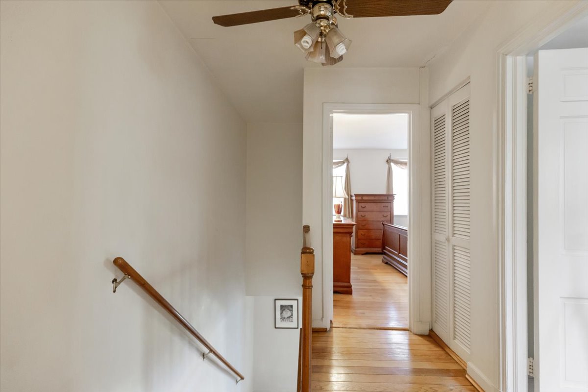 Upstairs, you’ll be greeted by well-maintained hardwood floors, a hallway ceiling fan with overhead light, and two bedrooms! The spacious primary bedroom features a walk-in closet with built-ins and the 2nd bedroom includes two windows and a good-sized closet. A full bathroom with tile flooring, vanity, & tiled shower complete this level. The lower level includes a generously sized recreation room with plush carpeting and a large window, a bonus room that works well as a guest space or home office, and a full bathroom with corner shower, vanity, & laundry nook with a full-sized washer & dryer + large window.