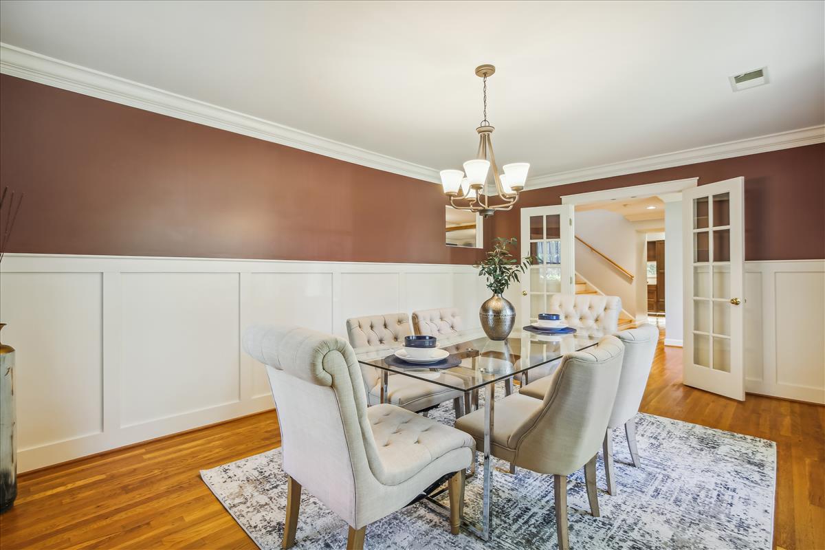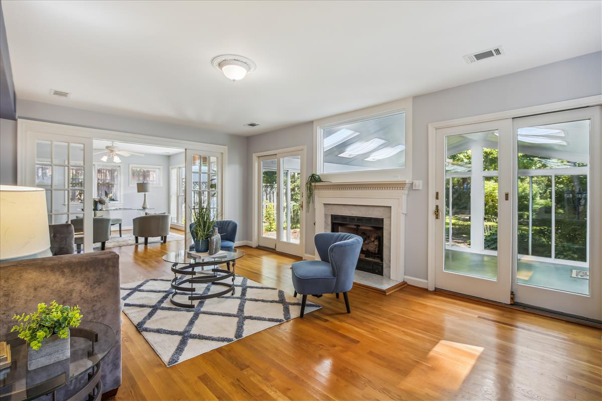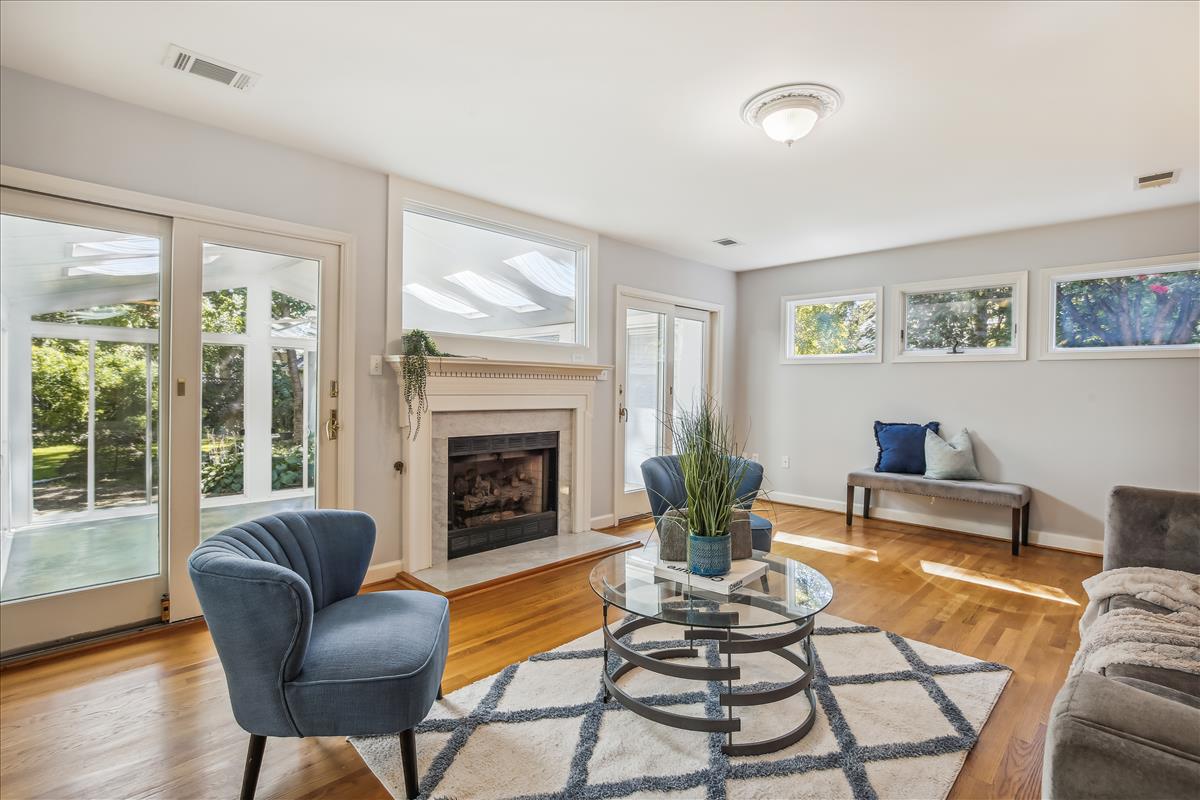 Gorgeous 5-bedroom, 3.5-bathroom single family home located in the heart of Falls Church City with a huge .3 acre lot! Home includes a recently updated kitchen (2018) with quartzite countertops and oversized peninsula, recessed lighting, soft close cabinetry, and new refrigerator (2022) with french doors and large pull-out freezer drawer. The kitchen has TONS of cabinet storage including a smart wraparound pull-out drawer with room for multiple small kitchen appliances. Off the kitchen is a mudroom with access to the driveway. The large dining room is great for entertaining – french door entry, lots of light, and designer half-wall wainscotting. The cozy living room with fireplace opens to a three-season sunroom with multiple skylights, floor-to-ceiling windows, sliding glass doors, and an outdoor fireplace! A door from this room leads to the expansive, four-car garage with additional attic space above for more storage. The garage sits at the end of the long driveway with room for even more vehicles. The main level of the home also includes a grand staircase, a second fireplace, 5th bedroom, a full bathroom and a powder room. The upper level of the home has 4 bedrooms including a massive primary suite with multiple skylights, separate rotunda-style sitting area, two large walk-in closets, and stairs leading to the private loft (currently used as a craft studio). The en suite bathroom was recently renovated (2018) with beautiful tile, quartzite stone, walk-in shower, free-standing tub, dual-sink vanity, smart storage, and numerous other luxury updates. One of the upper level bedrooms has access to a finished attic space that makes a fun hideaway or great additional storage space. The home is finished with a dual-zone HVAC system that keeps the nearly 4,000 square foot floor plan at just the right temperature. The exterior of this home is an absolute retreat – a huge .3 acre lot with lush surroundings, stunning greenspace, a pad for grilling, a stone riverbed feature, multiple edged garden spaces, and a separate area fenced off by wrought iron archway. Prime location is walkable to metro (20 minutes), bike path (5 minutes), tennis courts (10 minutes), and just steps to the park. Enjoy all that Falls Church has to offer!