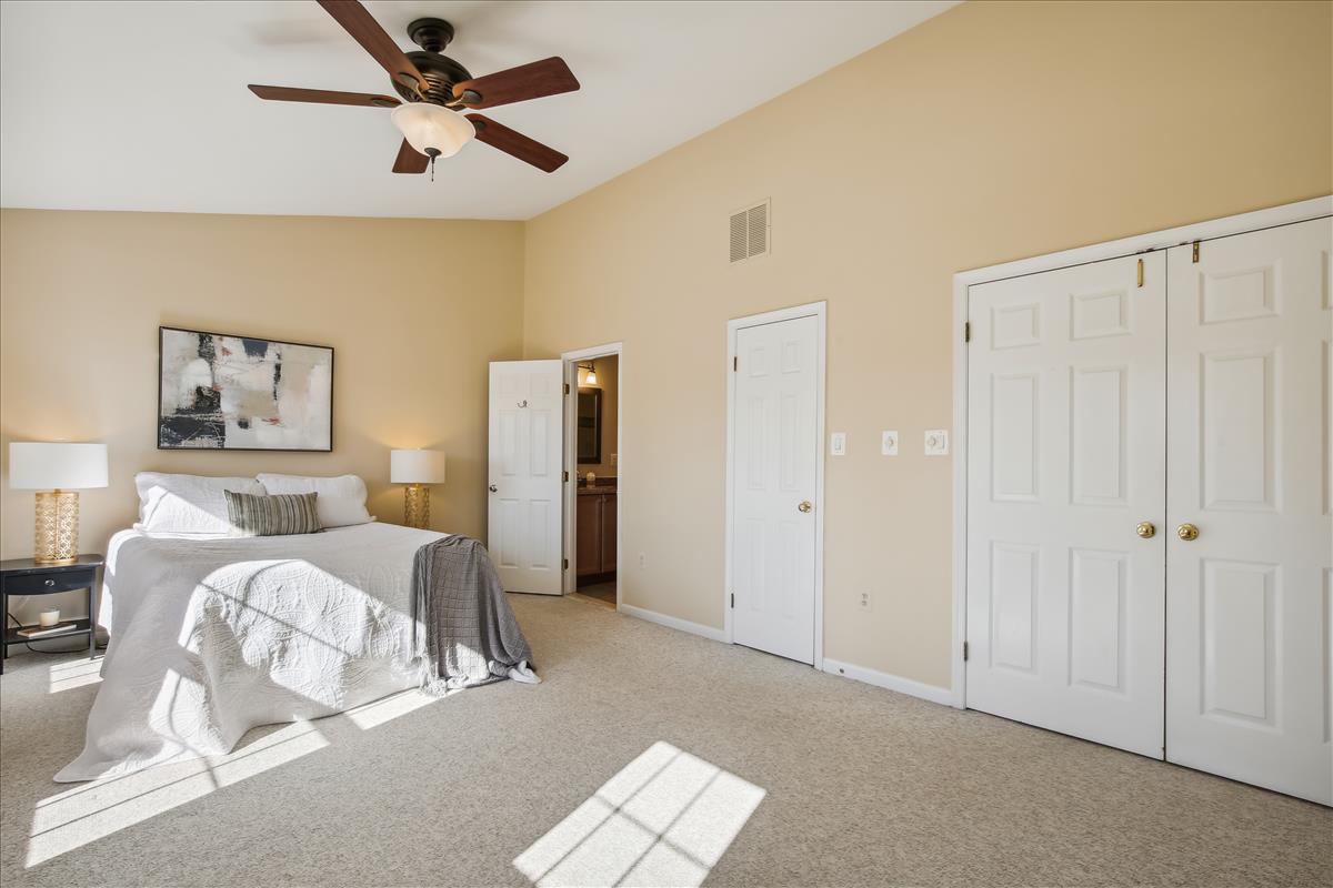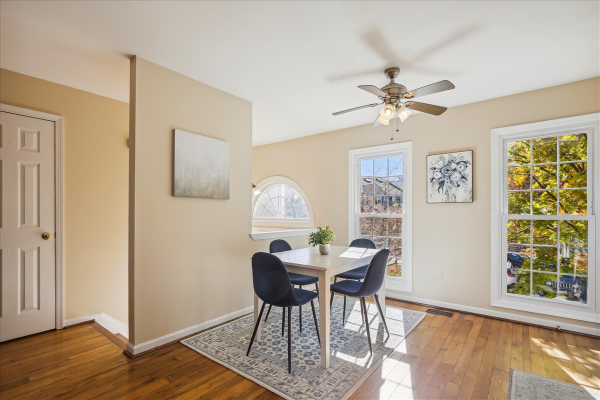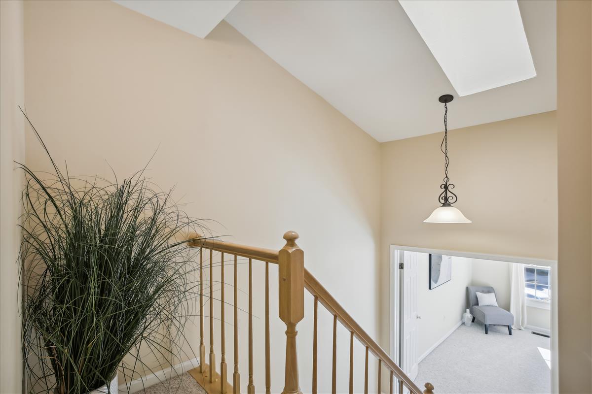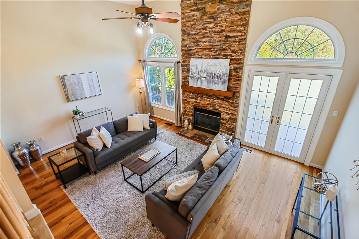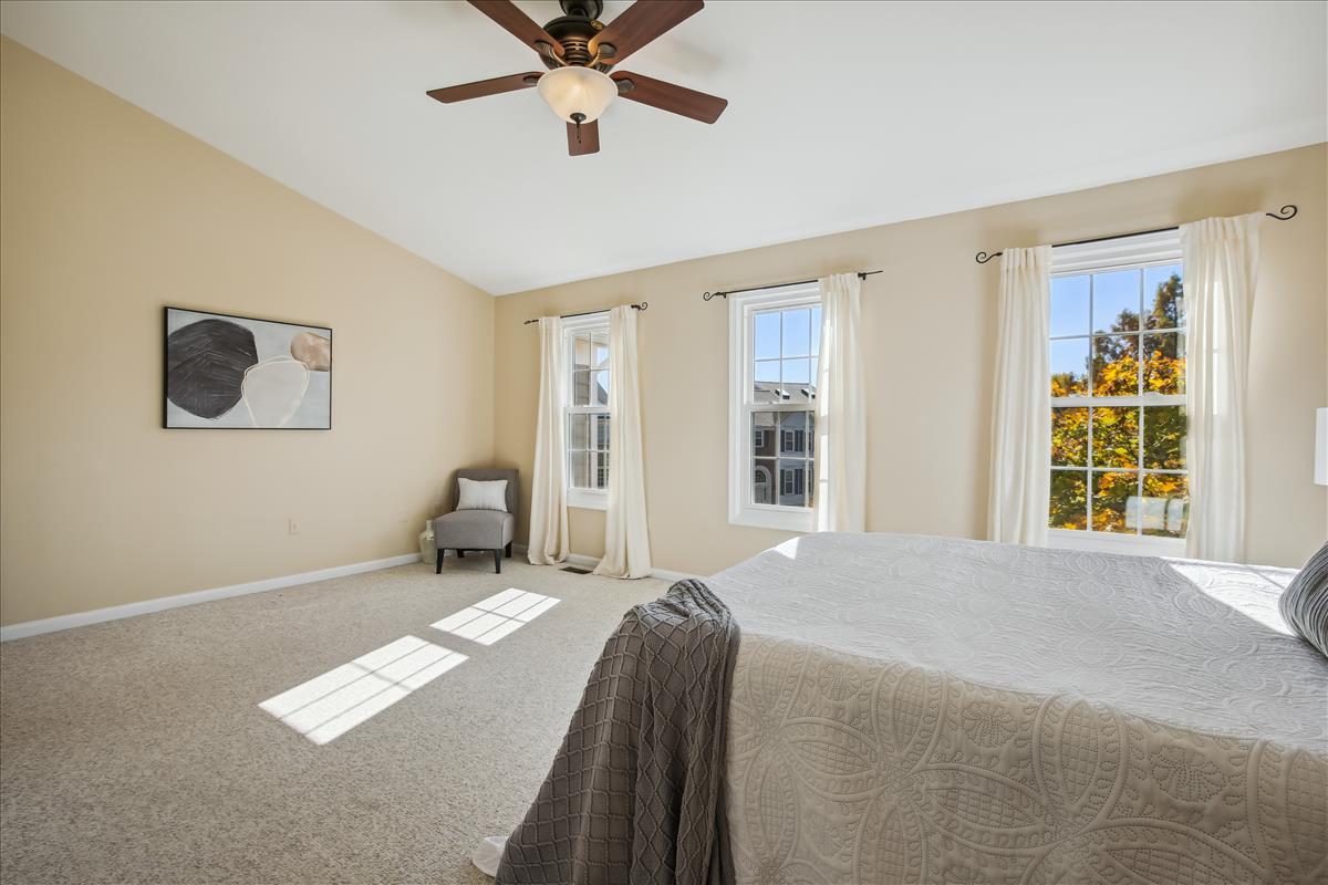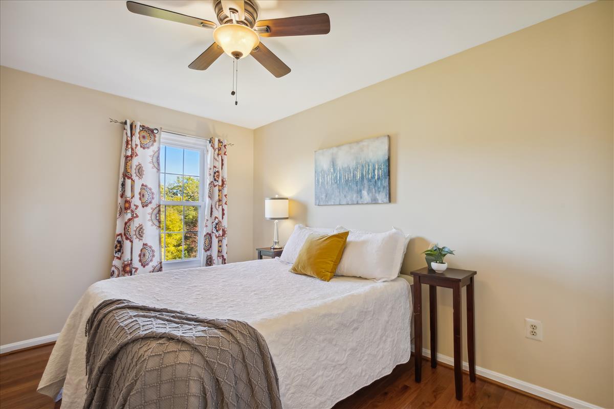 Beautiful townhome in Kingstowne with 3 bedrooms, 2 full bathrooms, & 2 half bathrooms! The main level features hardwood floors & neutral paint throughout. The spacious eat-in kitchen is accented with updated cabinets, granite countertops, a pantry, a ceiling fan, & stainless steel appliances including a new stove (2022) & newer dishwasher (2020). A separate formal dining area with chandelier sits next to the light-filled two-story living room with large windows, a gas fireplace with stone surround, and french doors leading to the back deck. A powder room completes this level. The expansive primary bedroom suite is located on its own level and features double doors, 3 large windows, vaulted ceilings, a ceiling fan, & a walk-in closet with custom organizers. The remodeled primary bathroom is accented with an extra-long granite-topped double vanity, a frameless glass walk-in shower with two showerheads, a built-in linen cabinet, & a vaulted ceiling with a skylight. The second upper level includes two bedrooms, both with custom Elfa closet shelving, and a second full bathroom with a vanity & sparkling white shower. The lower level features a spacious recreation room with plush carpeting that walks out to a fully fenced backyard and flagstone patio. A laundry closet, with a full-sized washer & dryer, and a powder room complete this level. Other home features include a new water heater (2022), newer HVAC (2020), & a 1-car garage with 2nd refrigerator, storage shelving & a large separate storage closet. Kingstowne amenities include community pools, fitness centers, tennis/volleyball courts, tot lots/playgrounds, walking paths, & MORE! Conveniently located only half a mile to numerous shopping, dining, & grocery store options. Just a short drive to access 395, 495, the metro station, the Pentagon, and Ft Belvior.